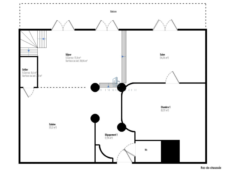 Le niveau principal accueille un spacieux séjour de plus de 35m2, une cuisine indépendante, ainsi qu'une première chambre confortable.