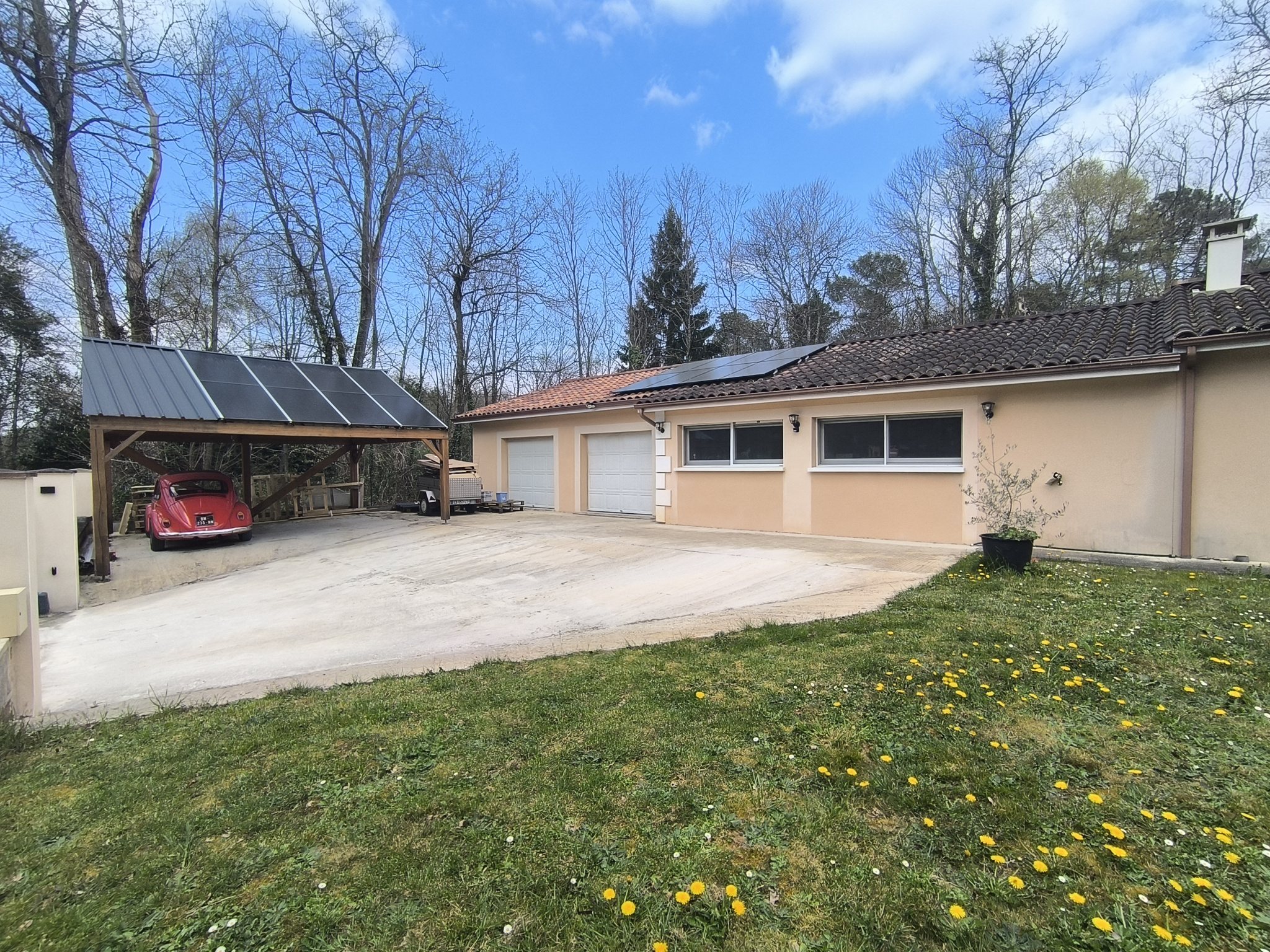 Un double garage et un carport avec panneaux solaires viennent compléter cette propriété.