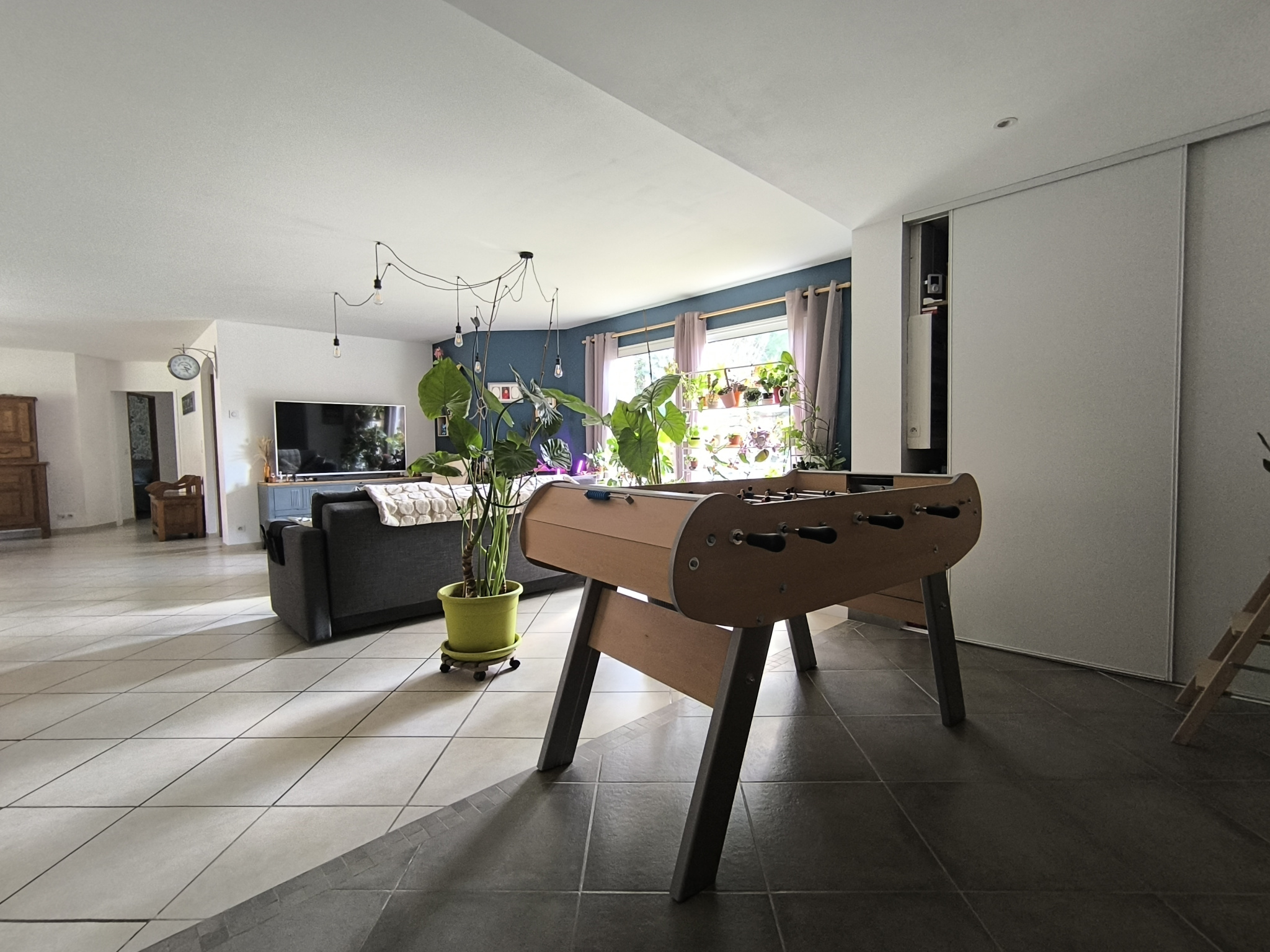 Construite en 2013 dans un environnement calme et verdoyant, cette maison dispose d'une cuisine entièrement équipée, ouverte sur le séjour offrant ainsi une grande pièce de vie d'environ 65m2.