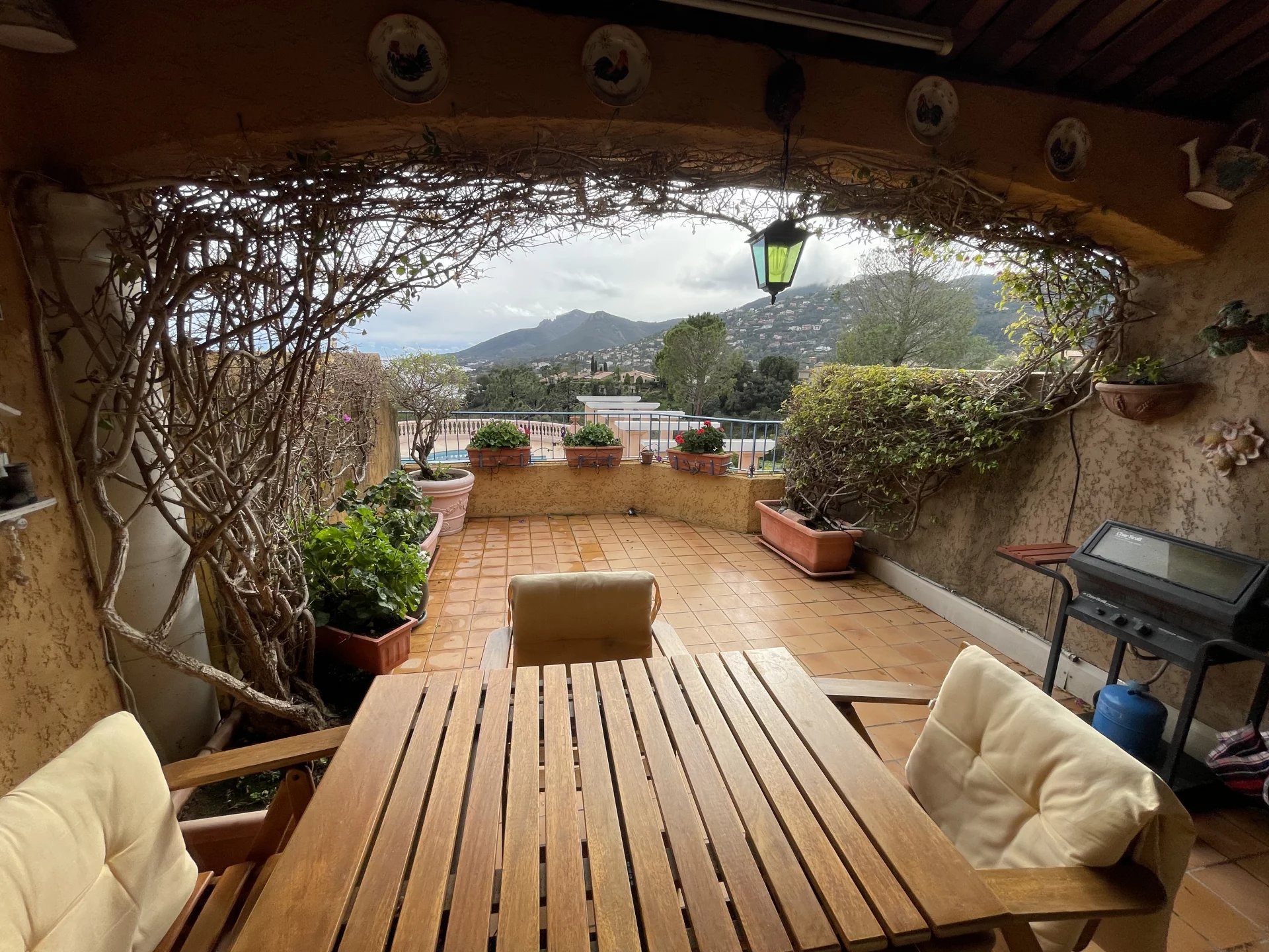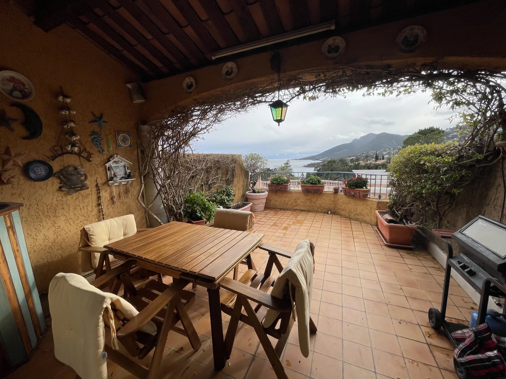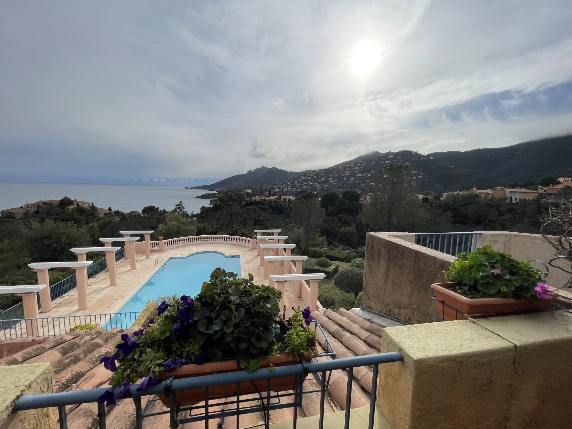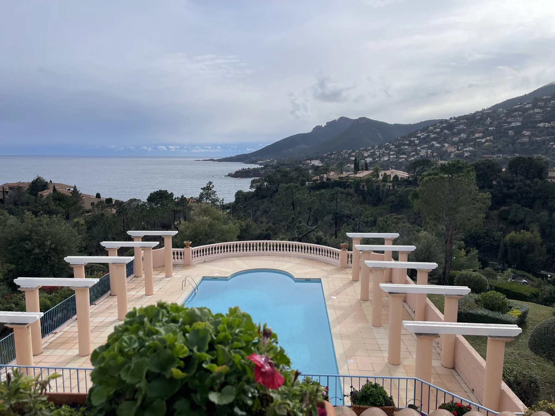 En Exclusivité : Dans un domaine privé et sécurisé avec piscine, Appartement-Villa de 2 pièces de 35,42 m² vue mer panoramique disposant d'une entrée, une cuisine équipée, un toilette, un placard avec machine à laver, un séjour donnant sur la terrasse semi-couverte orientée Sud de 20 m². A l'étage, un dégagement avec placard, une salle de douche avec wc sanibroyeur, une chambre avec hauteur sous plafond et des placards. Pour parfaire, un balcon 5,22 m² avec vue mer et montagne exceptionnelle. Un garage privatif. Un bien très rare et vendu meublé.