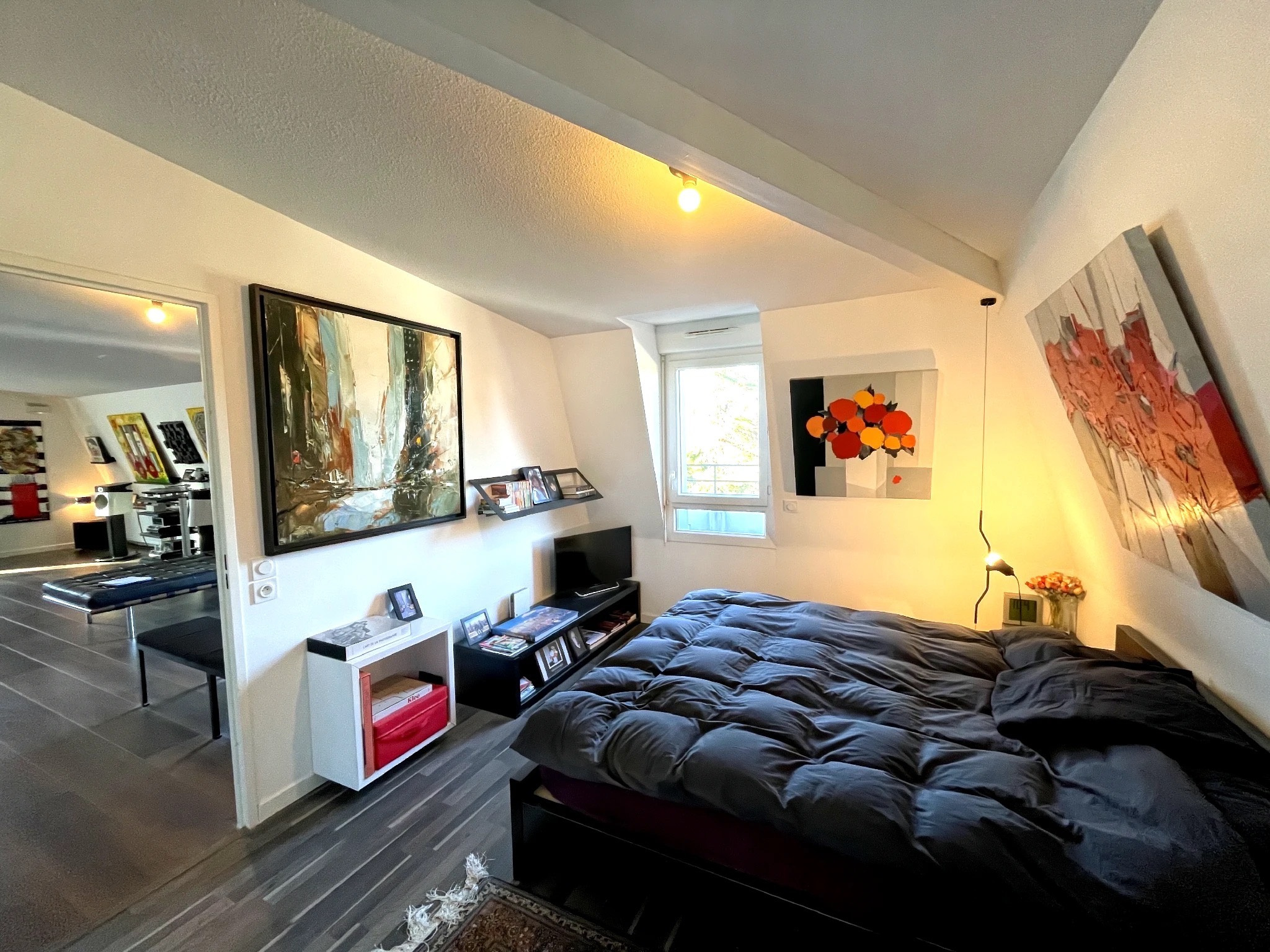 Initialement conçu en 4 pièces et réaménagé avec goût en un élégant 2 pièces, il est situé au 2ème et dernier étage d'un petit immeuble avec ascenseur construit en 2015.