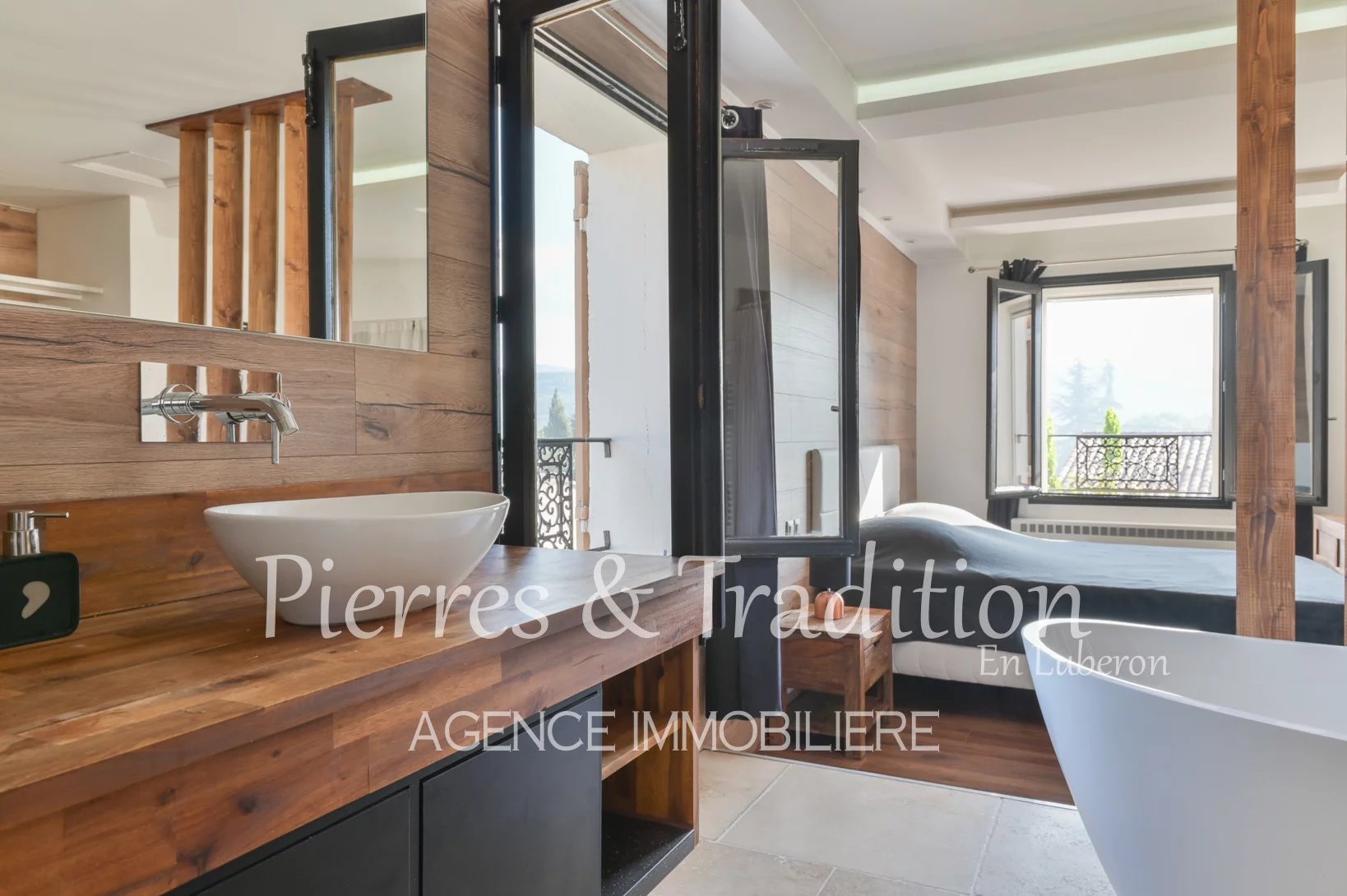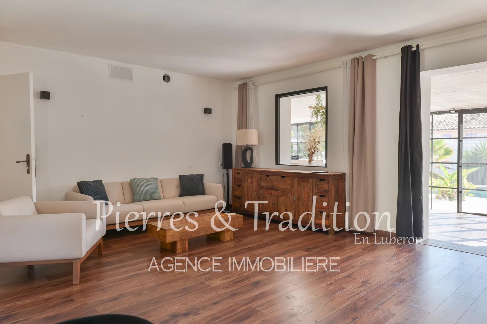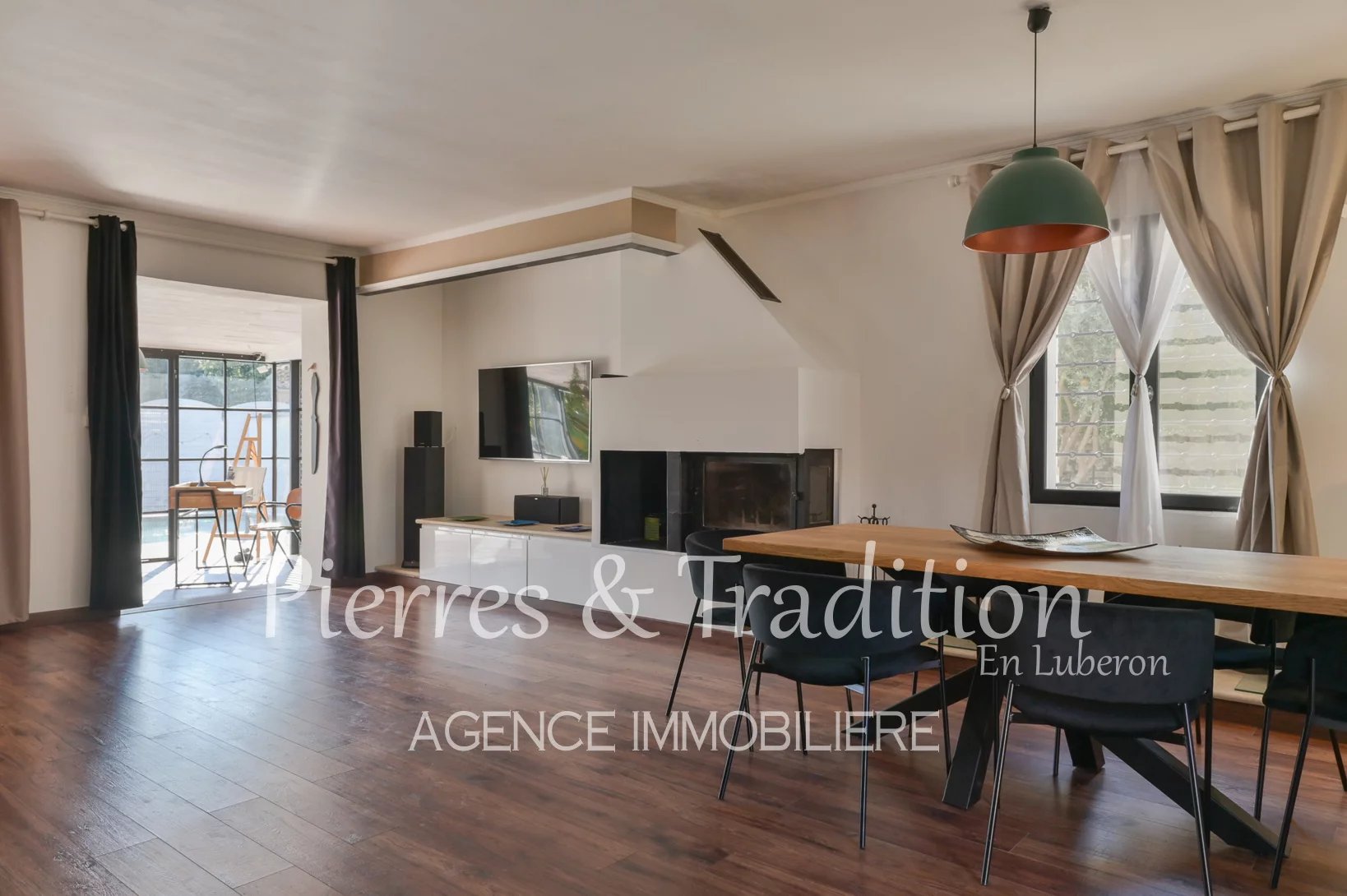 Au coeur du Luberon, à proximité de toutes commodités, cette jolie maison a été rénovée et décorée avec beaucoup de goût. Elle offre actuellement plus de 127m2 d’espace de vie avec notamment un grand séjour salle à manger de 41m2 mais également une très belle cuisine entièrement vitrée donnant sur l’espace piscine. Deux chambres au rez de chaussée se partagent une salle d’eau et à l’étage l’espace est entièrement dédié à la chambre parentale avec salle de bain et grand dressing. L’espace piscine est optimisé pour y passer d’excellents moments de détente, entre le bassin de 11m x 5m( environ) , ses plages et son espace transat mais également avec un joli bar et ses chaises balançoires. Pour compléter le tout, un grand garage / atelier de 36m2 qui pourrait être l’objet d’un projet supplémentaire.