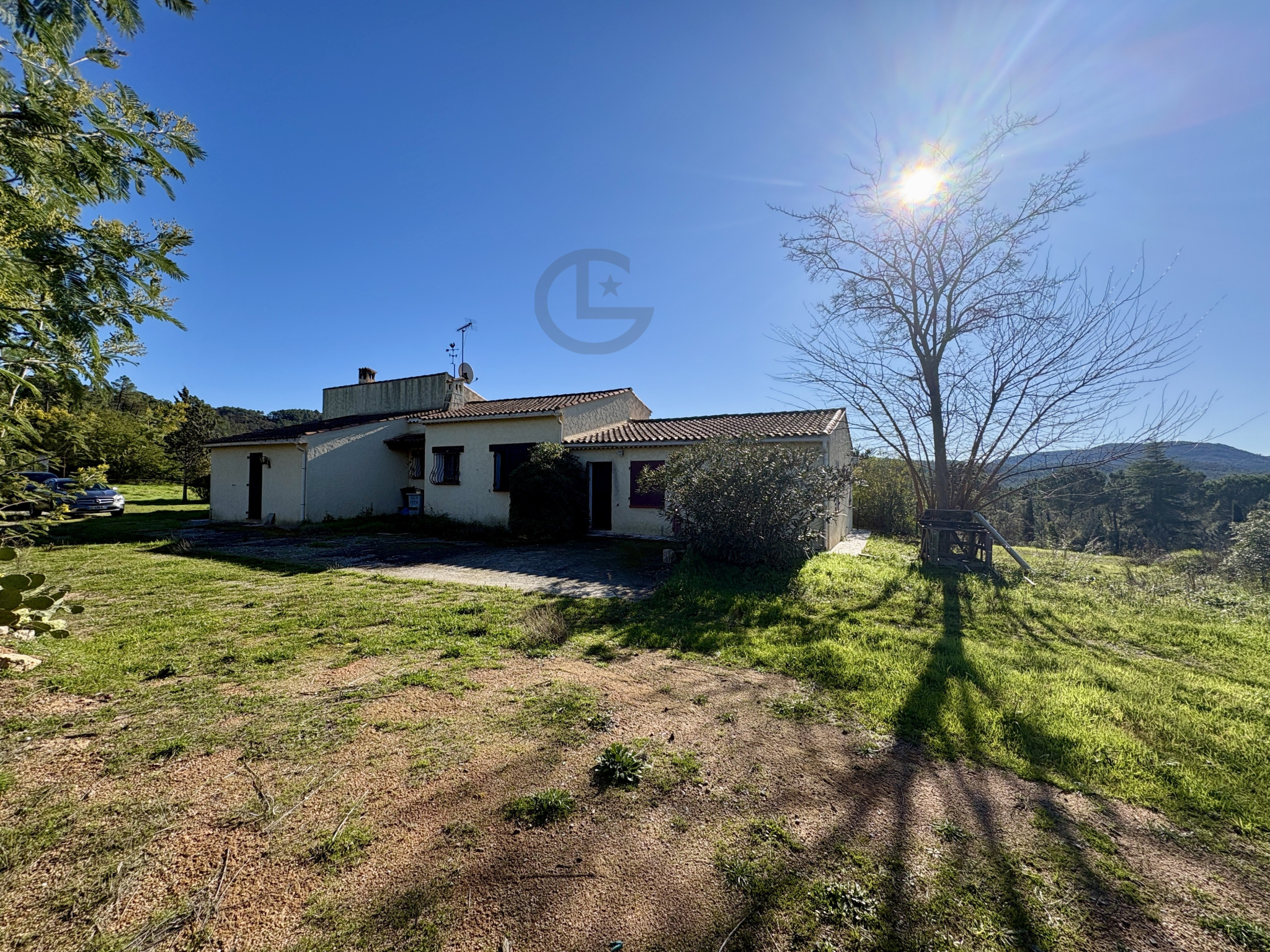 Nichée dans un écrin de verdure d'un peu mois d'1 hectare (9943 m2) avec vue dégagée collines, villa de plain-pied de 168 m2 (suivant mesurage Loi Carrez) composée d'un grand séjour (37 m2) avec cheminée, cuisine ouverte (10 m2), buanderie (15 m2), 6 chambres, salle de bains, salle d'eau, 2 terrasses. Possibilité d'aménager une annexe de 50 m2 sur l'existant (entrée indépendante)