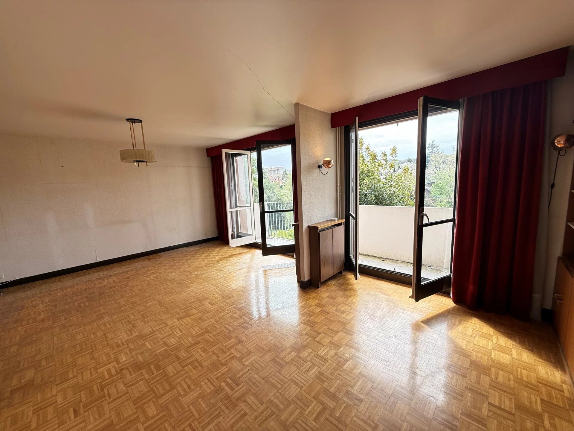 L'Agence du Parc vous propose cet appartement au 1er étage d'un immeuble des années 60 comprenant: entrée avec placard, séjour parqueté sur balcon, cuisine aménagée avec cellier, deux chambres parquetées avec placard, WC indépendant et salle de bains. Rénovation générale à prévoir. Belle vue dégagée sur jardin et exposition Sud, résidence calme et verdoyante. Une cave et un parking en sous-sol complète l'ensemble. charges annuelles chauffage et eau chaude compris 3120€, honoraires inclus 4%.