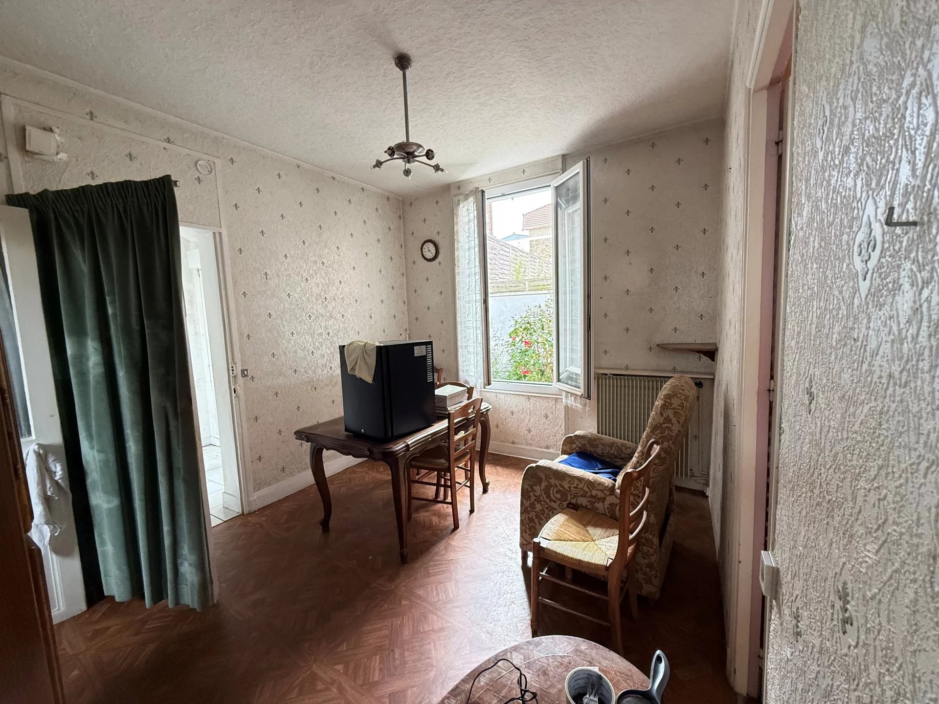 Maison ancienne années 30, située à l'arrière d'un immeuble, au calme, en copropriété, proche des commerces et des écoles, comprenant: entrée, salon, cuisine, chambre, bureau, salle d'eau avec WC. Sous-sol complet comprenant: buanderie, salle de bains, atelier et espaces de rangement. Vous bénéficierez également de la jouissance exclusive de deux jardins. Travaux à prévoir, idéal premier achat ou projet de rénovation. Pas de procédure en cours, charges annuelles de copropriété: 1 200€, honoraires d'agence 5%.