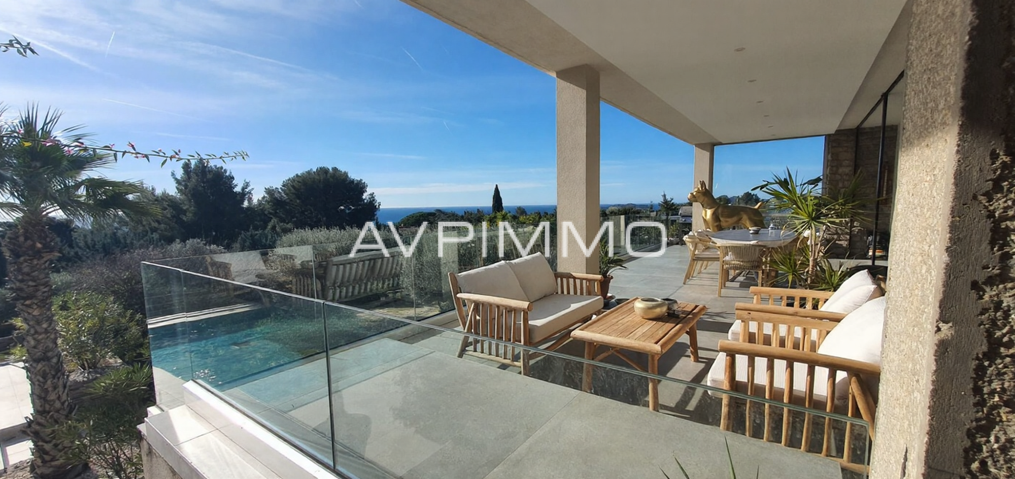 Cette villa contemporaine conjugue l'élégance et un design moderne raffiné. À quelques minutes des plages et du centre-ville, elle offre une vue panoramique avec vue mer, dans un cadre intime et préservé.