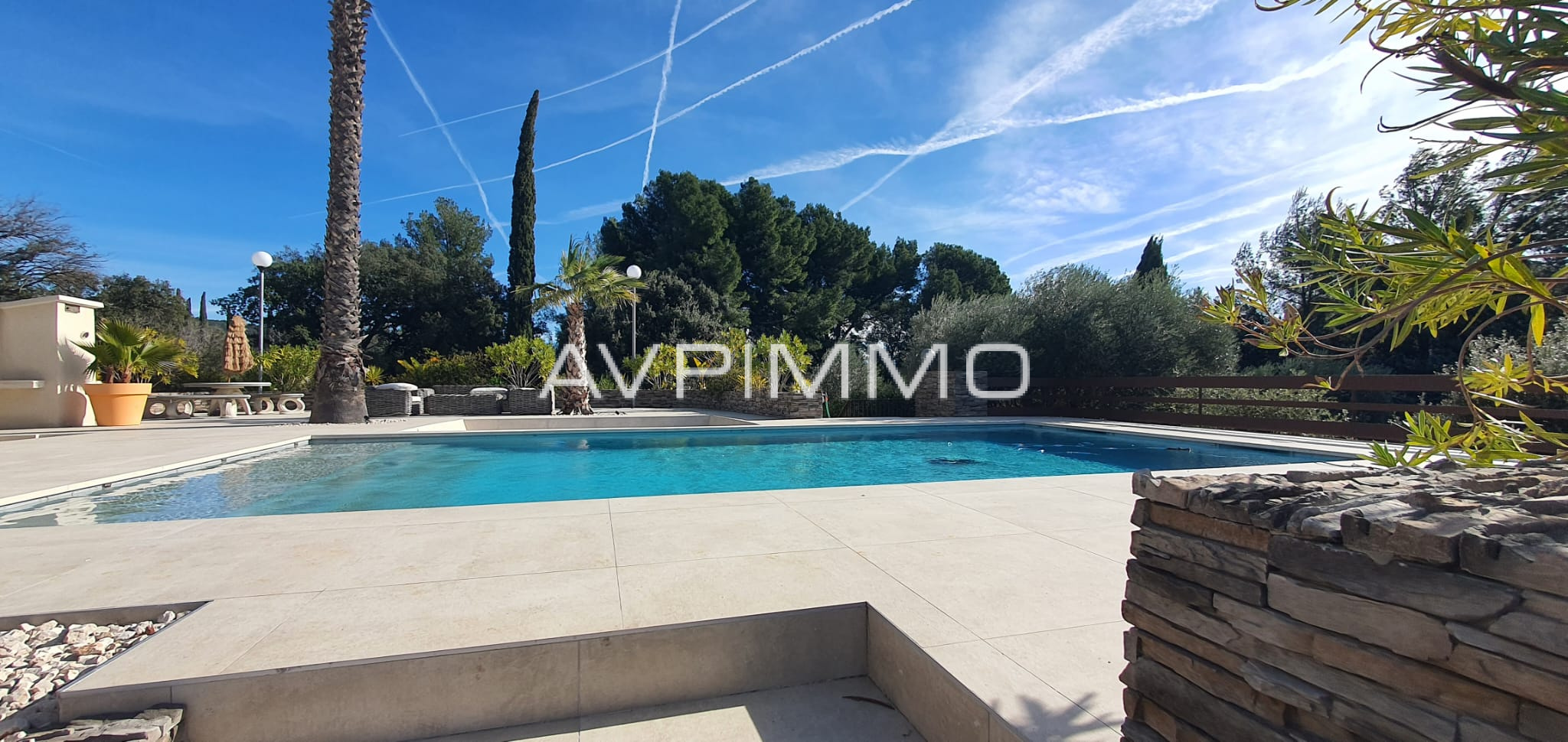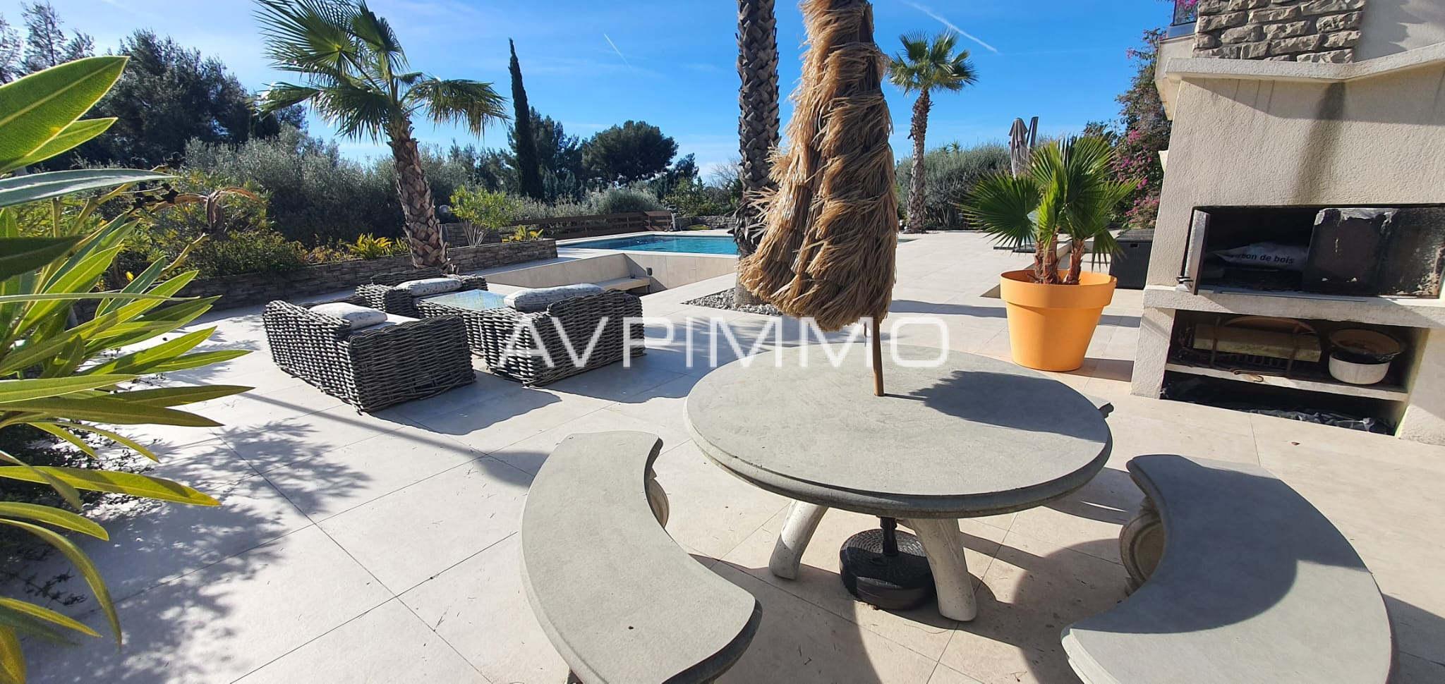 Jardin méditerranéen de 5 000 m2, terrasses multiples, coin pétanque.