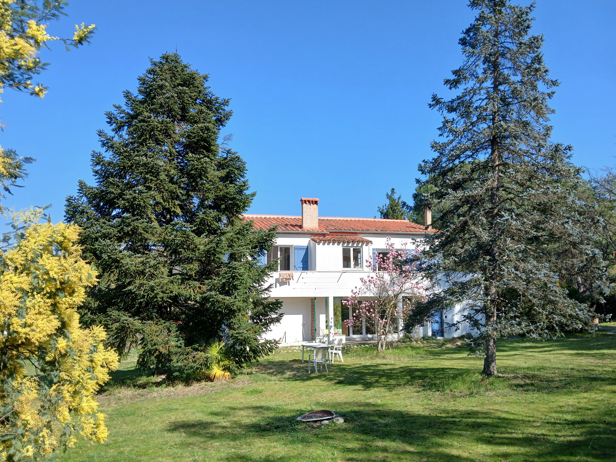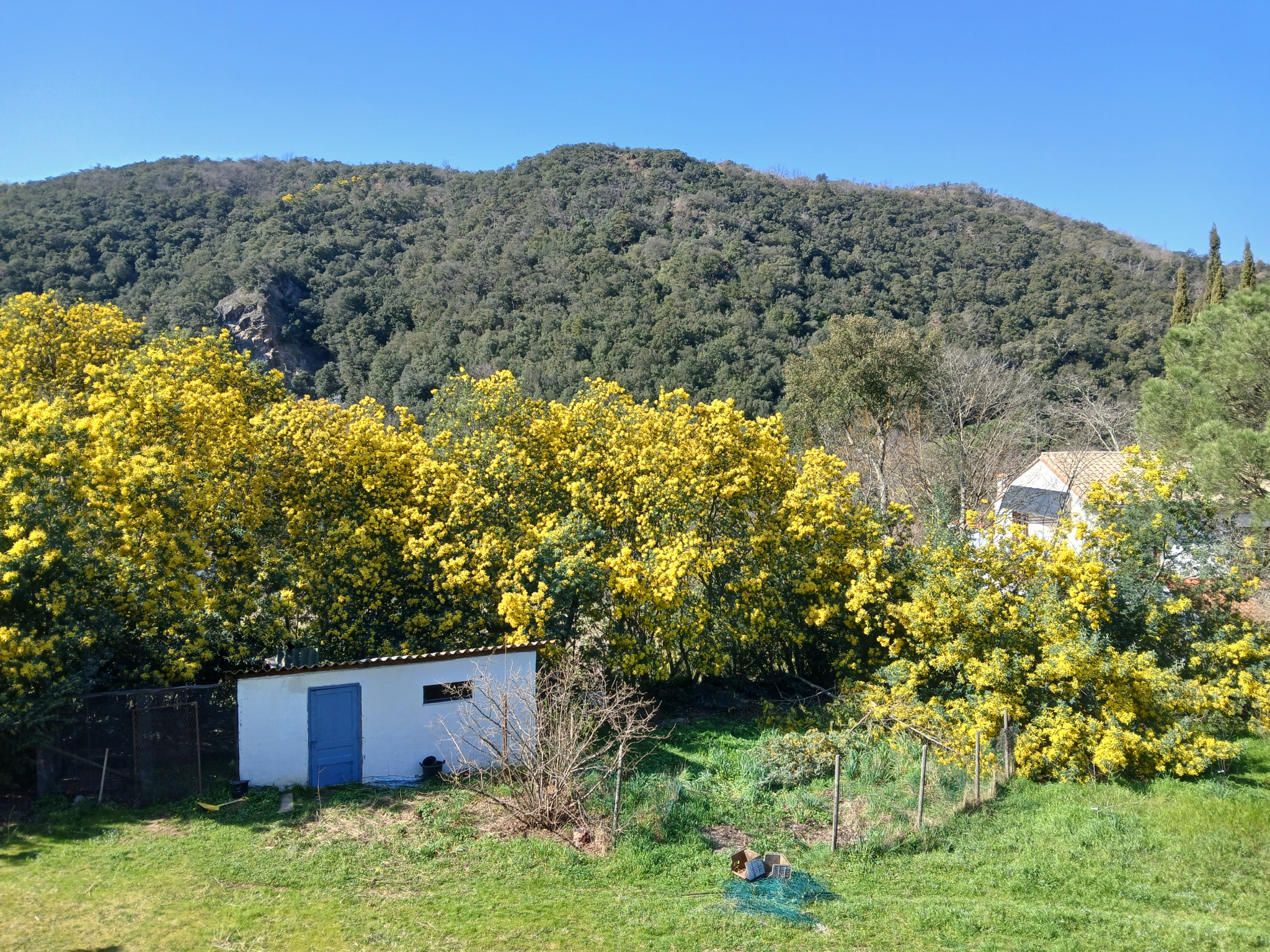 Rare, villa dans la campagne proche de Céret sur 3800 m2 de jardin boisé plat à l'arrosage avec puits. Appartement type T2 séparé en rez de jardin, 5 chambres en tout, 2 bains, 2 terrasses, cadre idyllique très calme, commerces à 5 min.CC Gaz, nombreuses balades montagnes alentour. Nombreux parkings disponibles.