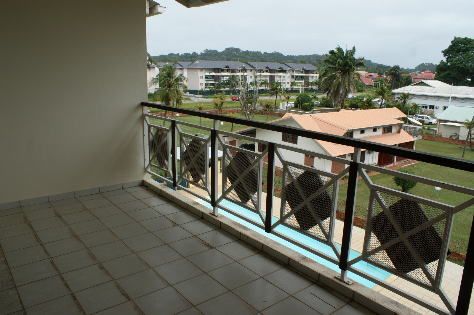 Appartement T2 lumineux et ventilé situé dans une résidence calme et sécurisé avec piscine à la rocade de Zephir proche du rond point de Baduel à Cayenne comprenant: 1 séjour, un coin cuisine aménagé, une salle d'eau, une chambre climatisée et une terrasse avec vu sur la piscine, une place de parking surf hab: 33m2 surf totale 45m2