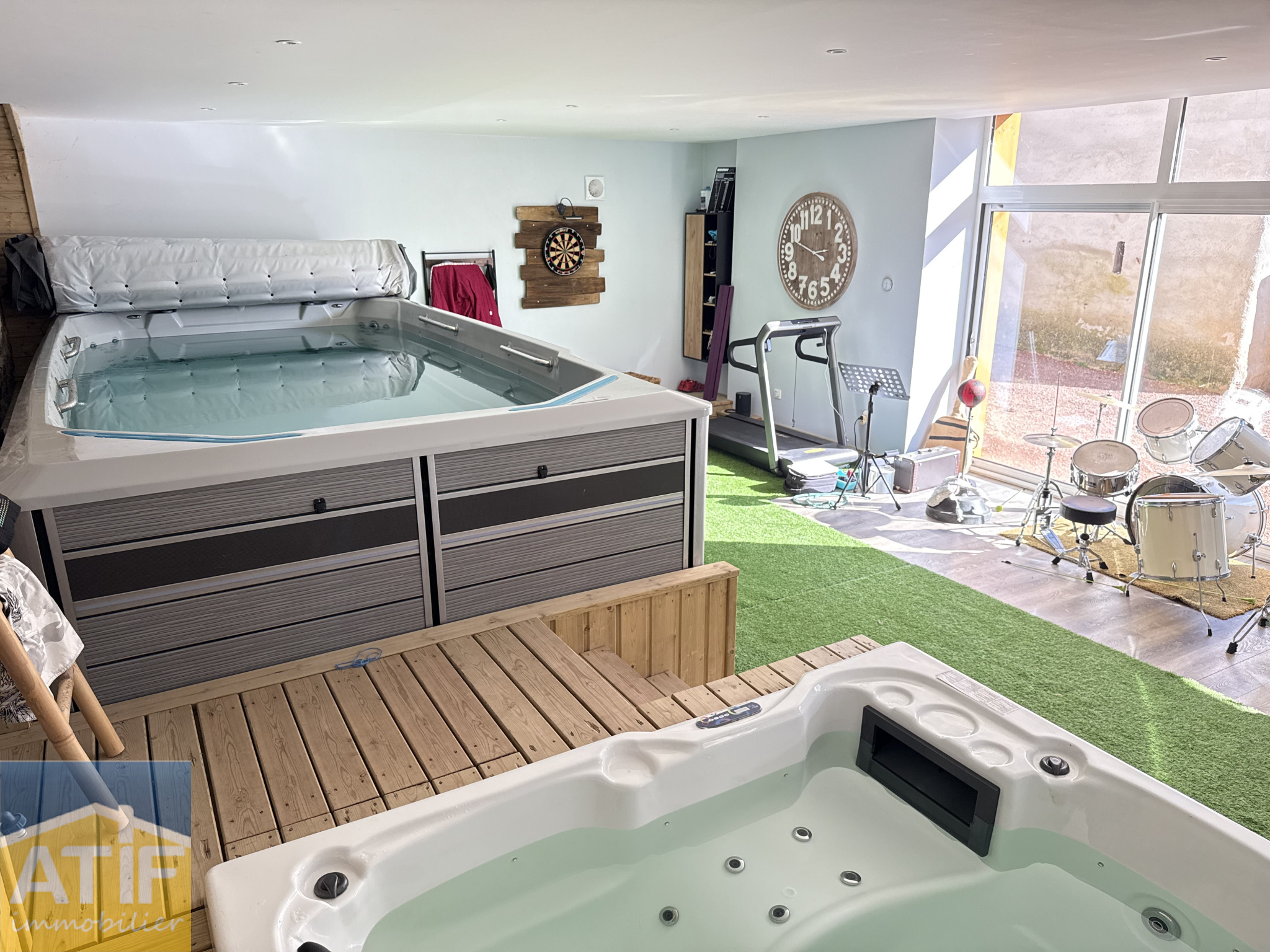 Vous serez séduit par la salle de bien être de 50m2 offrant jacuzzi et spa de nage (ils restent biensûr !) ainsi que le double garage de 65 m2.