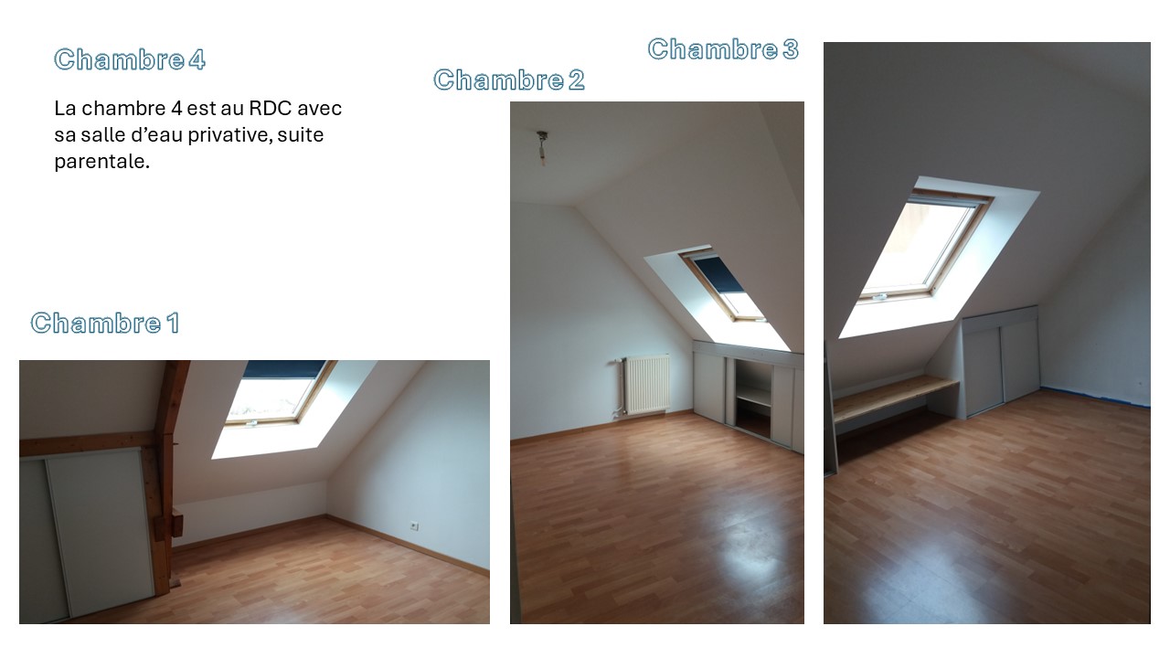 ÉTAGE= 3 chambres avec placards sous pente + 1 Salle de bain avec WC