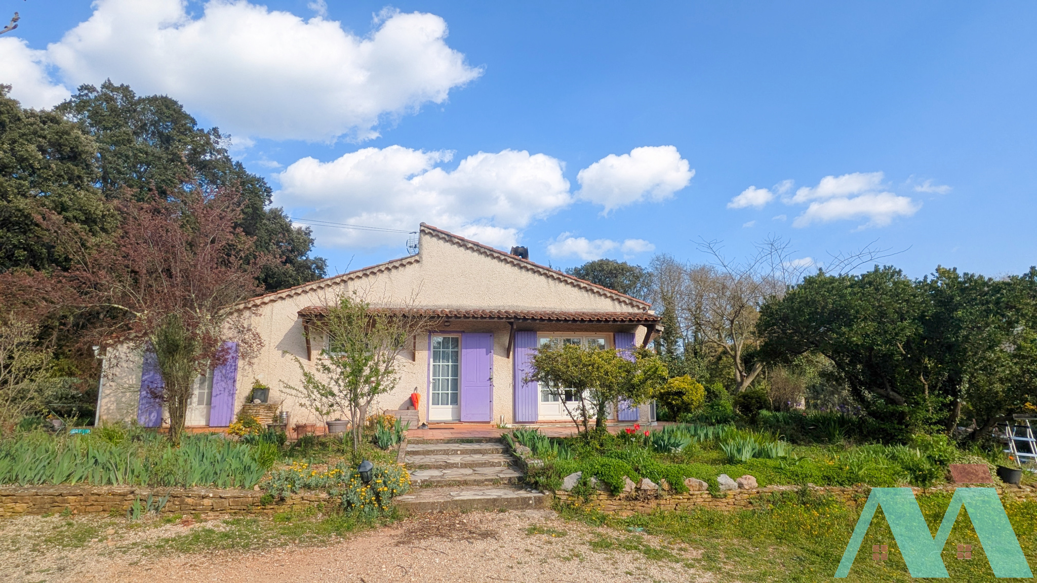 La propriété bénéficie de vrais atouts : terrain généreux, environnement résidentiel très agréable, en campagne, maison de plain-pied, construction traditionnelle, garage, stationnement aisé sur la parcelle, forage pour l'arrosage du jardin, ainsi qu'un studio indépendant.