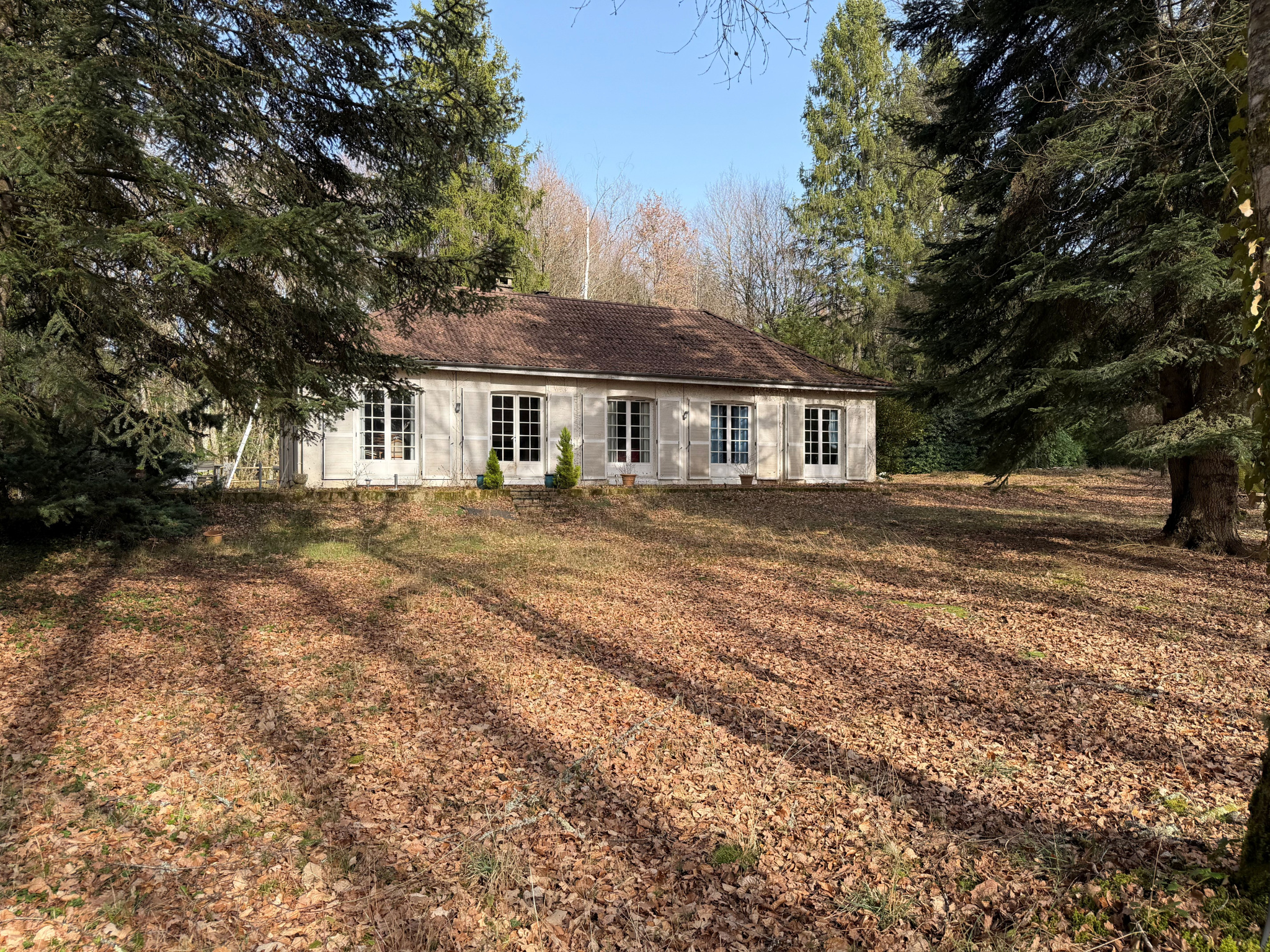 Très lumineuse car toutes les pièces donnent accès sur l'extérieur, un joli parc spacieux et arboré, offrant des lieux ombragés et accueillants différents selon les saisons.