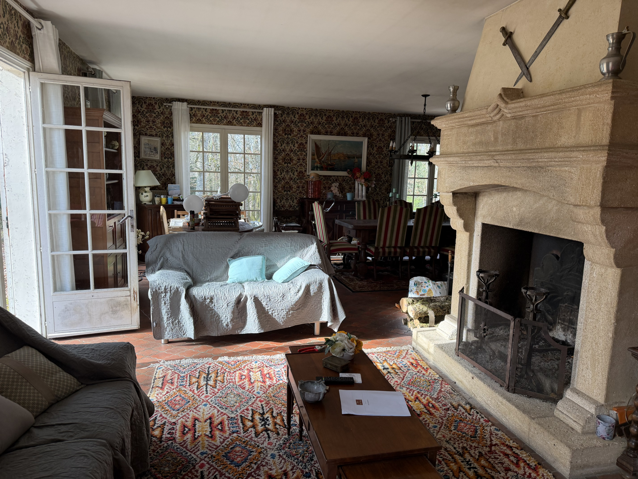 Maison d'habitation, à rénover, d'une surface habitable d'environ 120m2, de plain pied, composée d'une cuisine, d'un séjour salon de 51 m2 avec cheminée ouverte, 4 belles chambres, une salle de bains et wc séparés.