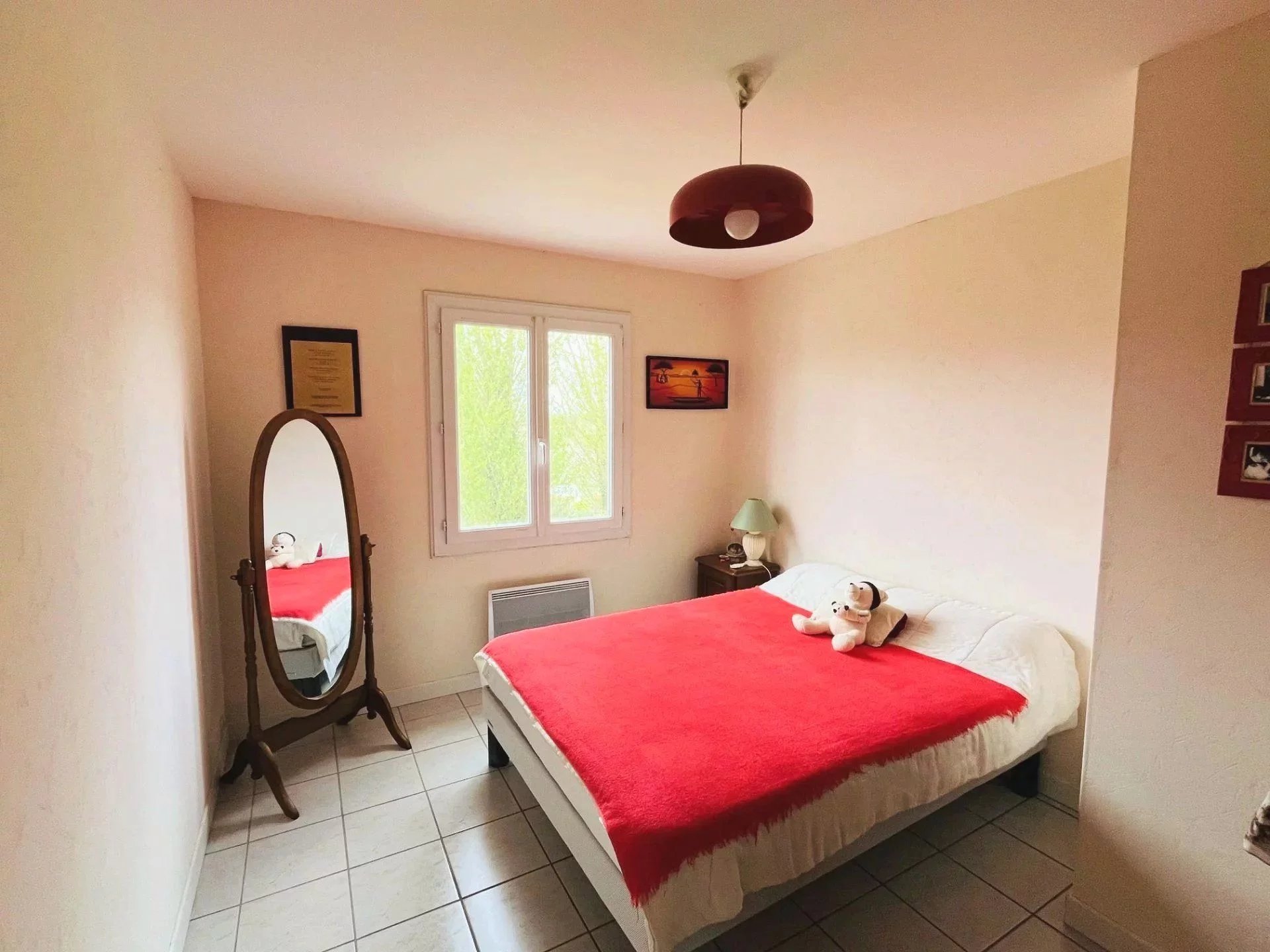 Menuiseries en pvc double vitrage, volets bois, chauffage électrique (climatisation réversible dans la pièce de vie + radiateurs dans les chambres), isolation renforcée dans les combles, raccordée à la fibre, assainissement autonome à mettre aux normes.