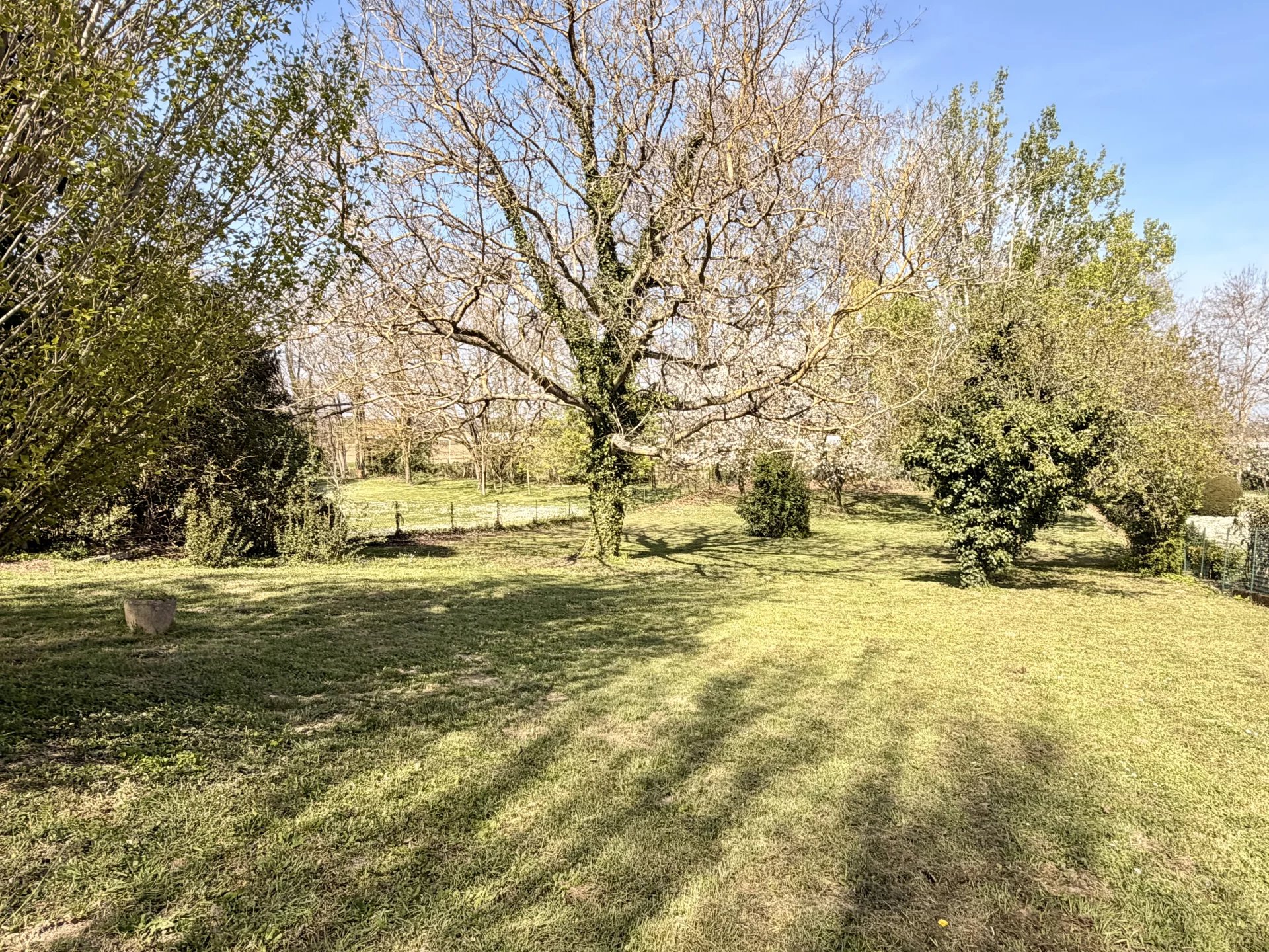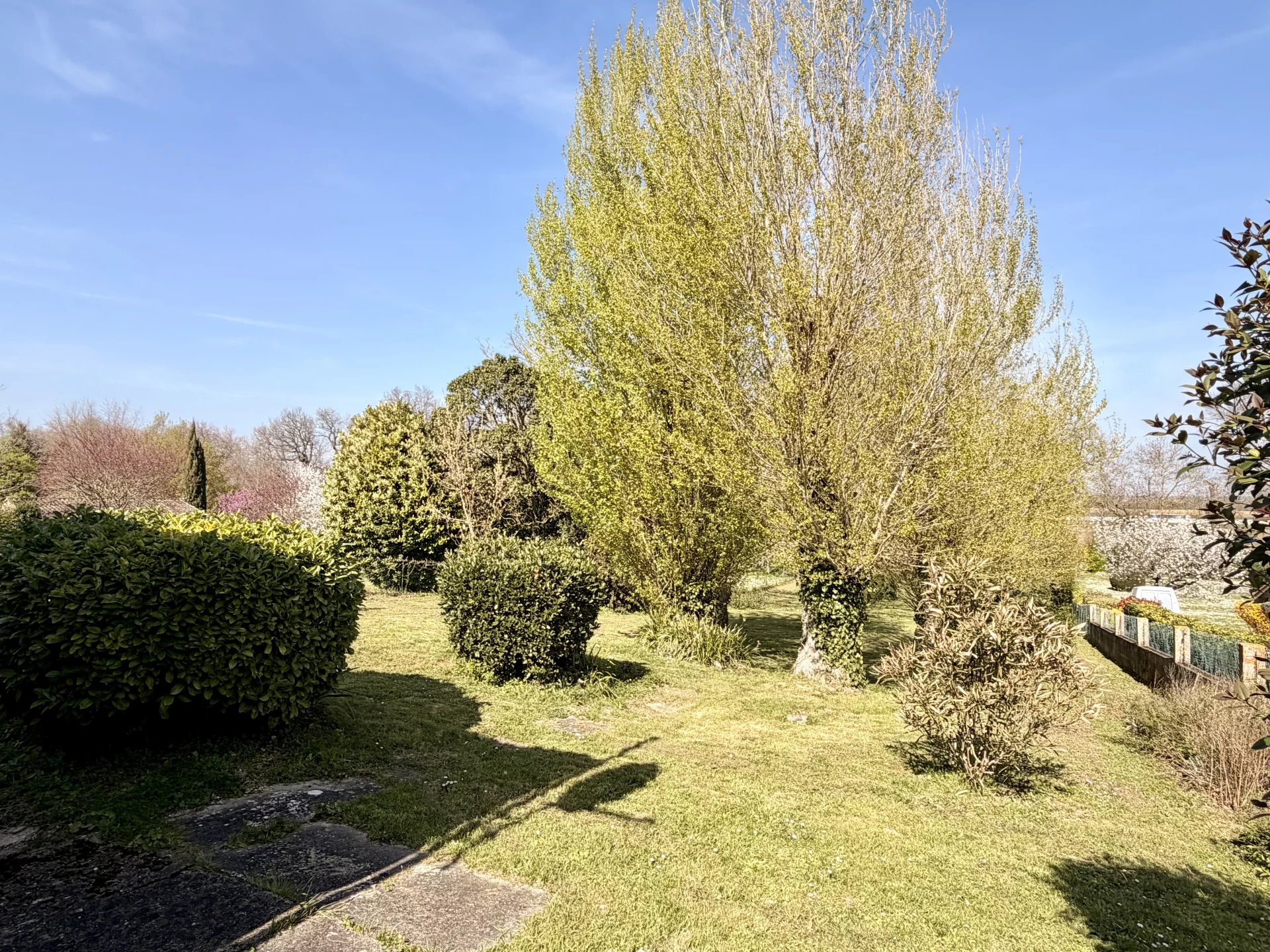 L'ensemble est implanté au coeur d'une vaste parcelle de terrain arborée et clôturée de 1990 m2.