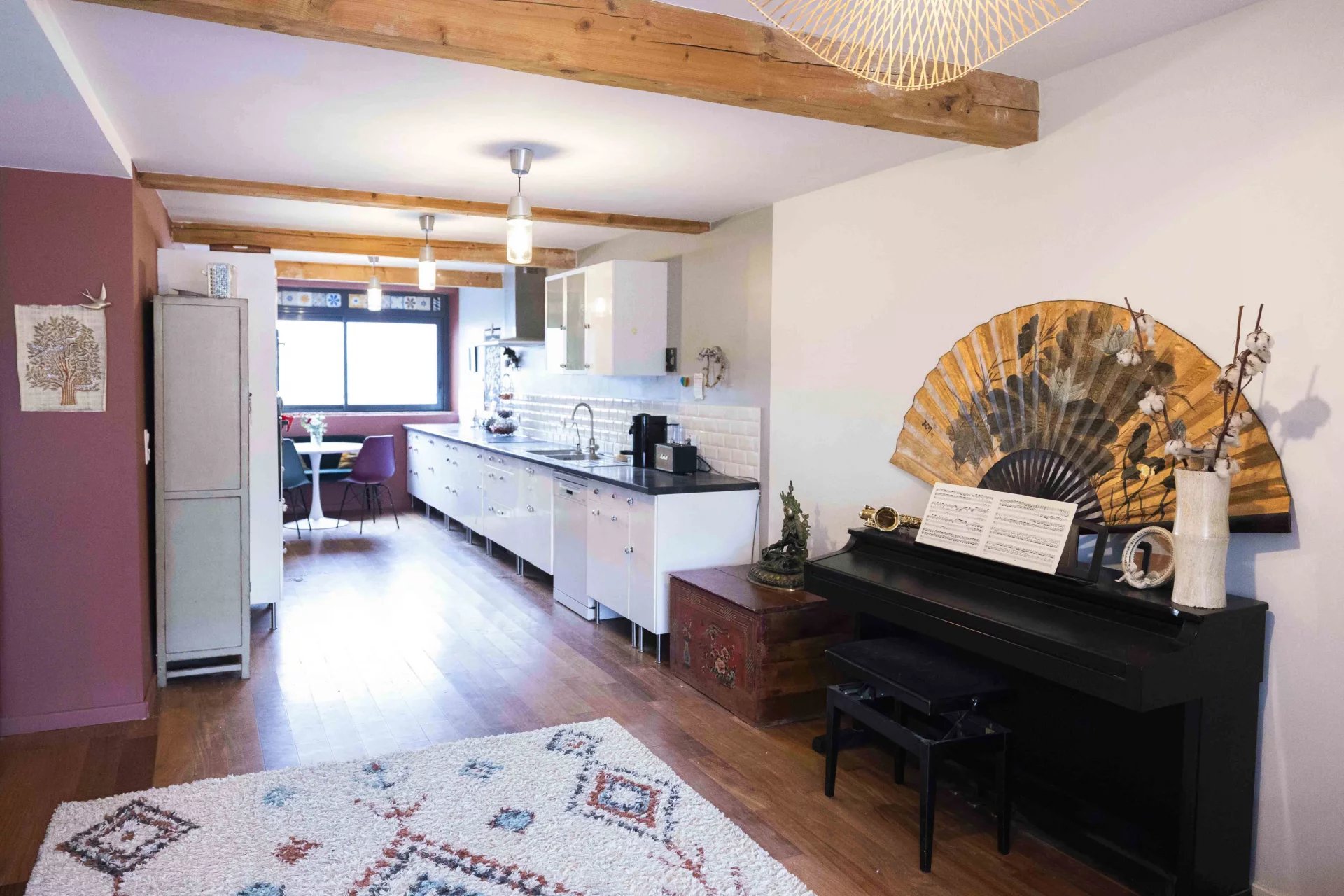 Proche Villefranche, dans un village avec école, belle maison de ville familiale rénovée en 2000 développant 170 m2 habitables.