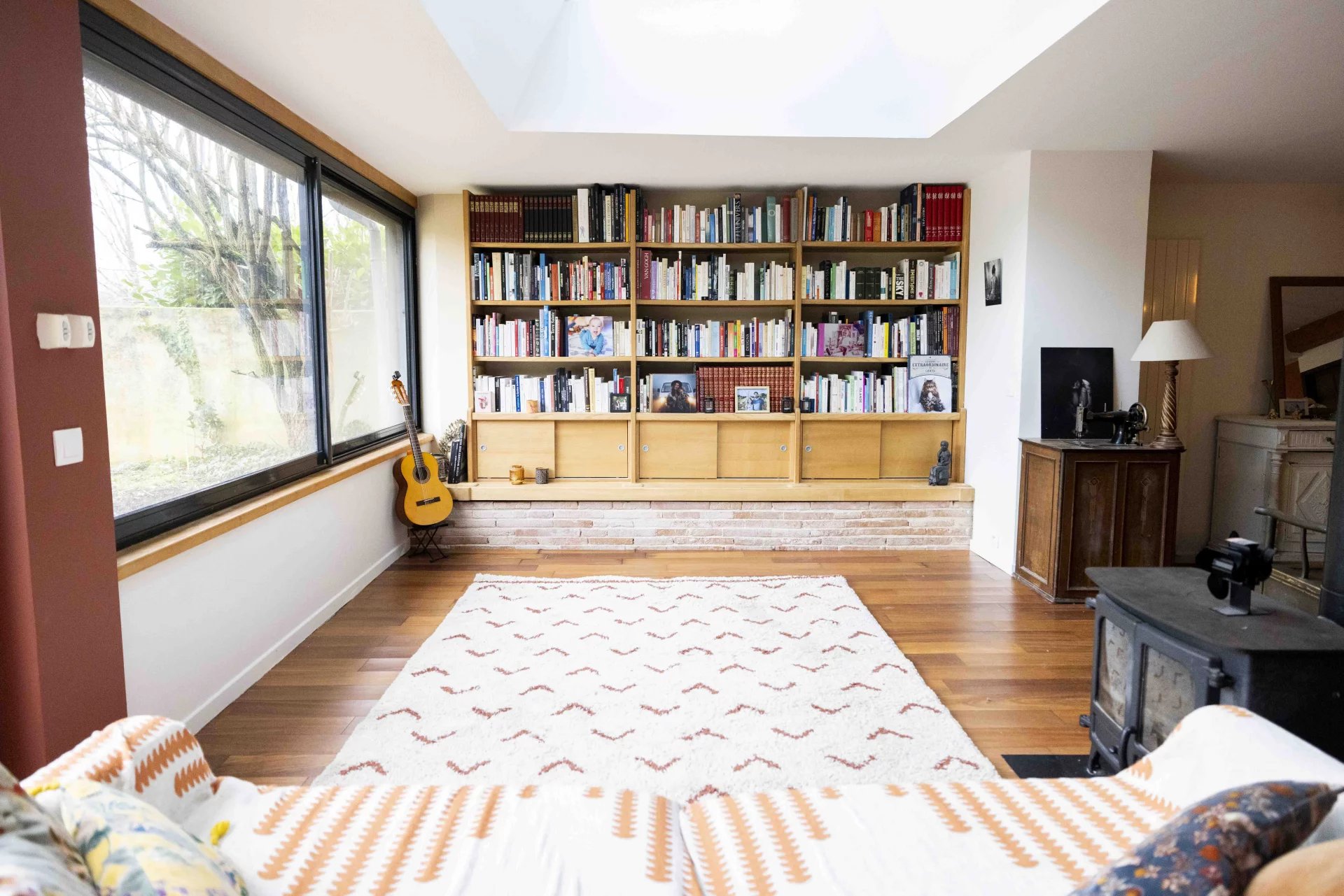 Les menuiseries sont en double vitrage, chauffage mixte (central à granulés avec silo + poêle à bois), logement raccordé à la fibre.