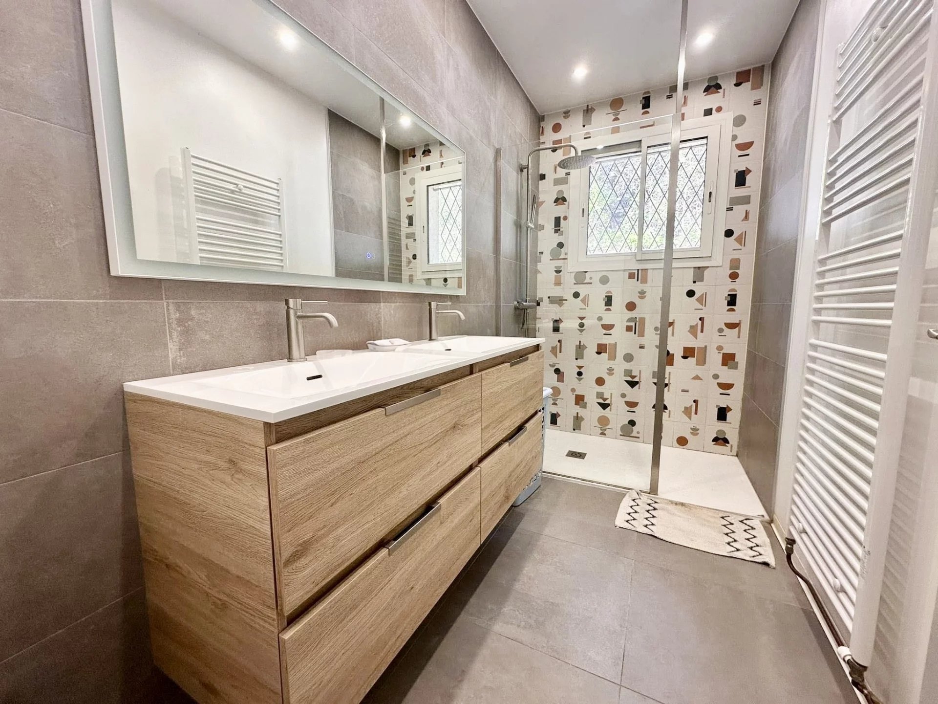 Côté jardin, une terrasse intime est aménagée sur 42m² sans aucun vis-à-vis.