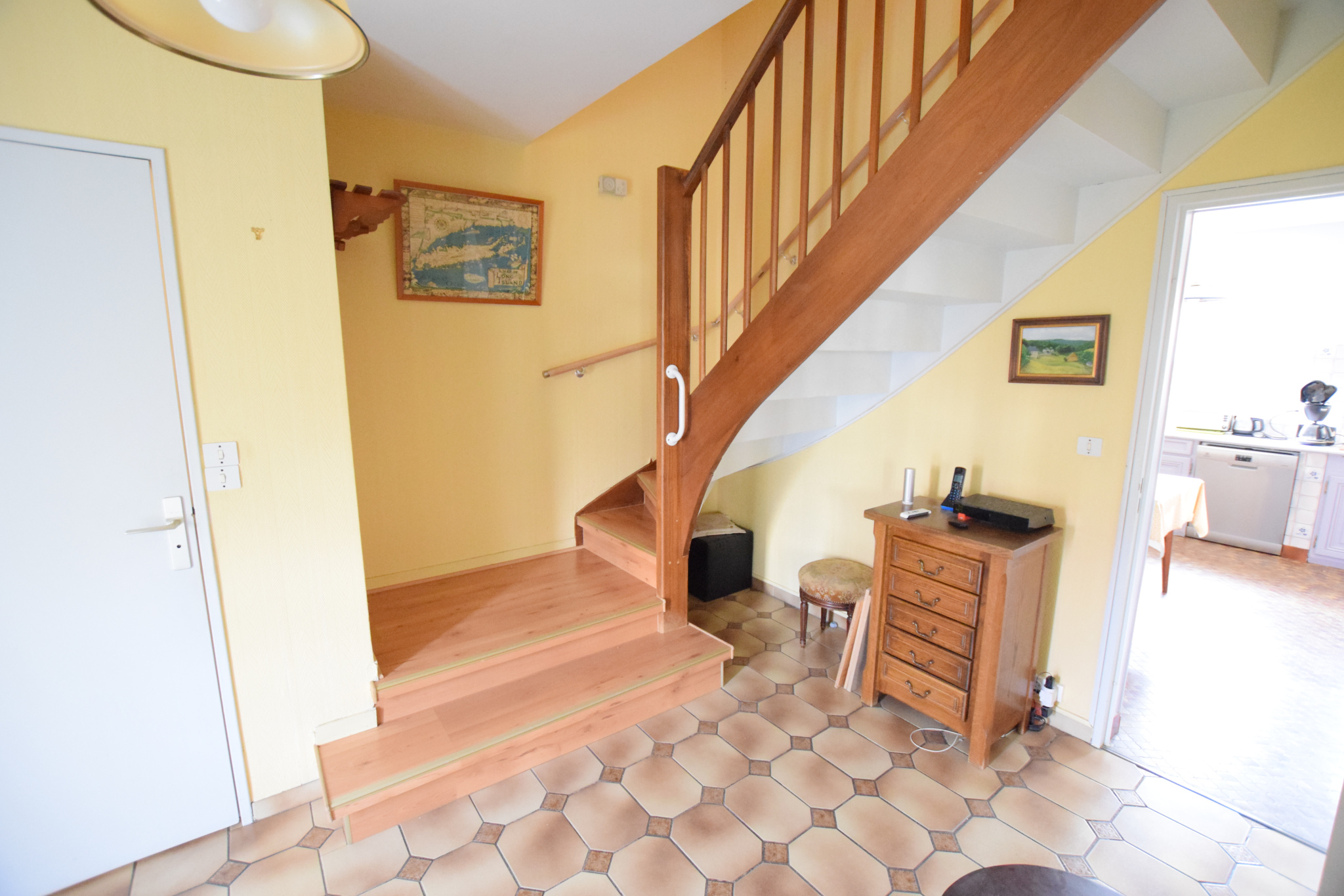 Au rdc vous êtes accueillis par une belle entrée qui méne à un agréable séjour traversant de 33m2, une cuisine spacieuse de 16m2 communiquante avec le garage, un wc. A l'étage un palier distribue 4 chambres ( 9,10,12 et 14 m2) une SDB avec wc et une Salle de douche.