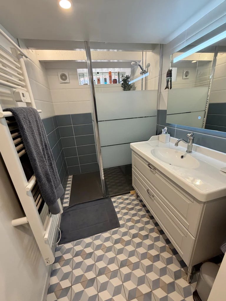 Dans petite villa ancienne et pleine de charme, appartement en duplex avec magnifique terrasse et en plein coeur du centre-ville, d’une surface de 67,35 m2, entièrement restaurée comprenant une entrée distribuant un salon salle à manger avec accès balcon et cour avec une belle vue mer, une cuisine aménagée et équipée, deux chambres dont une avec accès extérieur, une salle de douche avec machine à laver et w-c. COUP DE COEUR !