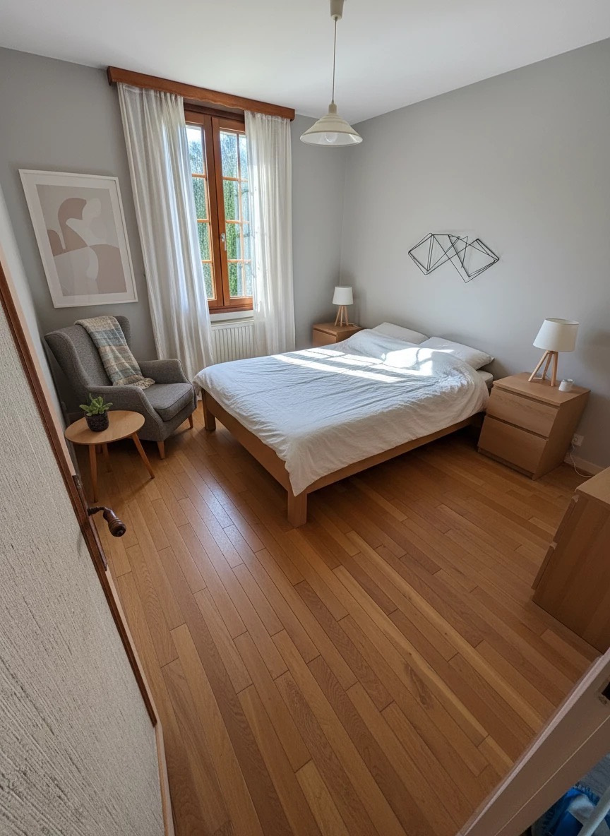 À l'étage, vous trouverez une chambre palière de 16 m2 ainsi qu'une chambre indépendante de 9,5 m2.
