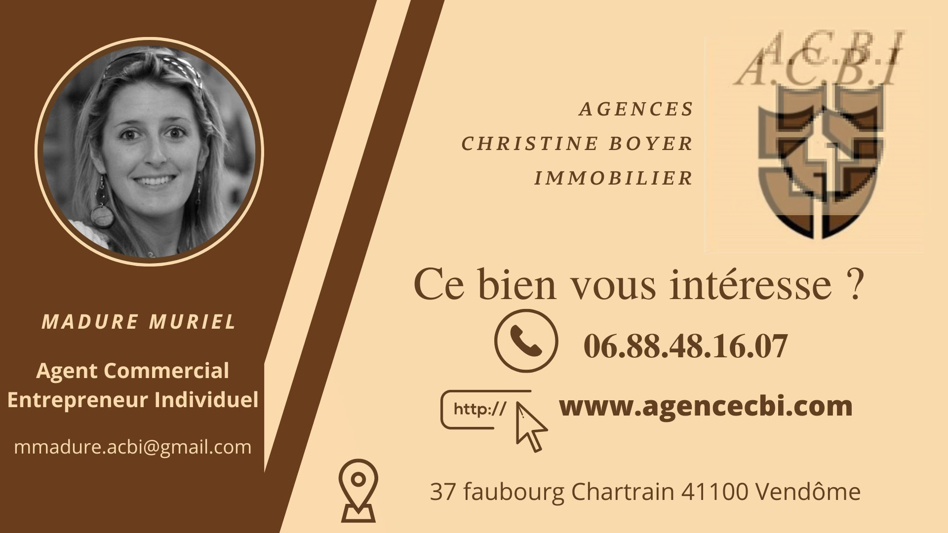 Contact : Muriel MADURE au 06 88 48 16 07 Entrepreneur Individuel - Agt Cial - RSAC BLOIS No 907 451 876