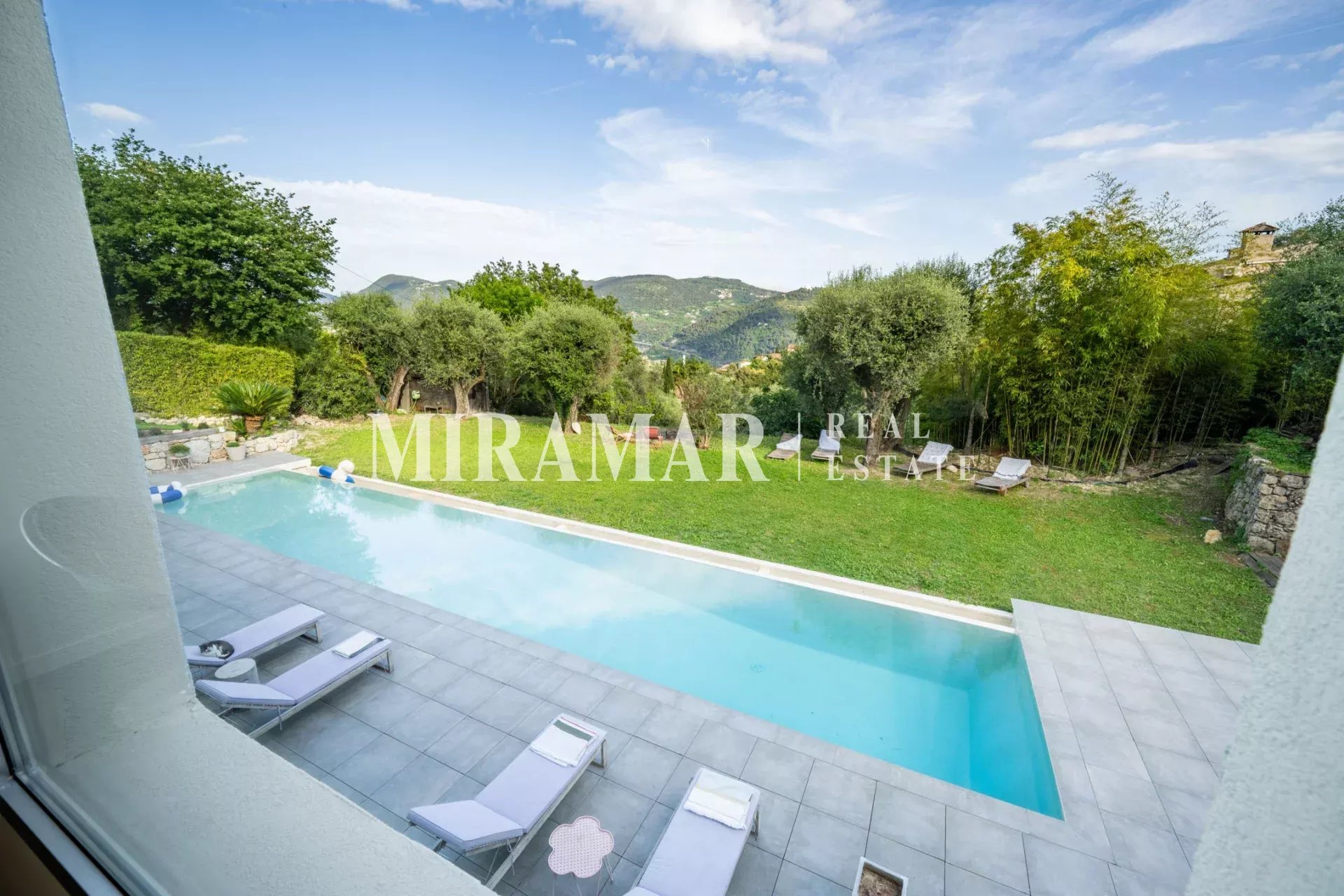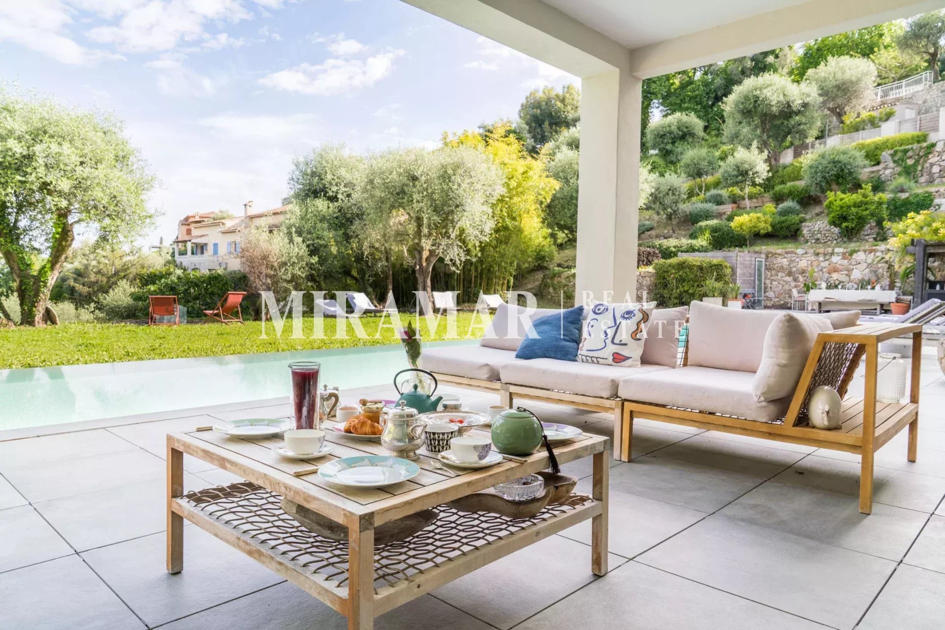 Au calme absolu, dans voie privée et sécurisée, superbe villa contemporaine sise sur un terrain paysagé de 2500 m² avec piscine de 20 mètres de long.