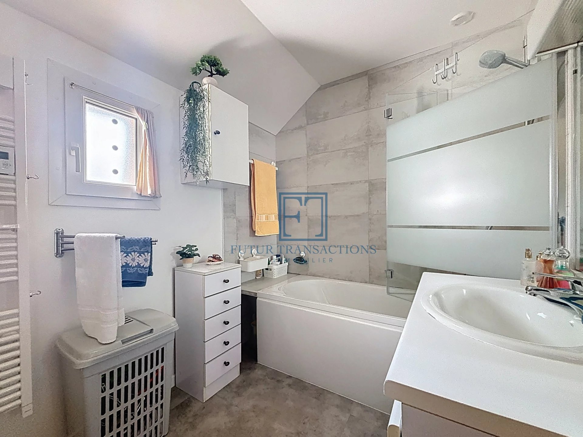 Dans un quartier recherché et apprécié, à proximité direct des commodités à pieds. Venez découvrir cette maison individuelle d'environ 90 m² habitables. Elle est composée au rez-de-chaussée : d'une entrée avec placard, d'un séjour donnant sur une terrasse et un jardin exposé Sud-Ouest, une cuisine aménagée et équipée avec une verrière ouvrante sur le séjour, un WC avec lave main, un garage donnant lui aussi accès au jardin. Au demi étage : une pièce pouvant faire office de petite chambre, salle de jeux ou bureau. A l'étage 3 chambres, une salle de bains avec fenêtre, un WC séparé, le grenier est isolé et aménagé avec un plancher au sol. Point important la maison est équipée de panneaux photovoltaïques, ce qui réduira fortement le coût de vos consommations d'énergie. Information d'affichage énergétique sur ce bien : classe ENERGIE D indice 196 et classe CLIMAT B indice 7. Montant estimé des dépenses annuelles d'énergie pour un usage standard : entre 1610 € et 2230 € par an. Prix moyens des énergies indexés sur l'année 2021, 2022, 2023 (abonnements compris) Les informations sur les risques auxquels ce bien est exposé sont disponibles sur le site Géorisques : https://www.georisques.gouv.fr/