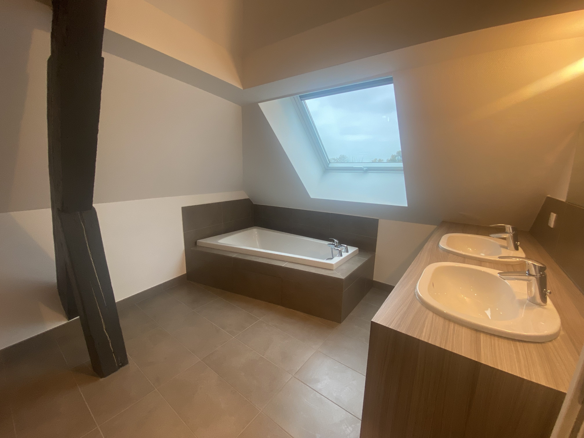 L'appartement se compose : - au 1er : d'une entrée, d'une très belle cuisine entièrement équipée (four, hotte, plaque induction, lave-vaisselle, réfrigérateur table/bar), d'un salon/séjour de 28m2, d'un WC séparé, d'une chambre de 13,66 m2 avec salle de douche - au 2ème : de 2 grandes chambres (11,67 + 12,41 m2), d'un magnifique salle de bains avec douche Italienne et baignoire, d'une buanderie et d'un WC séparé