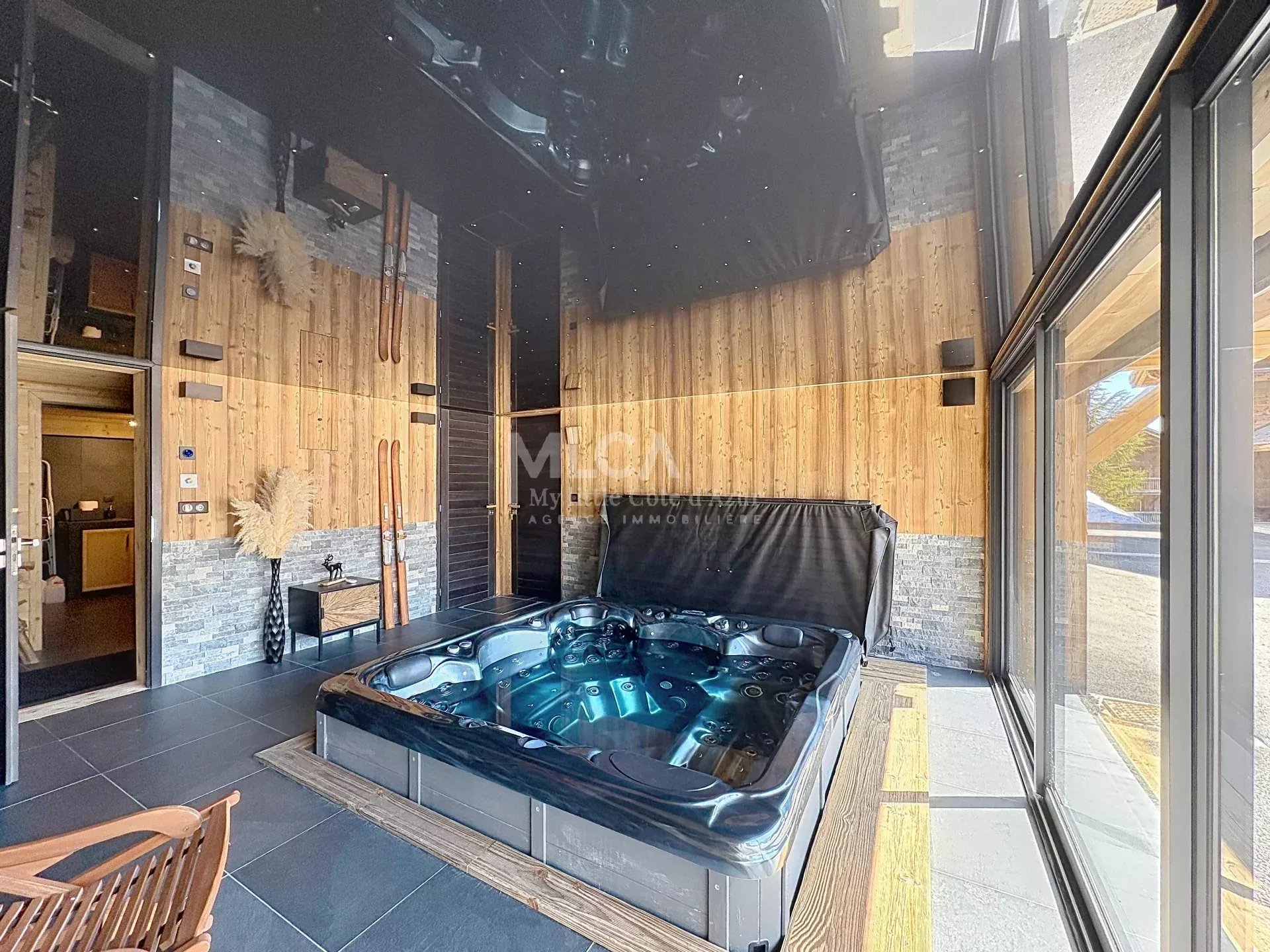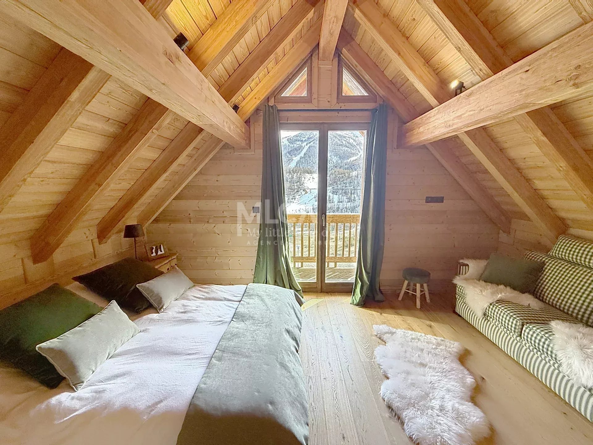 Ce chalet récent d'une superficie de 176 m2 environ est édifié sur un terrain de 600 m2. Il vous séduira par ses nombreuses prestations haut de gamme de qualité ainsi que sa vue imprenable sur les pistes de skis et les sommets environnants de la station d'Auron. Lors d'un enneigement optimum, la piste du Puy vous permettra d'accéder skis aux pieds devant la terrasse. Il est composé : En rez de jardin, un local à skis entièrement équipé, un WC invité avec lave mains, une buanderie très bien agencée, un local technique, un garage avec une grande mezzanine, une belle pièce vitrée équipée d'un jacuzzi et également une espace douche. Cet espace de bien être offrant la vue féérique sur la station de jour comme de nuit grâce à ses éclairages d'ambiance. On accède ensuite aux 3 autres espace de vie, soit par un ascenseur soit par un escalier intérieur. Au premier étage, une magnifique cuisine entièrement équipée ouverte sur le séjour salon baigné de lumière par son exposition sud ouest et les nombreuses baies permettant d'être inondé de lumière. Une confortable terrasse vous permettra de profiter pleinement des extérieurs. Au deuxième étage, un palier dessert 2 belles chambres très chaleureuses avec de nombreux rangements, une salle de douche et un toilette indépendant. Au troisième étage, également deux autres chambres offrant tout le confort, une salle de bain et un toilette indépendant. Ce chalet est vendu entièrement meublé. Un produit d'exception proposé à la vente à visiter sans tarder. Les risques auxquels ce bien peut être exposé sont consultables sur le site : georisques.gouv.fr