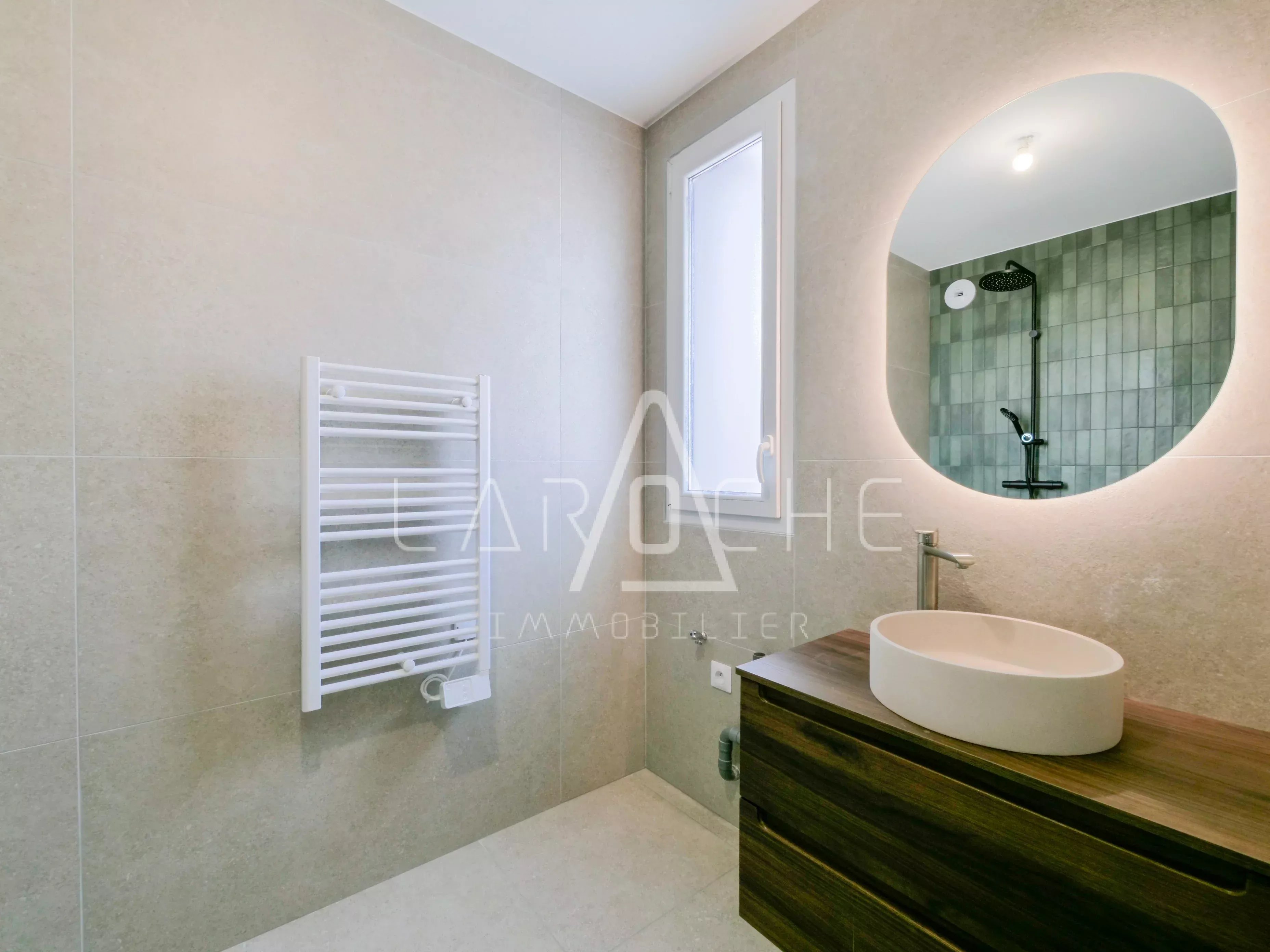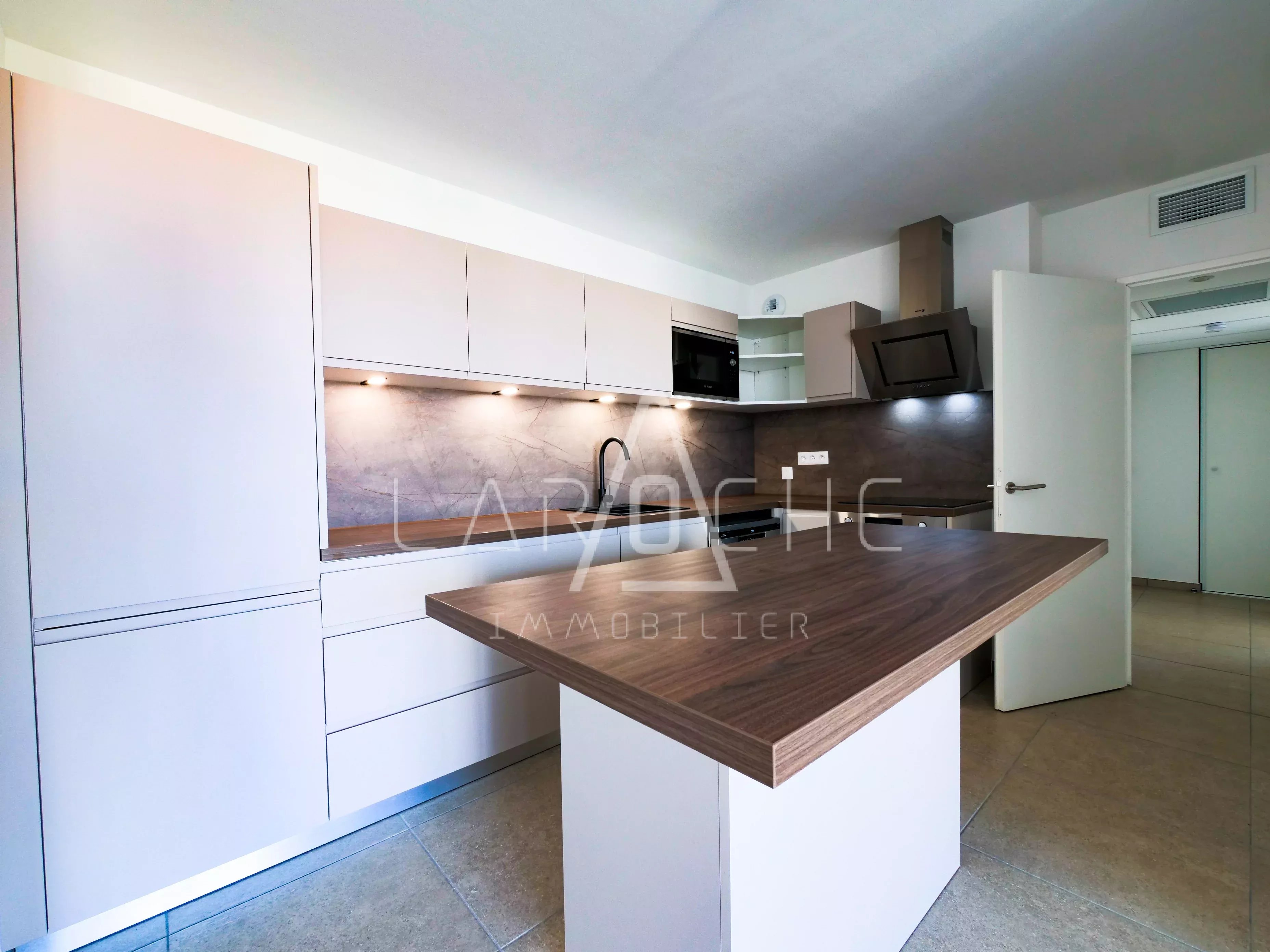 Se composant d'un beau salon séjour ouvrant sur une loggia de 6.6 m², une belle cuisine aménagée et équipée, 2 chambres (13.1 m², 12.3 m²) avec leur propre salle d'eau, un toilettes indépendant et un cellier privatif.