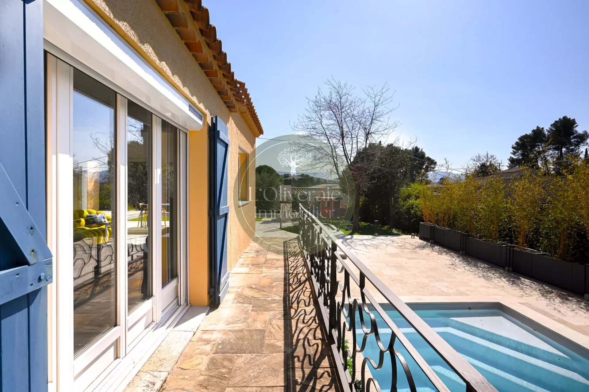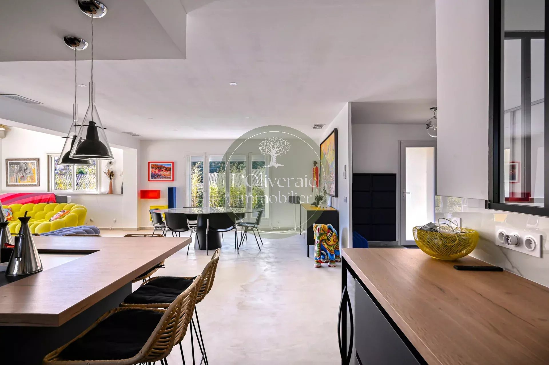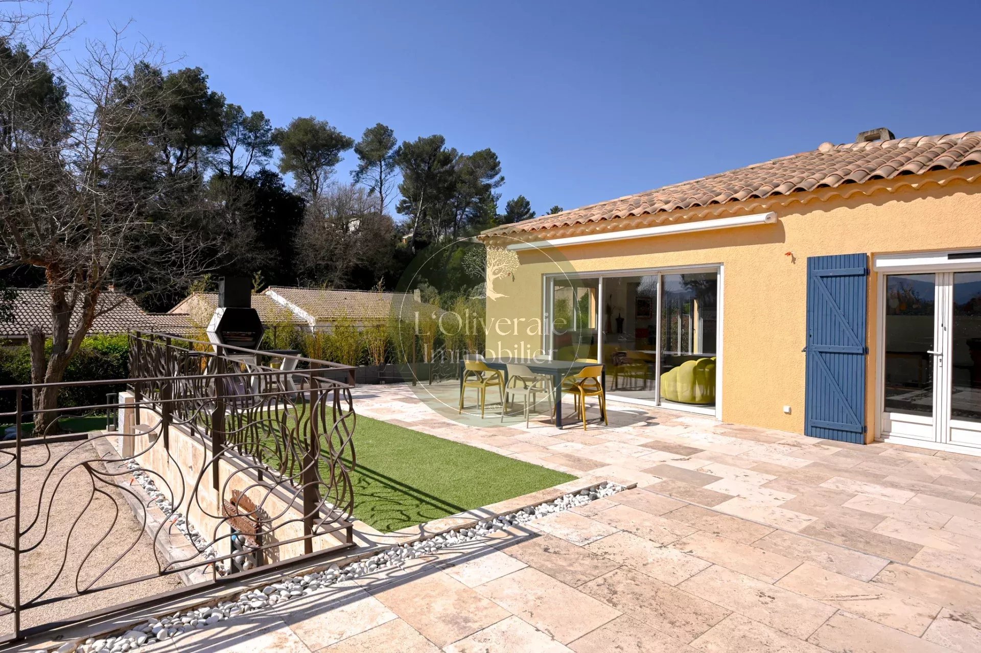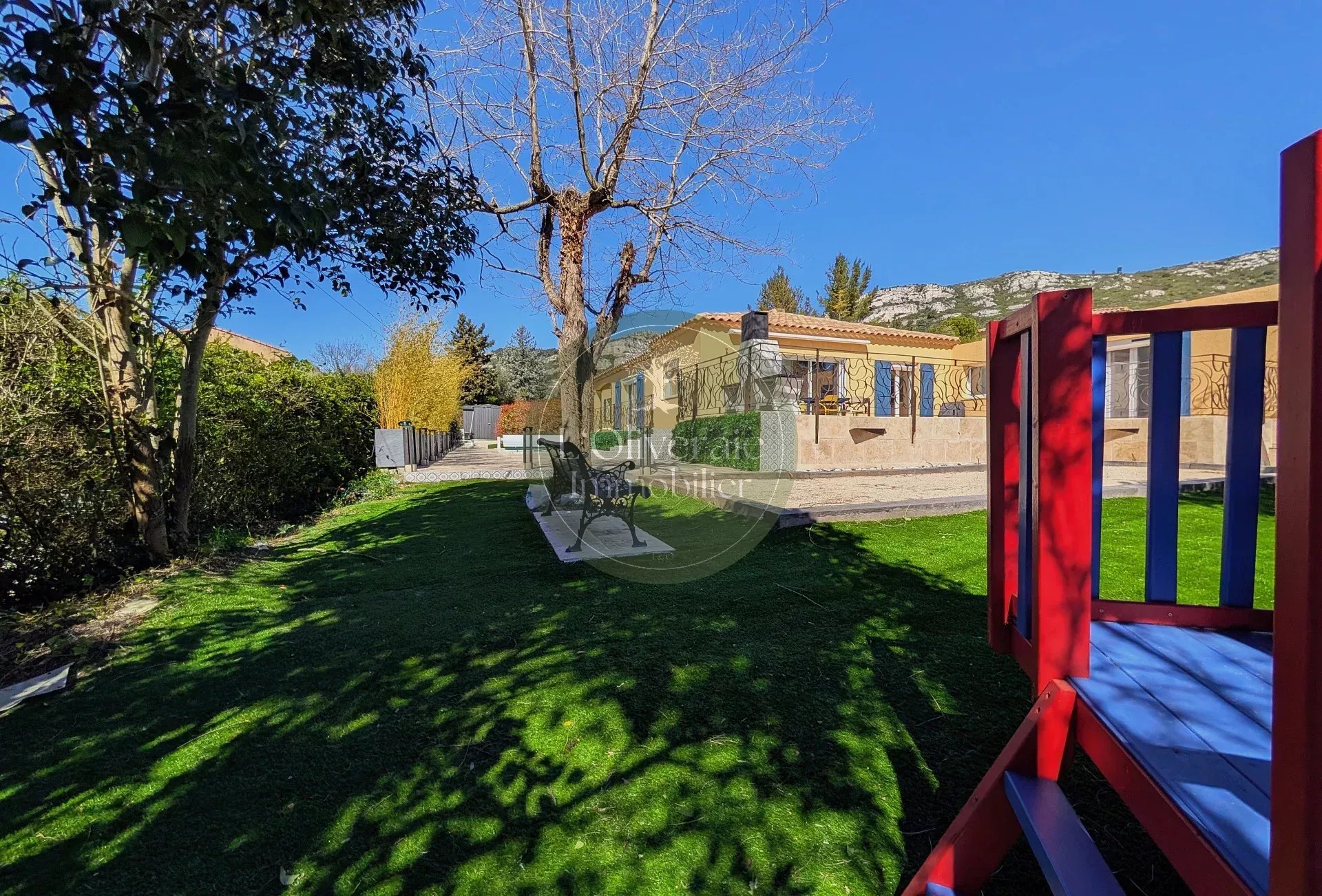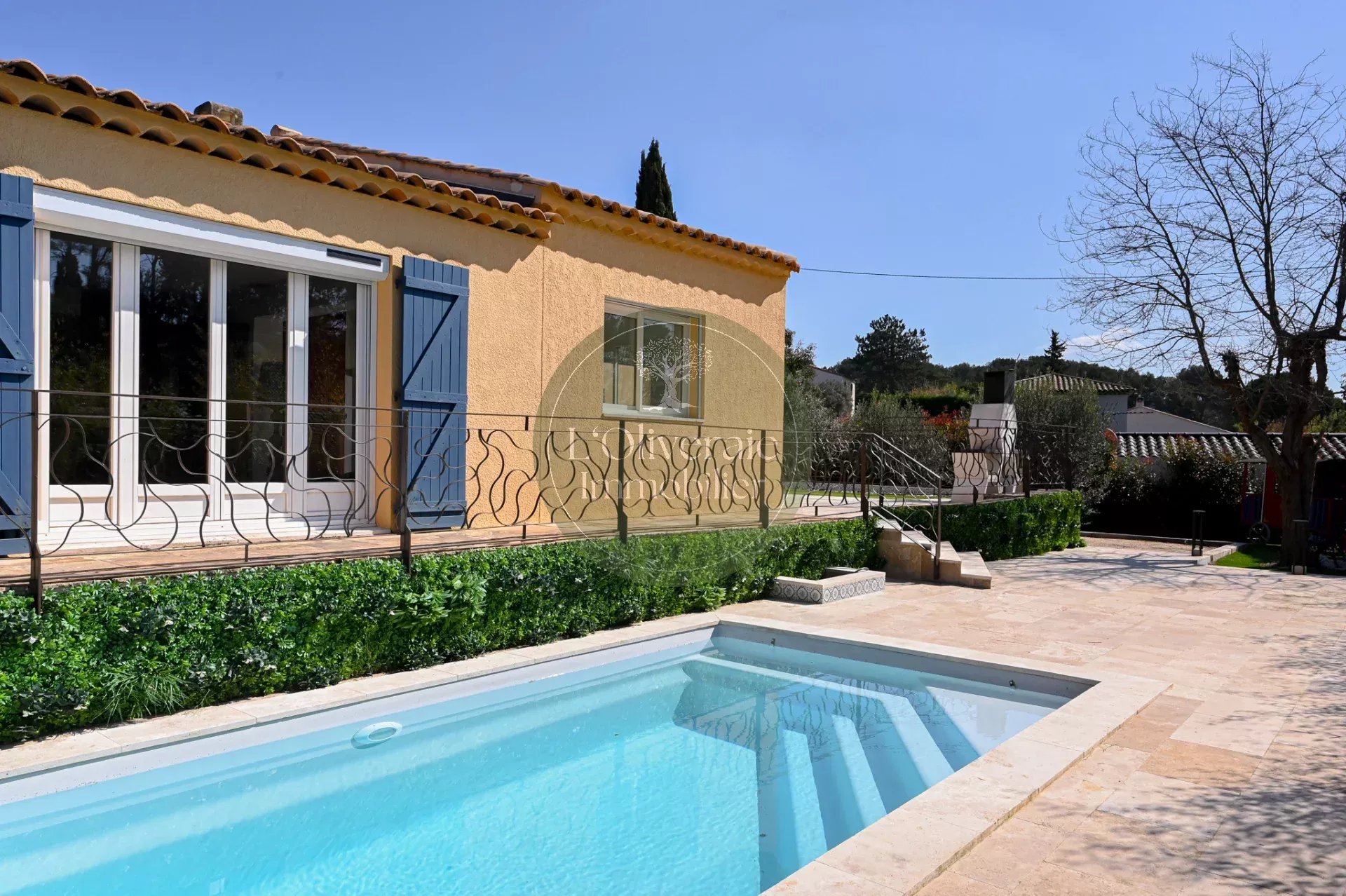 L’Oliveraie Immobilier a le plaisir de vous présenter en exclusivité cette superbe villa située sur la commune de La Bouilladisse, dans un environnement résidentiel recherché, au calme absolu, exposée plein sud avec une vue sur les collines. Entièrement rénovée en 2022 avec des prestations de qualité, cette maison de plain-pied, se compose d’une partie principale T6 de 175m² et d’un logement indépendant type T2/T3 de 35m² (idéal pour recevoir, loger un proche ou générer un revenu locatif saisonnier). Dès l’entrée, vous serez séduits par les volumes et la luminosité. La pièce de vie principale offre près de 80 m² comprenant un une salle à manger et une cuisine ouverte haut de gamme entièrement équipée, un séjour avec plafond cathédrale et baigné de lumière, tout est pensé pour le confort et la convivialité. Un bureau/bibliothèque avec verrière complète harmonieusement l’espace jour. Le coin nuit enfants dessert trois chambres avec placards, ainsi qu’une salle de bain comprenant douche et baignoire. À l’opposé de la maison, un véritable espace parental d’environ 30 m² propose une chambre avec accès direct sur l’extérieur, un dressing et une salle d’eau privative. À l’extérieur, le charme opère immédiatement avec une belle terrasse exposée plein sud, un agréable terrain de boules et une piscine récente (traitée au sel et chauffée avec pompe à chaleur ainsi qu'un volet roulant sécurisé), le tout dans un cadre campagne privilégié. Côté confort, la maison bénéficie d’un chauffage par pompe à chaleur gainée, du double vitrage, de volets roulants, d’un portail électrique, d’un éclairage extérieur soigné, arrosage automatique et d’une parcelle entièrement clôturée. Une propriété rare sur le secteur, alliant volumes, prestations modernes et qualité de vie. Votre contact Tristan Bertin. Les informations sur les risques auxquels ce bien est exposé sont disponibles sur le site Géorisques http://www.georisques.gouv.fr Pour plus de détails contactez nous ou consultez notre site. L’Oliveraie Immobilier, votre agence immobilière à La Destrousse, vous accompagne pour la vente ou l’achat d’un bien immobilier sur les communes de La Destrousse, La Bouilladisse, Auriol, Peypin, Roquevaire et alentours.