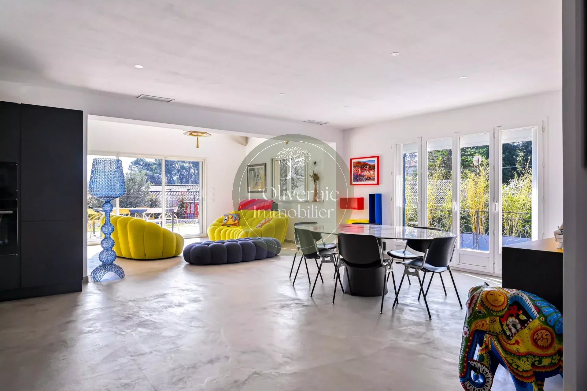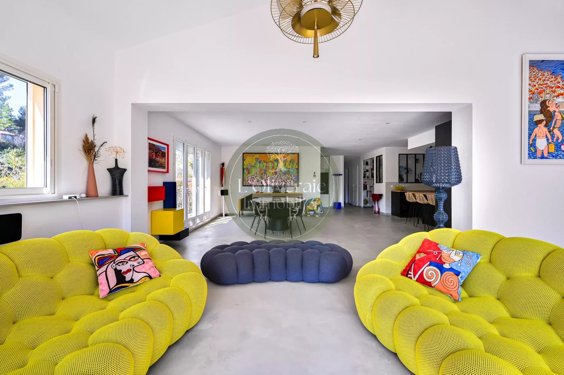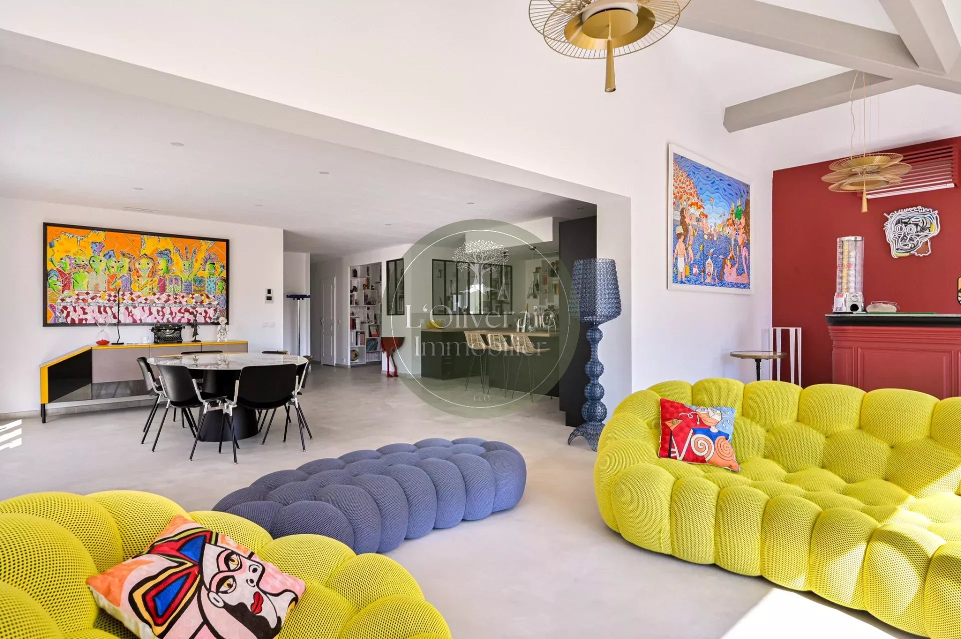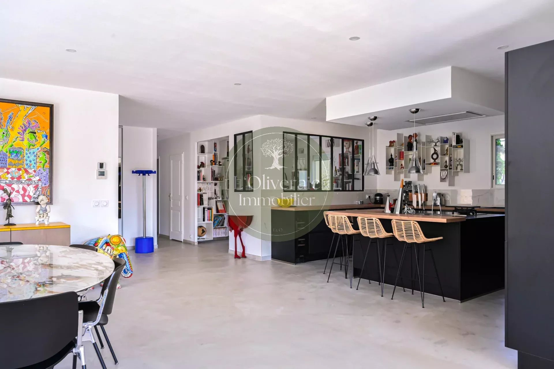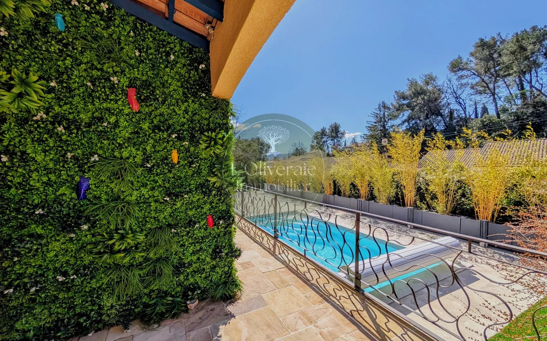 L’Oliveraie Immobilier a le plaisir de vous présenter en exclusivité cette superbe villa située sur la commune de La Bouilladisse, dans un environnement résidentiel recherché, au calme absolu, exposée plein sud avec une vue sur les collines. Entièrement rénovée en 2022 avec des prestations de qualité, cette maison de plain-pied, se compose d’une partie principale T6 de 175m² et d’un logement indépendant type T2/T3 de 35m² (idéal pour recevoir, loger un proche ou générer un revenu locatif saisonnier). Dès l’entrée, vous serez séduits par les volumes et la luminosité. La pièce de vie principale offre près de 80 m² comprenant un une salle à manger et une cuisine ouverte haut de gamme entièrement équipée, un séjour avec plafond cathédrale et baigné de lumière, tout est pensé pour le confort et la convivialité. Un bureau/bibliothèque avec verrière complète harmonieusement l’espace jour. Le coin nuit enfants dessert trois chambres avec placards, ainsi qu’une salle de bain comprenant douche et baignoire. À l’opposé de la maison, un véritable espace parental d’environ 30 m² propose une chambre avec accès direct sur l’extérieur, un dressing et une salle d’eau privative. À l’extérieur, le charme opère immédiatement avec une belle terrasse exposée plein sud, un agréable terrain de boules et une piscine récente (traitée au sel et chauffée avec pompe à chaleur ainsi qu'un volet roulant sécurisé), le tout dans un cadre campagne privilégié. Côté confort, la maison bénéficie d’un chauffage par pompe à chaleur gainée, du double vitrage, de volets roulants, d’un portail électrique, d’un éclairage extérieur soigné, arrosage automatique et d’une parcelle entièrement clôturée. Une propriété rare sur le secteur, alliant volumes, prestations modernes et qualité de vie. Votre contact Tristan Bertin. Les informations sur les risques auxquels ce bien est exposé sont disponibles sur le site Géorisques http://www.georisques.gouv.fr Pour plus de détails contactez nous ou consultez notre site. L’Oliveraie Immobilier, votre agence immobilière à La Destrousse, vous accompagne pour la vente ou l’achat d’un bien immobilier sur les communes de La Destrousse, La Bouilladisse, Auriol, Peypin, Roquevaire et alentours.