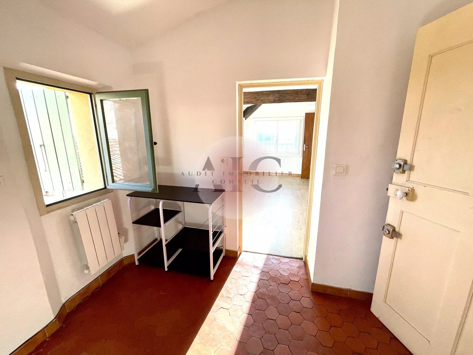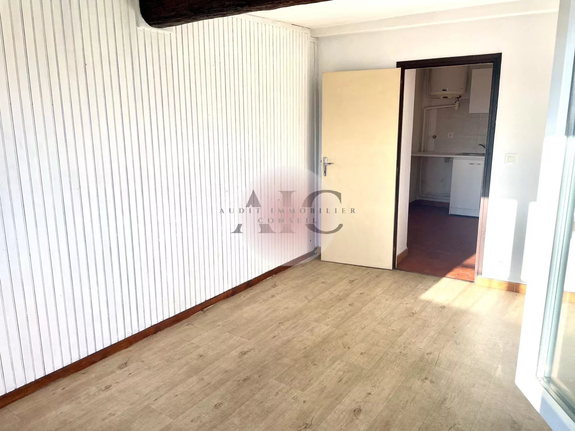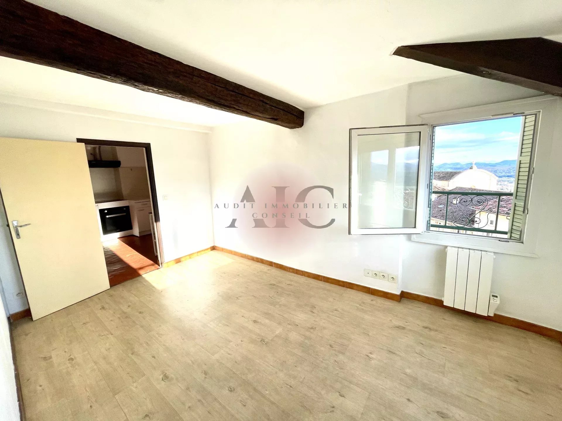 A vendre Appartement en maison de village, copropriété de 4 logements et un local commercial. Appartement au 4ème étage, distribué d'un séjour, cuisine indépendante, récente, semi-équipée, une chambre, salle d'eau/toilettes et une cave indépendante en sous-sol. Exposition sud - Sud/ouest, avec vue dégagée, sans vis à vis, idéalement situé en village, proche de stationnements à proximité et gratuits. Idéal investissement locatif ou premier achat.
