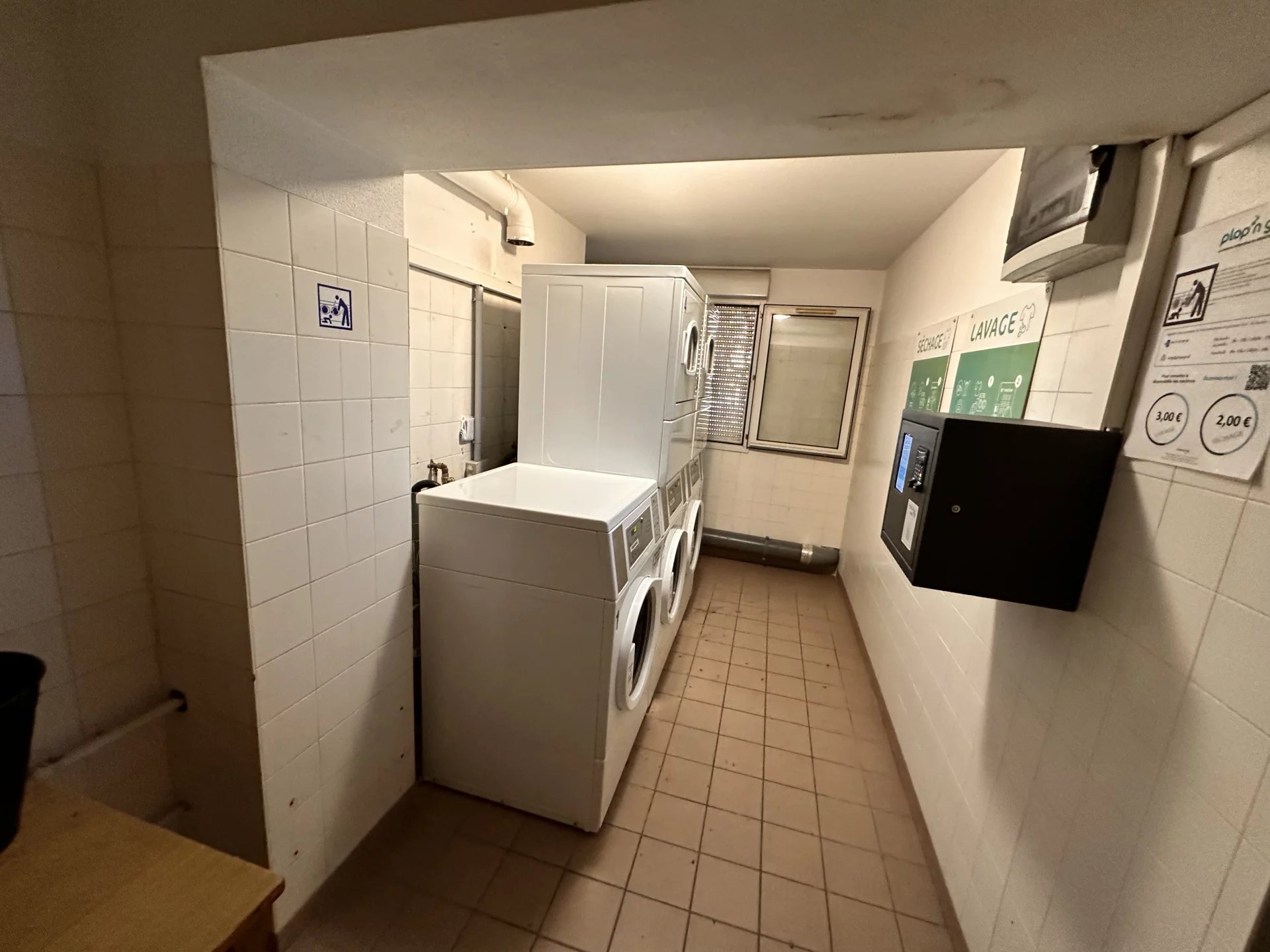 La copropriété de 1991 est bien entretenue et comprend différents services tels que laverie, local à vélo et parking de copropriété...