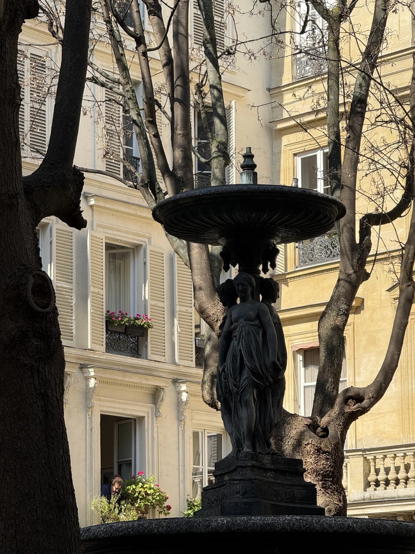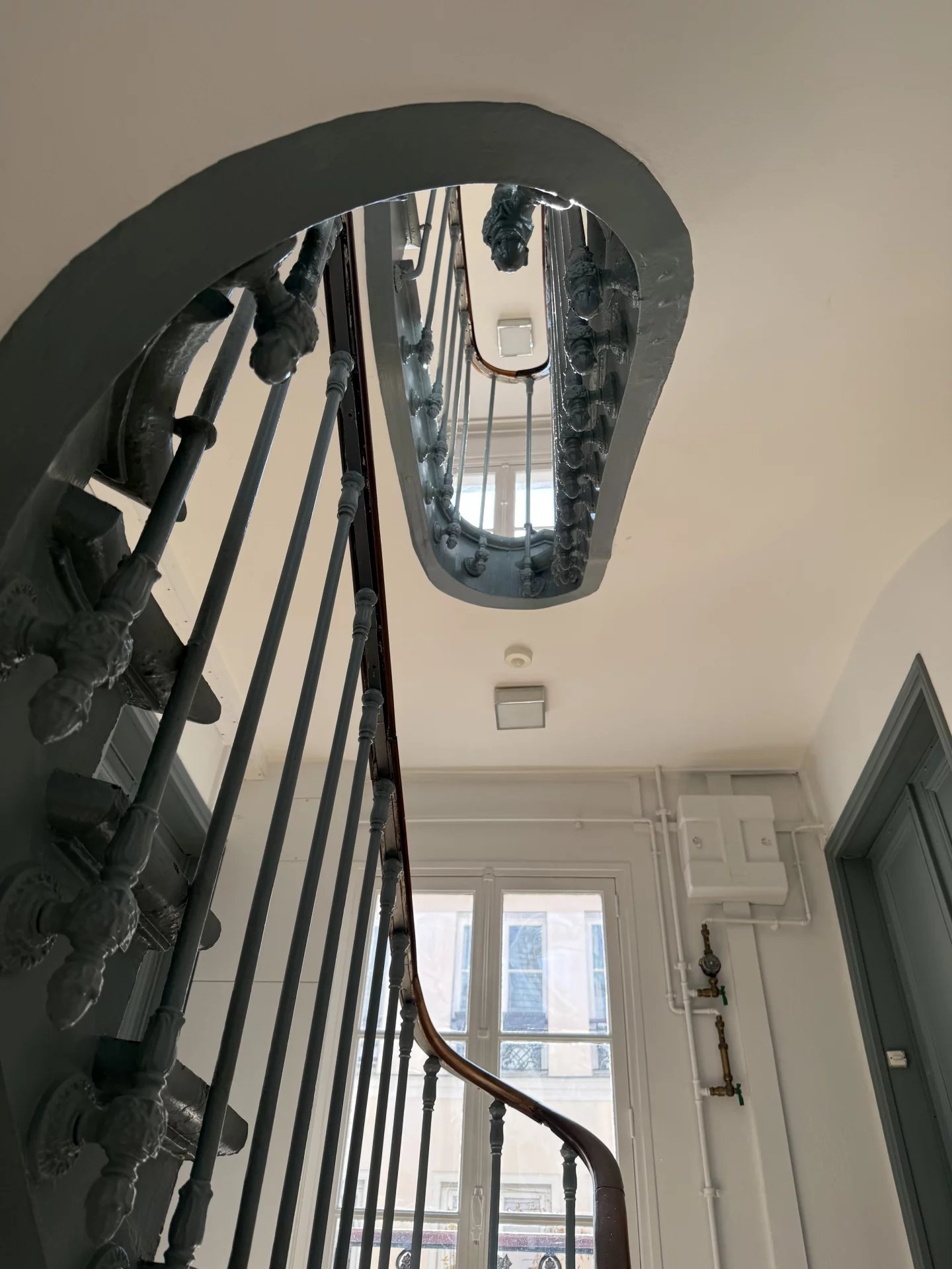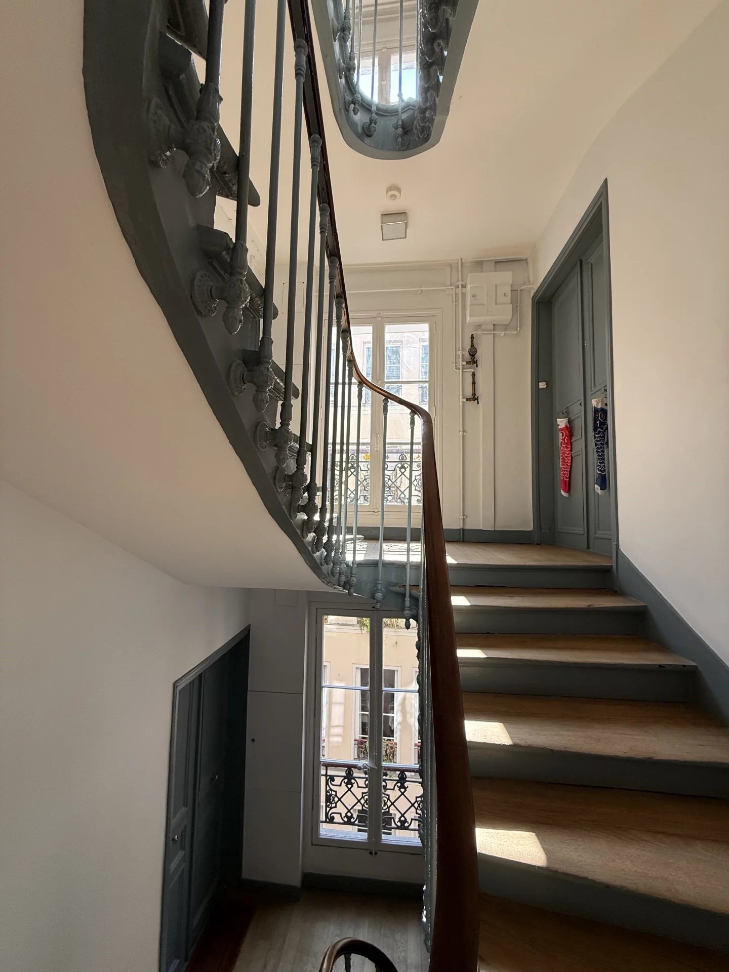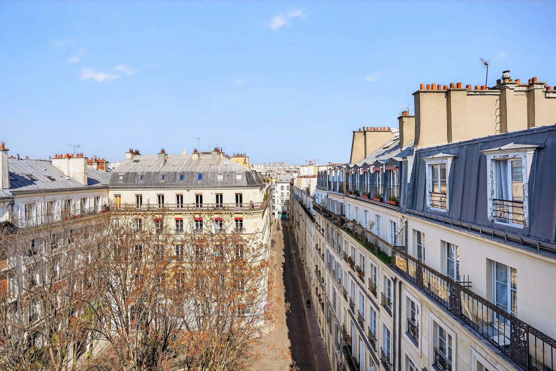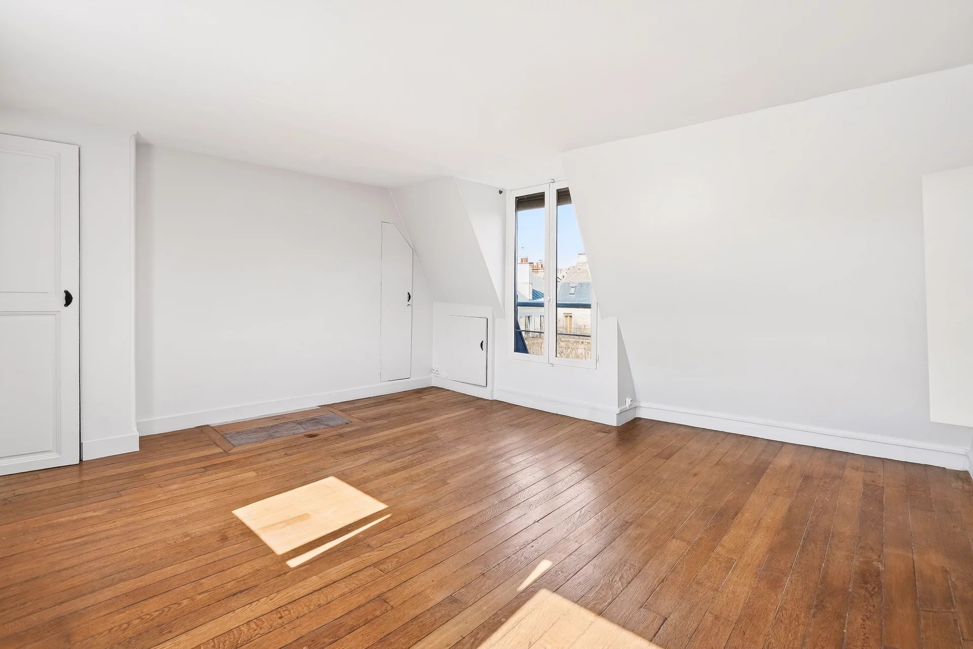 D'une superficie d'environ 37,03m2 au sol (33,17m2 loi Carrez), il offre une vue dégagée sur la Fontaine de la Cité de Trévise d'un côté et sur les toits de l'autre.