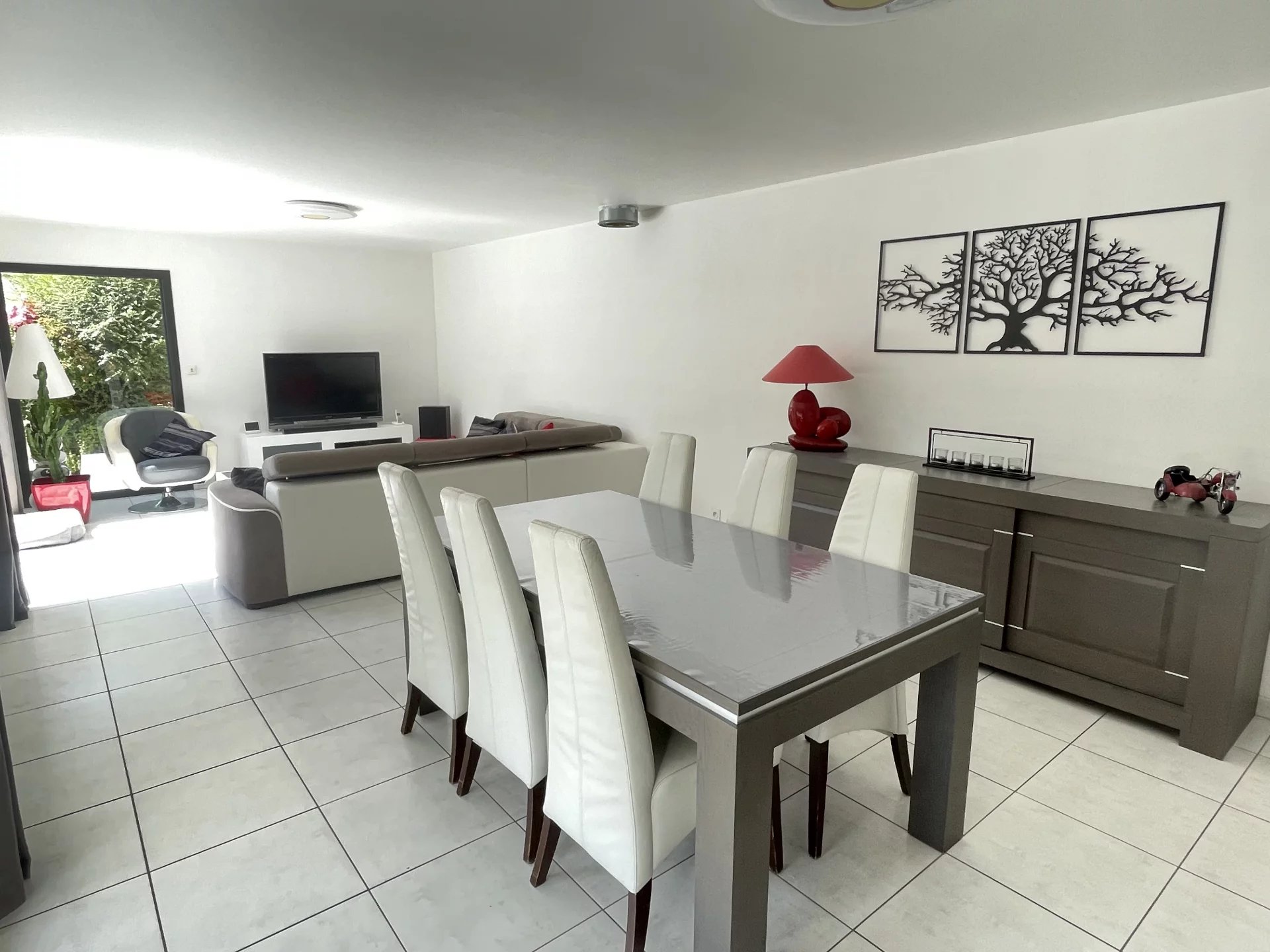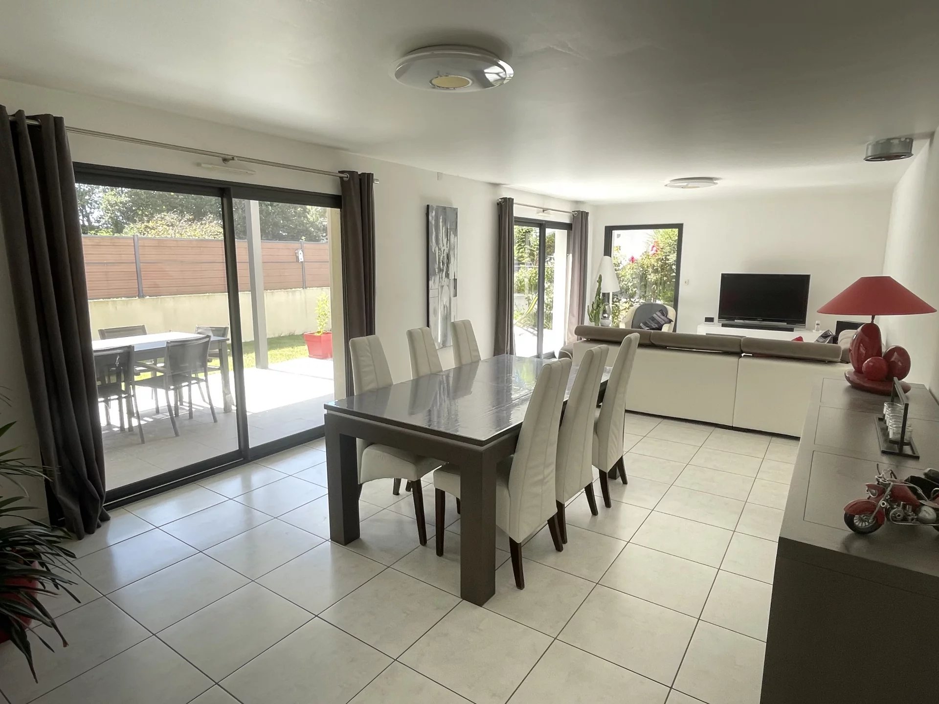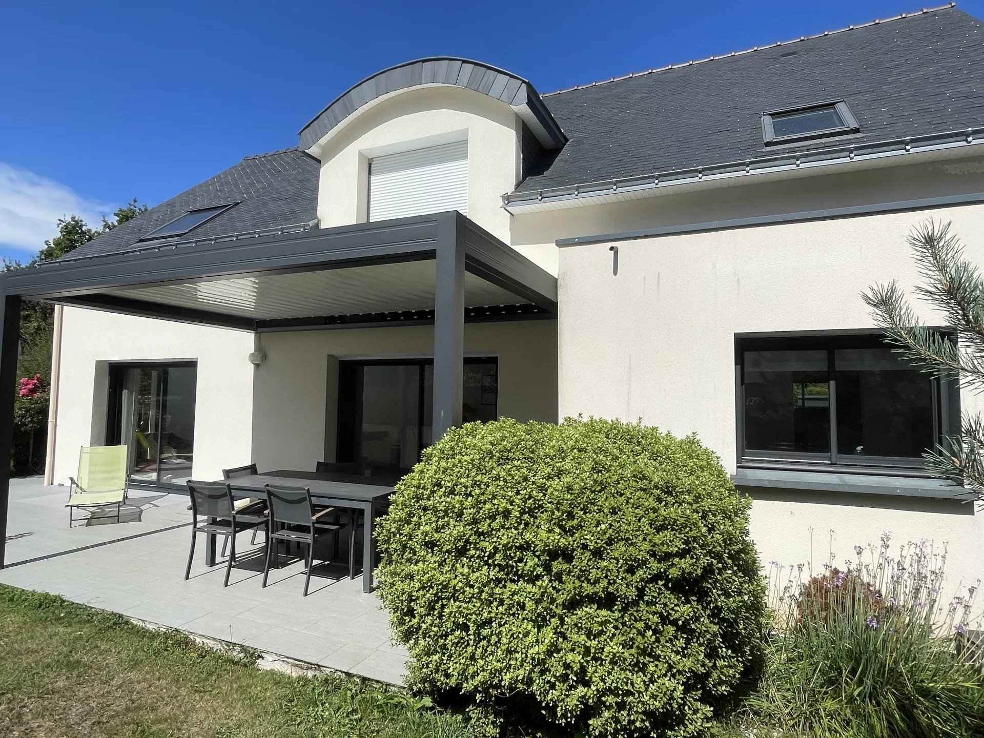 Véritable vie de plain pied et beaux volumes pour cette contemporaine qui est composée d'une entrée ouverte sur le séjour salon donnant sur une terrasse exposée sud et ouest avec une pergola bioclimatique, une cuisine équipée, un vaste cellier et un espace nuit avec une chambre et une salle d'eau.