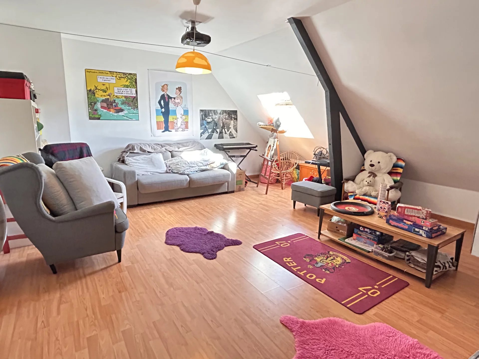 - au 2ème étage: grande chambre/salle de jeux et bureau.