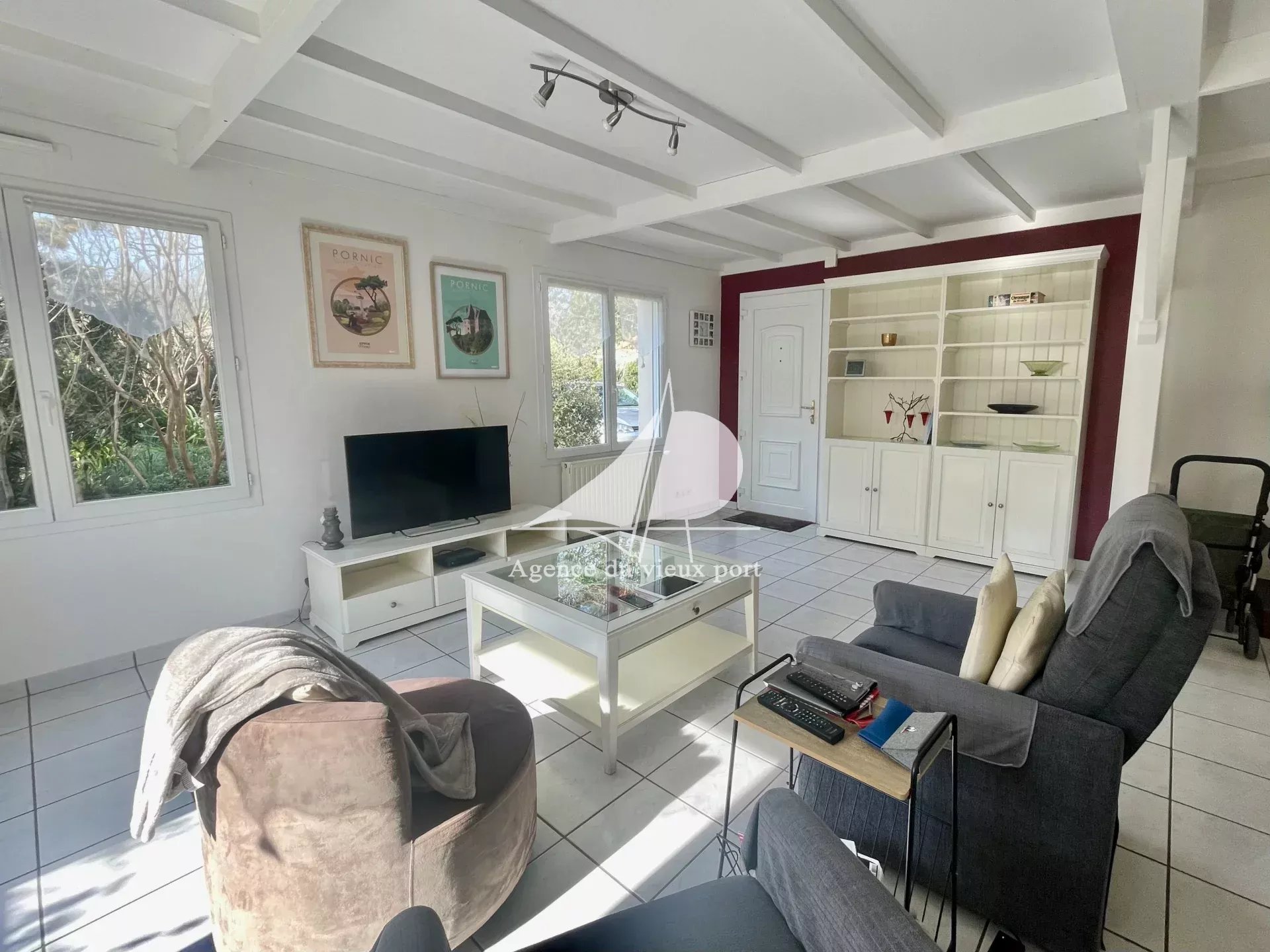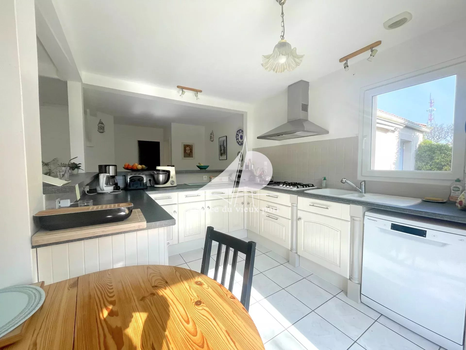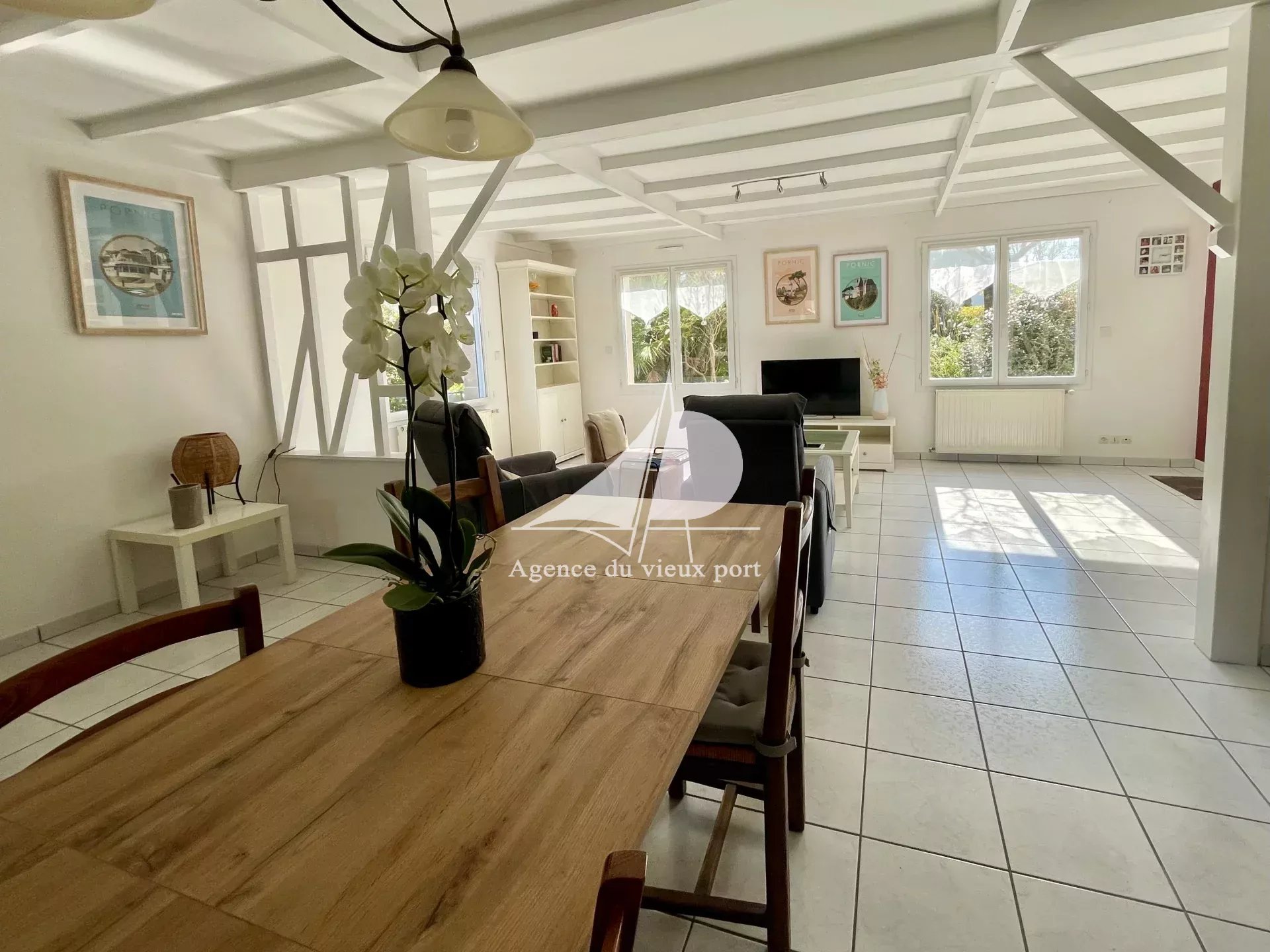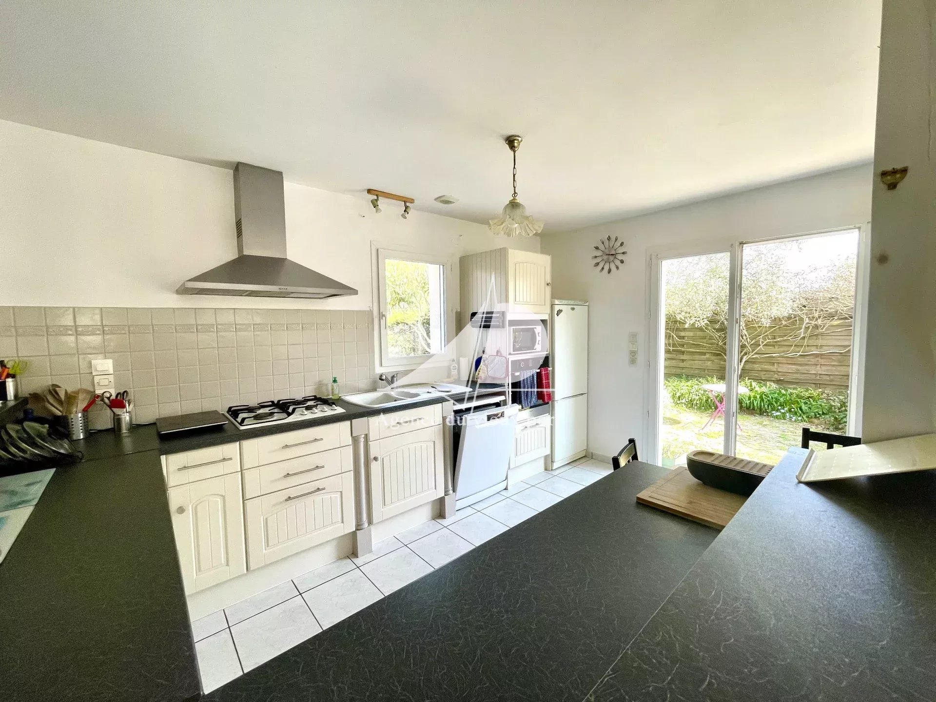 Agence du Vieux Port Pornic, à vendre : au calme tout en étant à proximité des commerces, du golf et de la plage découvrez cette maison de plain-pied dotée de 3 chambres avec un studio attenant. Belle pièce de vie traversante avec cuisine américaine, deux salles d'eau avec WC, une buanderie, un garage avec mezzanine. Jardin clos et arboré.Prix FAI 640 000 €dont 3,23% TTC d'honoraires charge acquéreur.