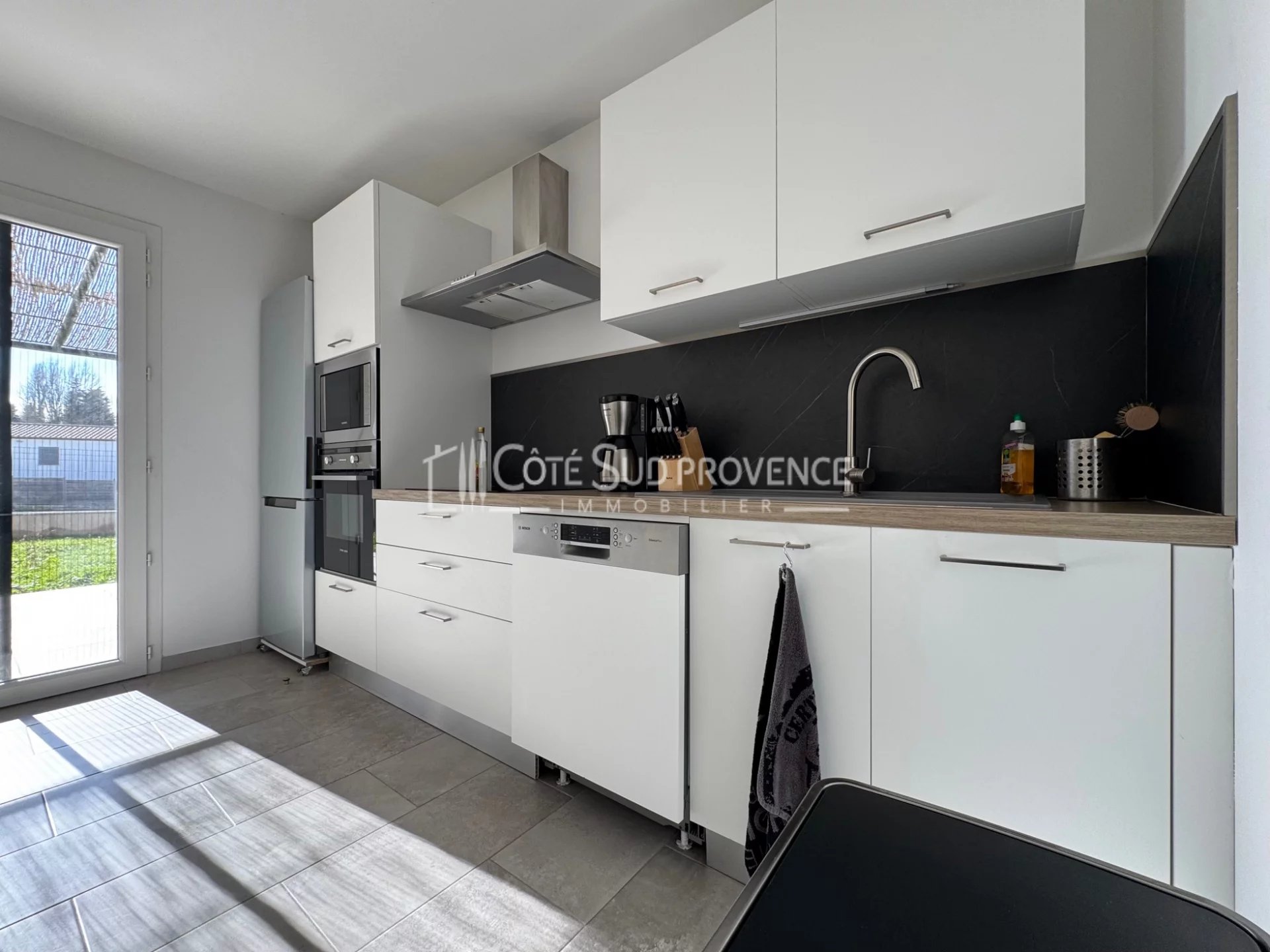 Au calme, Au pied du Mont-Ventoux et à 5 mn à pied du centre village de Malaucène tous commerces à l’année, position dominante pour cette villa récente construite en 2018 d'environ 85 m² sur deux niveaux. Entrée, salon séjour cuisine équipée, wc indépendant, escalier béton, carrelage grés, terrasse tonelle carrelée Sud-Ouest, à l'étage, palier couloir, 3 chambres avec penderies, salle de bain wc, menuiseries p.v.c en double vitrage, moustiquaires coulissantes aux fenêtres, volets bois, volet roulant automatisé et baie vitrée coulissante en aluminium, garage attenant 15 m2, terrasse tonnelle à l'Ouest, chauffage par climatisation réversible, eau de ville, Edf, téléphone, gouttières toitures en aluminium et assainissement collectif. L'ensemble sur un terrain clos de 226 m² piscinable avec espace parking sécurisé à l'Est.