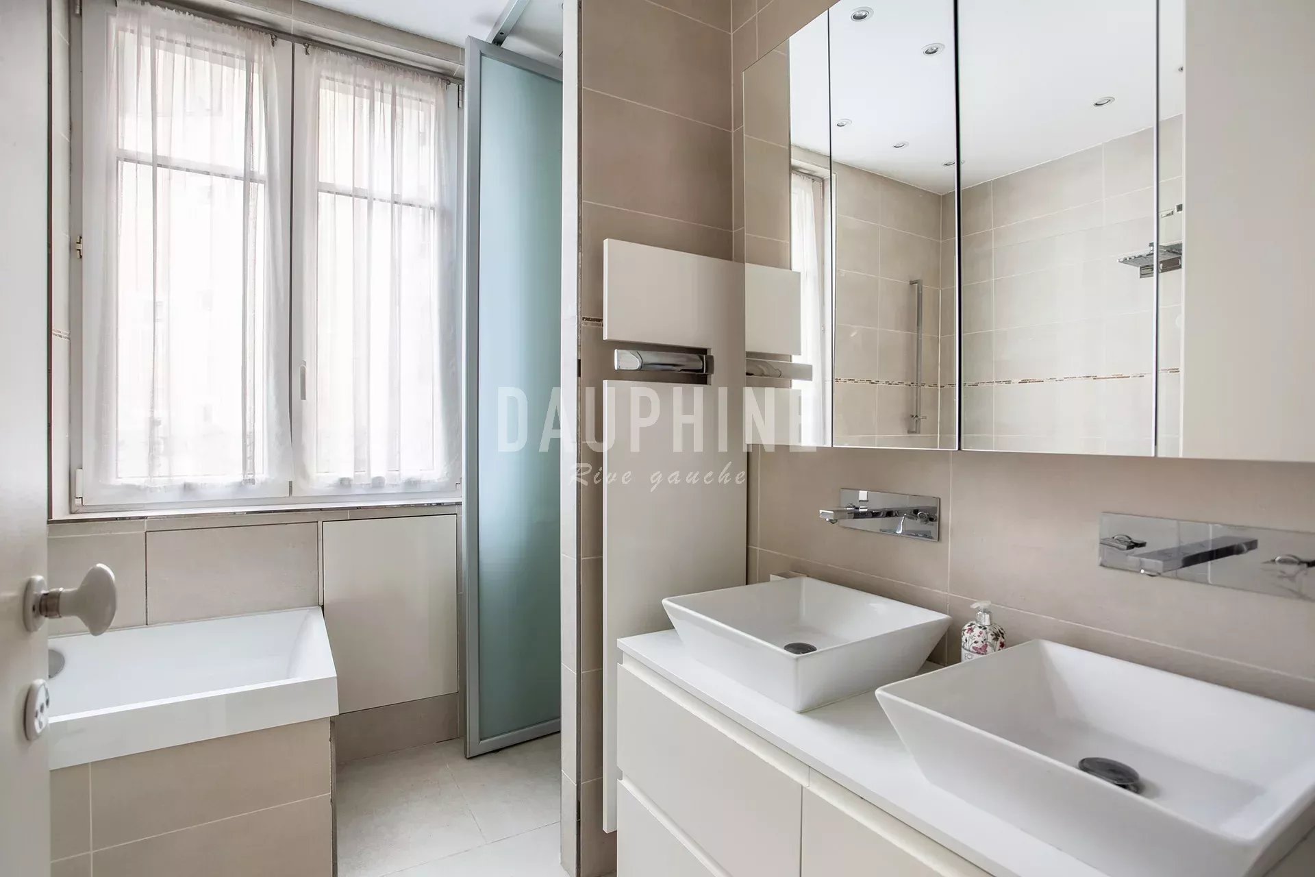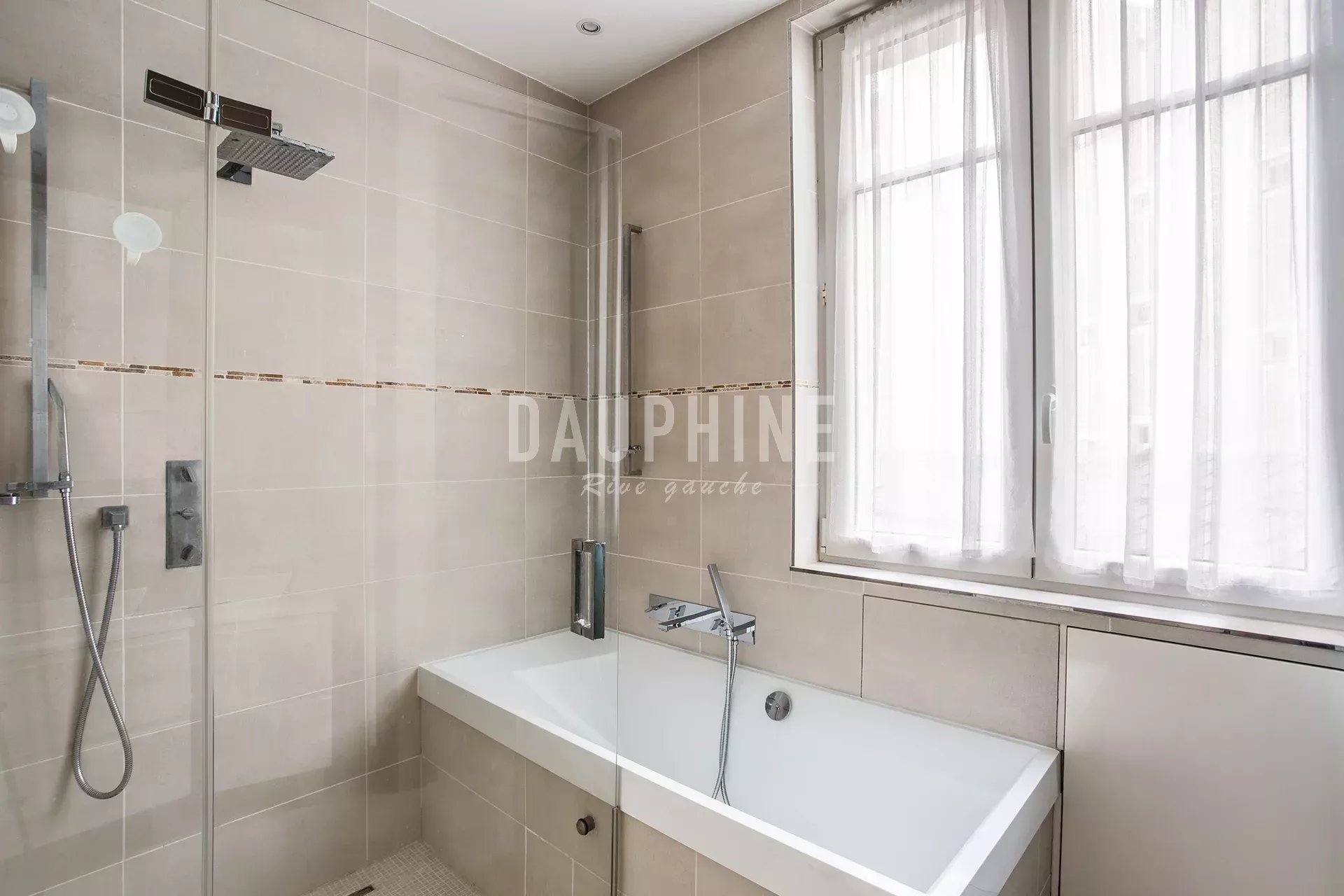 L’appartement comprend deux chambres avec dressings, une cuisine entièrement équipée, une salle de bains avec baignoire et douche à l’italienne, une salle d’eau ainsi que deux WC séparés.