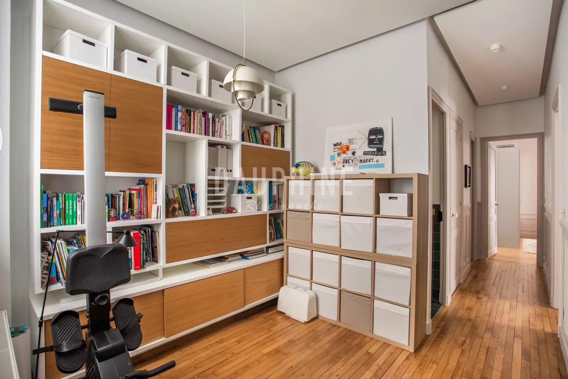 A quelques pas du Jardin de l’Observatoire, au sein d’un magnifique immeuble haussmannien parfaitement entretenu, nous vous proposons à la vente un élégant appartement familial entièrement rénové avec des prestations haut de gamme. Idéalement situé dans un quartier recherché pour son cadre de vie agréable à proximité immédiate des commerces, des transports et des établissements scolaires réputés (Sévigné, Lavoisier, l'Alsacienne), ce bien rare séduira les familles en quête d’espace et de raffinement. Dès l’entrée, le charme opère : parquet en point de Hongrie, moulures délicates, cheminées d’époque et belle hauteur sous plafond s’allient harmonieusement à des équipements modernes et une rénovation contemporaine soignée. L’appartement de 198 m2 carrez se compose; d'une salle à manger et d'un séjour baignés de lumière, parfaits pour les moments en famille ou pour recevoir, d'une vaste cuisine moderne, entièrement équipée avec des matériaux de qualité, de trois chambres spacieuses avec leur salle d'eau attenante, d'une suite parentale avec son dressing, d'une salle de bains élégante et fonctionnelle, d'une buanderie et de trois toilettes. Chaque espace a été pensé pour offrir confort, fluidité et esthétisme, dans un parfait équilibre entre authenticité et modernité. Ce bien d’exception dans un environnement privilégié, offre une qualité de vie rare au cœur de Paris. Copropriété parfaitement entretenue sans aucune procédure. Gardien à demeure, cave et local vélo.