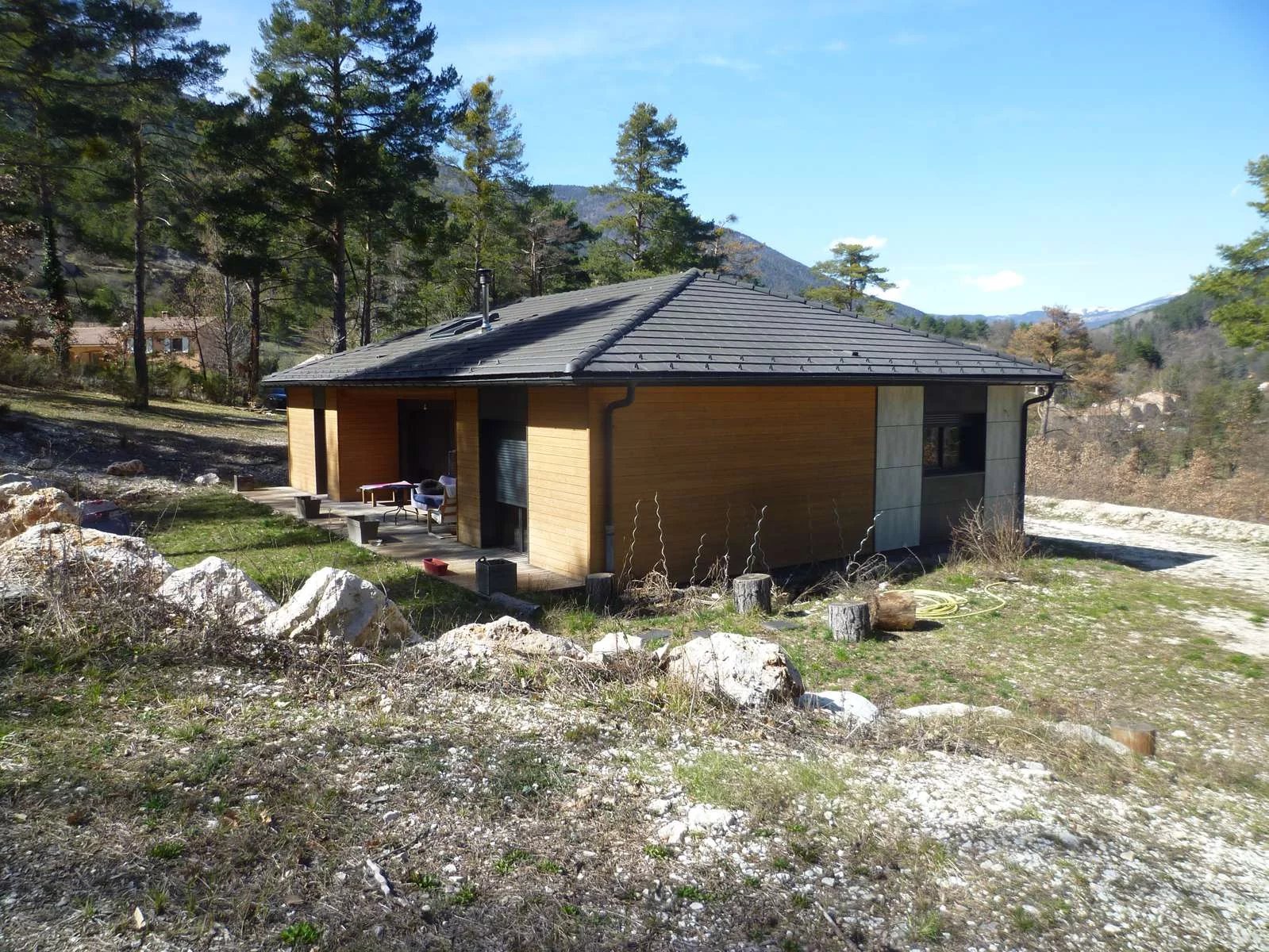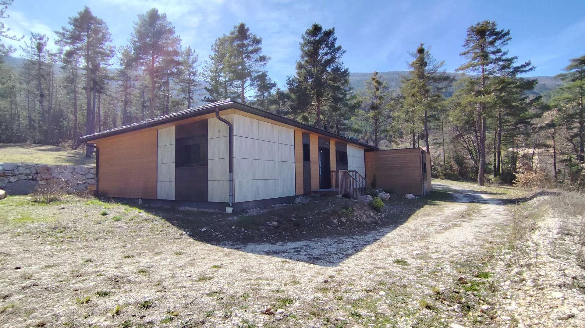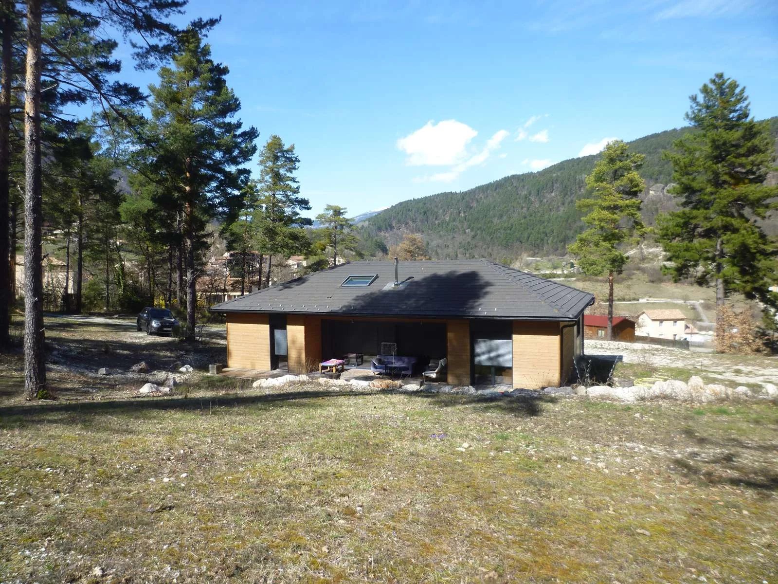 Nous vous proposons à la vente au village d'Annot, village des grès, toutes commodités, commerces, écoles, médecins, transports...., situé à mi-chemin entre Nice et Digne-les-Bains, une superbe villa d'architecte moderne de plain-pied, d'une superficie de 120 m² construite en 2020 sur 6970 m² de terrain dans un écrin de verdure, de sérénité et sans vis à vis, à la vue dégagée.
