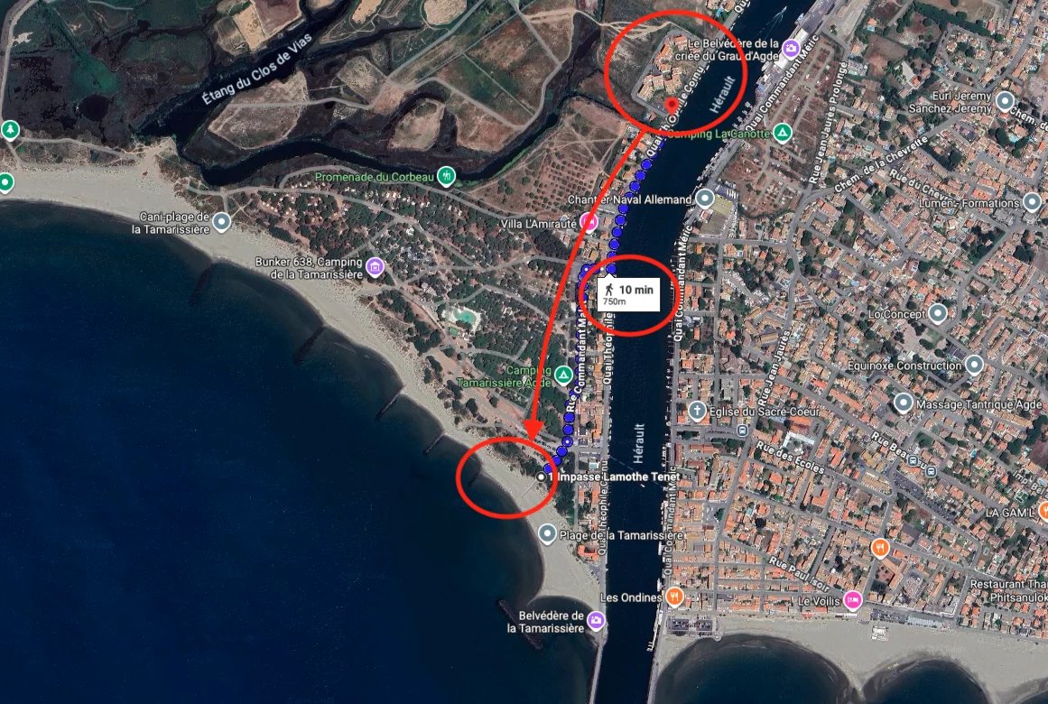 Situé à La Tamarissière, véritable havre de paix à l’embouchure de l’Hérault, ce bien offre un cadre naturel exceptionnel entre rivière et mer. Le secteur est apprécié pour ses plages préservées, son ambiance authentique et sa proximité avec le port de plaisance du Cap d’Agde.