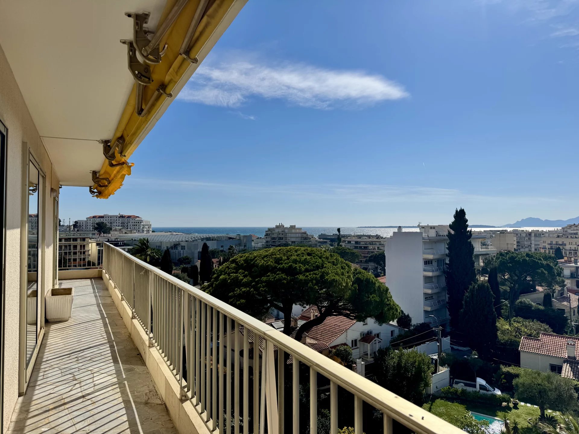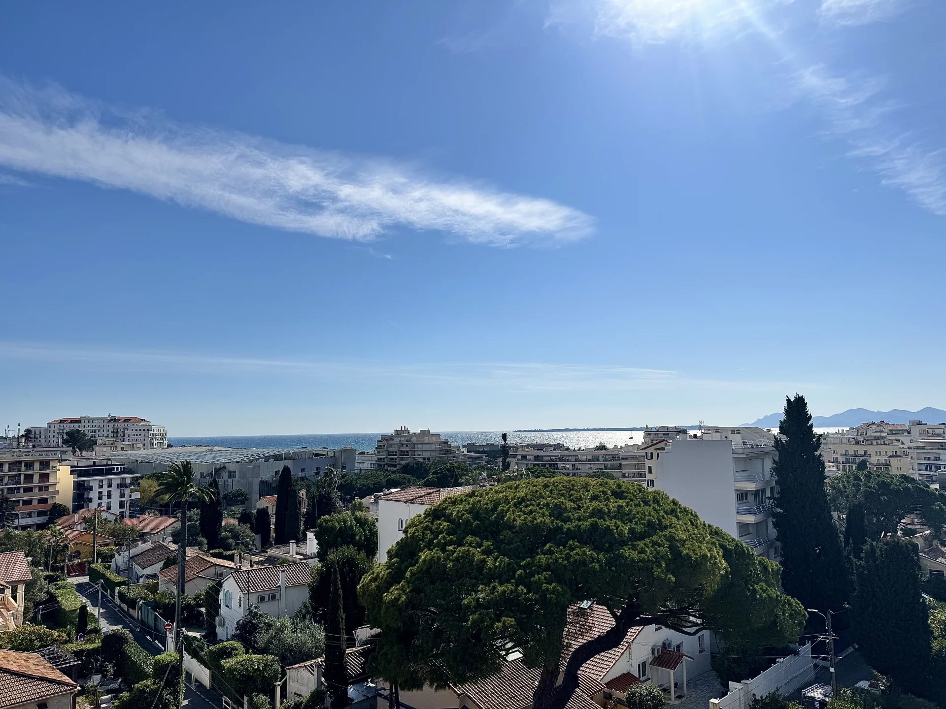 A Antibes Juan-les-Pins, à 500m des plages, en 6e et dernier étage d'une jolie résidence sécurisée et bien tenue, lumineux et élégant appartement de 4 pièces principales, d'une superficie de 85,30 m2 Loi Carrez à la vue panoramique dégagée jusqu'à la mer.