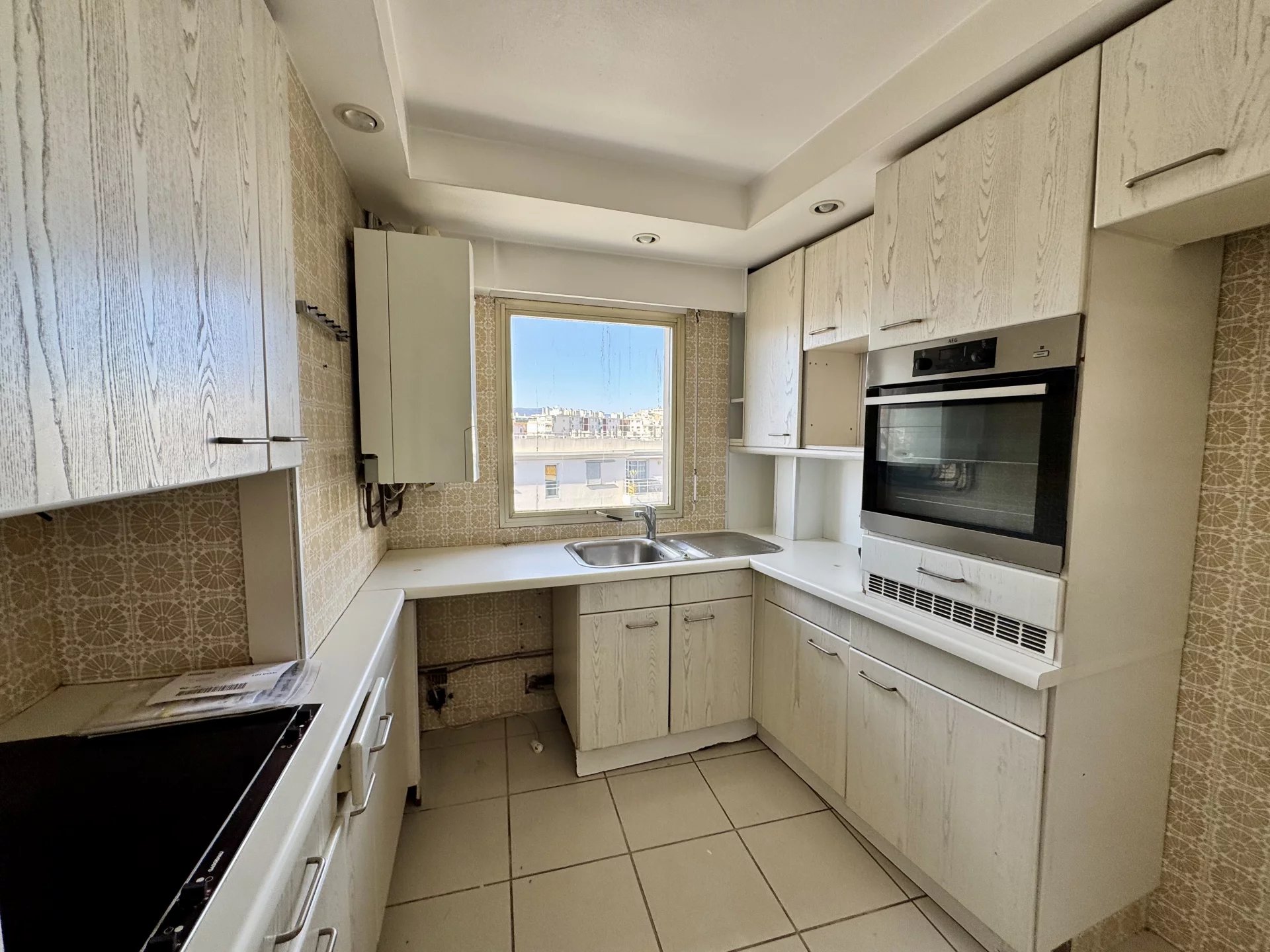 Hall d'entrée, séjour ouvrant sur le balcon faisant tout le tour de l'appartement exposé Sud-Ouest, salle à manger, cuisine séparée, deux chambres, une salle de bains, une salle d'eau, WC séparés et une buanderie.