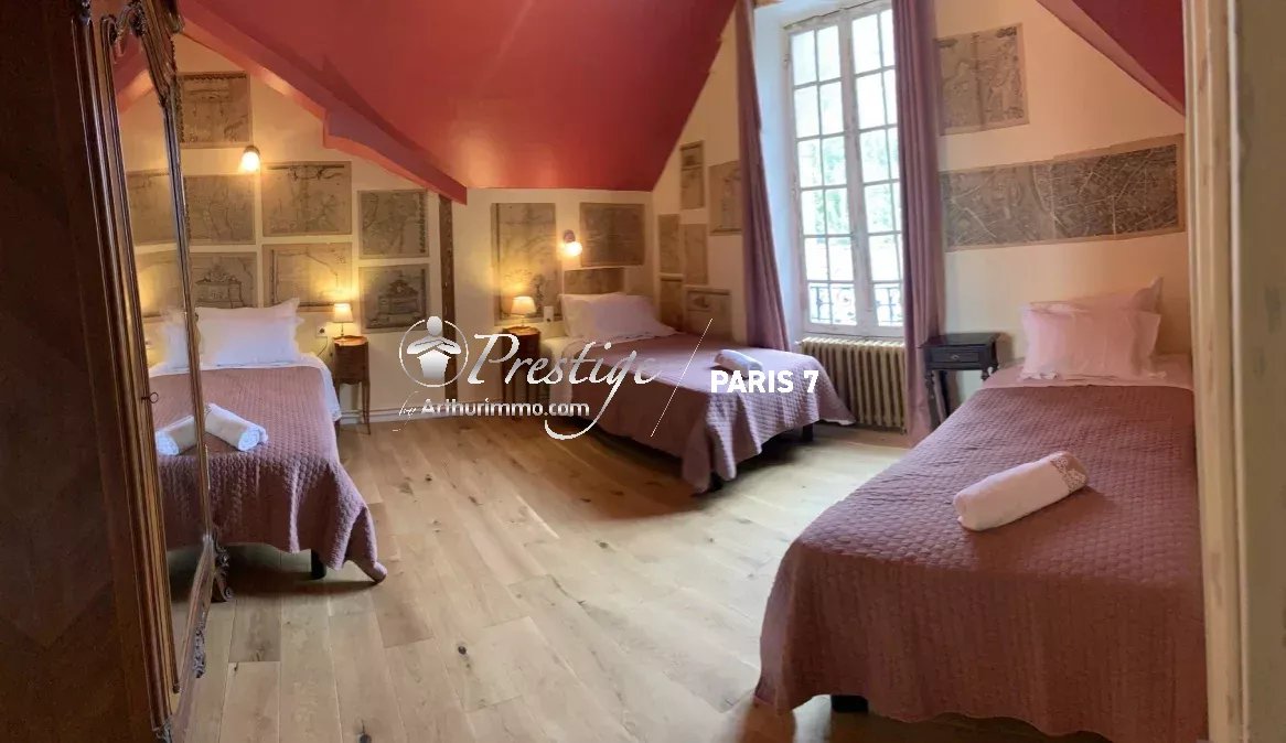 D’une surface d’environ 500m² avec ses 10 chambres disposant chacune d’une salle de bain ou salle d’eau, ses 3 cuisines, salons, une salle polyvalente d’environ 120m² avec une entrée indépendante, une maison de gardien, un atelier et une cuisine extérieure couverte vous incite à réfléchir à différents projets.