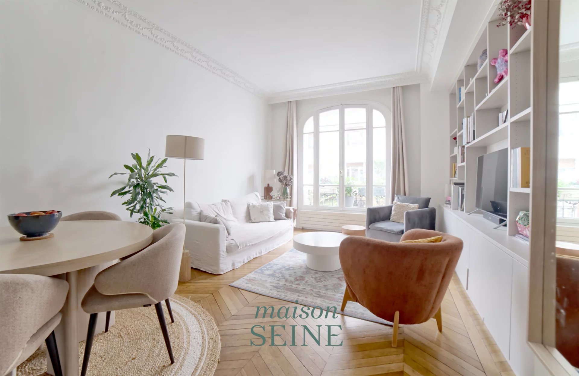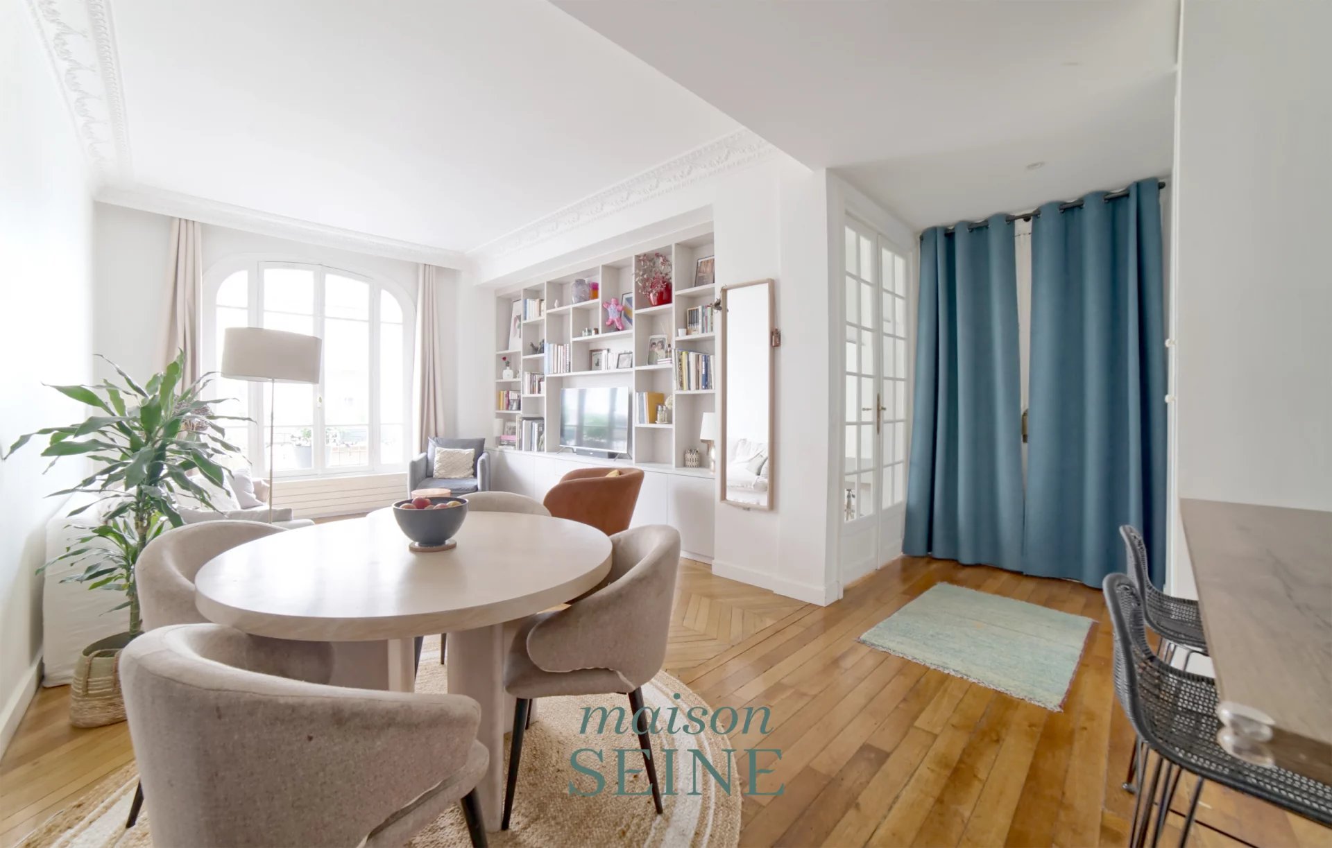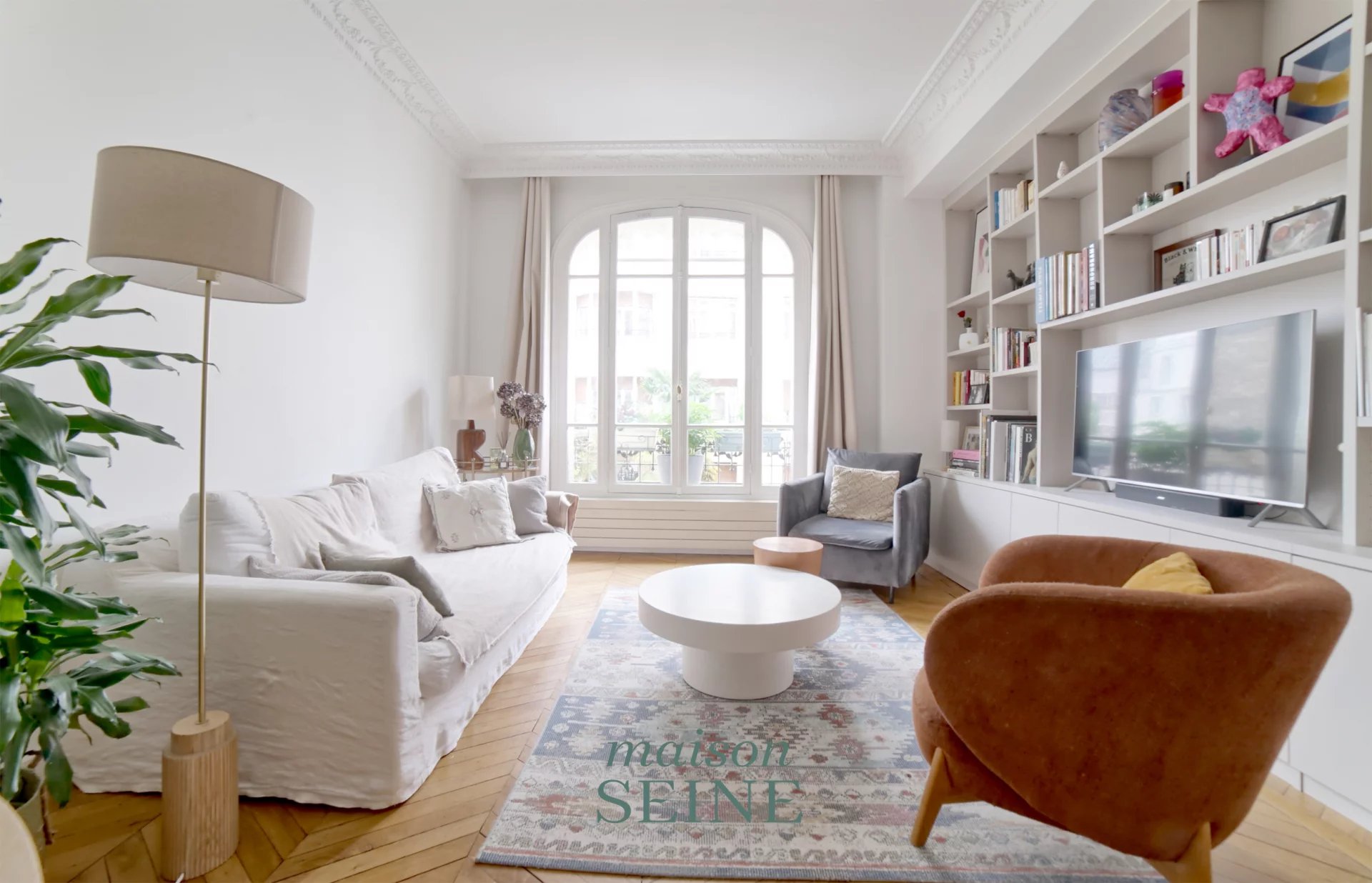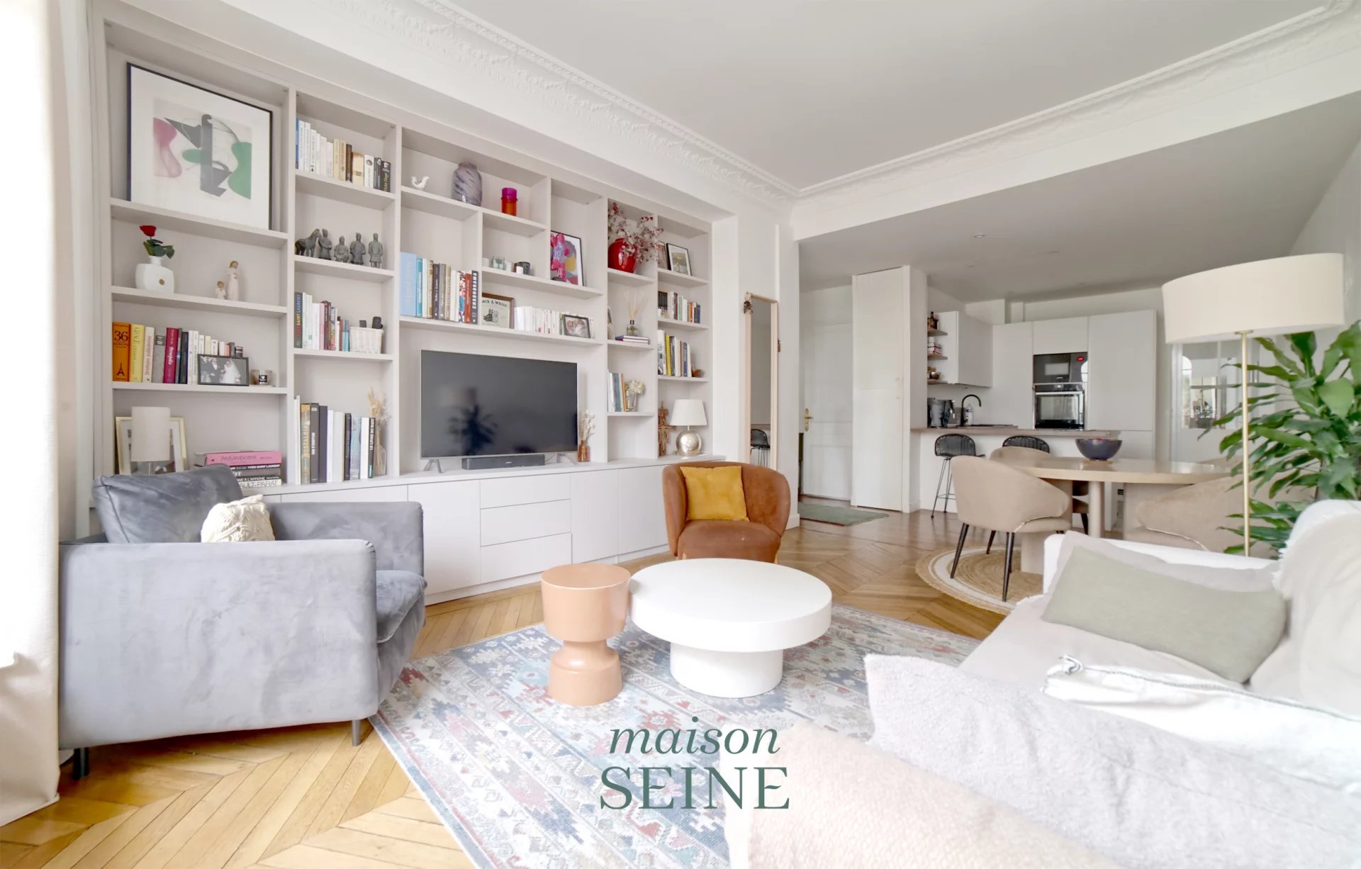 Idéalement situé dans un bel immeuble Haussmannien avec gardienne et ascenseur, appartement de 92,15 m² carrez en parfait état avec un plan parfaitement optimisé et une rénovation récente présentant de belles prestations.
