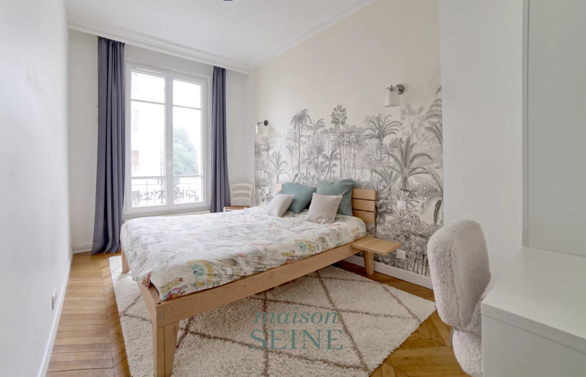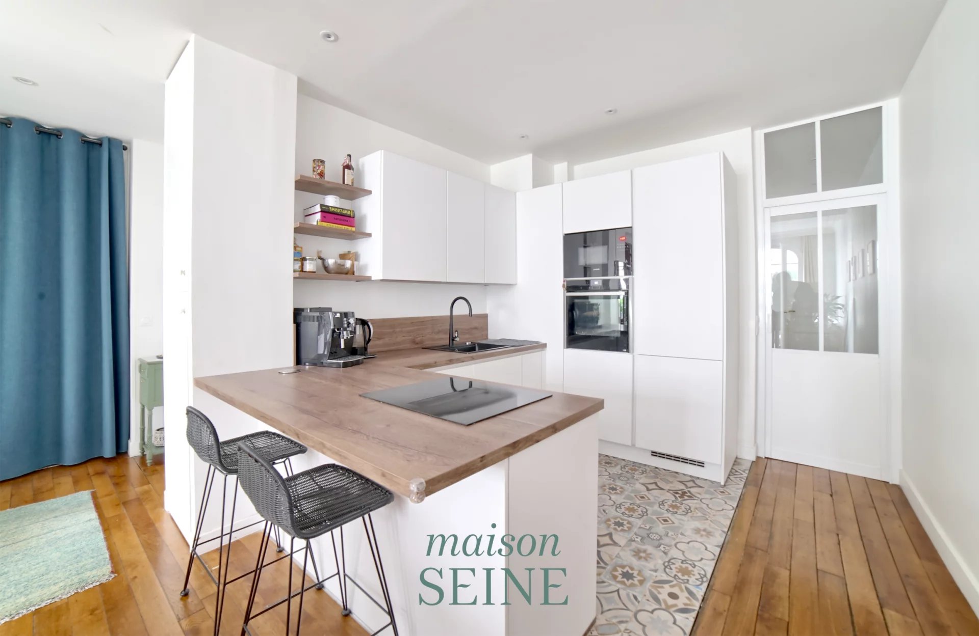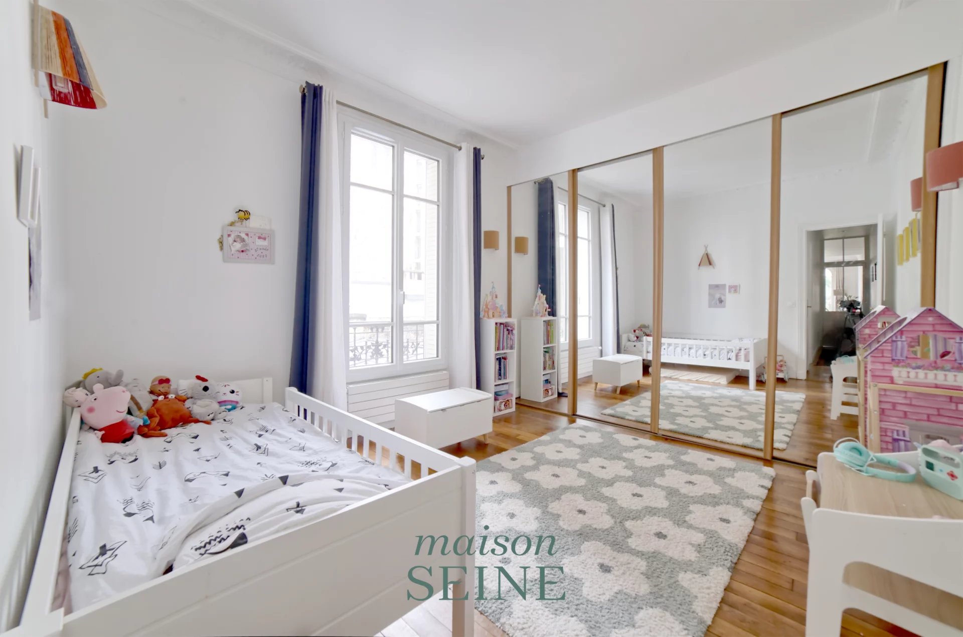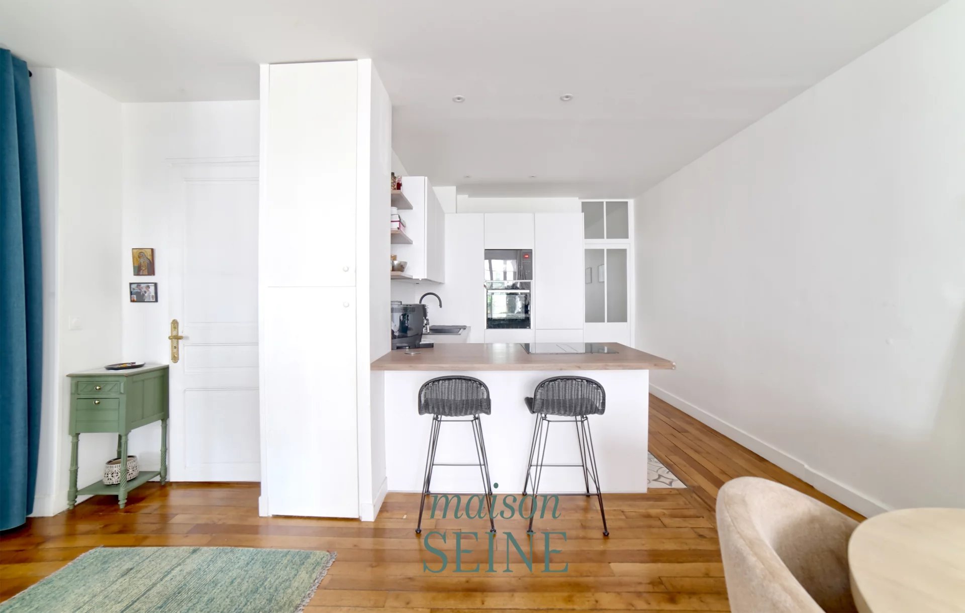Idéalement situé dans un bel immeuble Haussmannien avec gardienne et ascenseur, appartement de 92,15 m² carrez en parfait état avec un plan parfaitement optimisé et une rénovation récente présentant de belles prestations.
